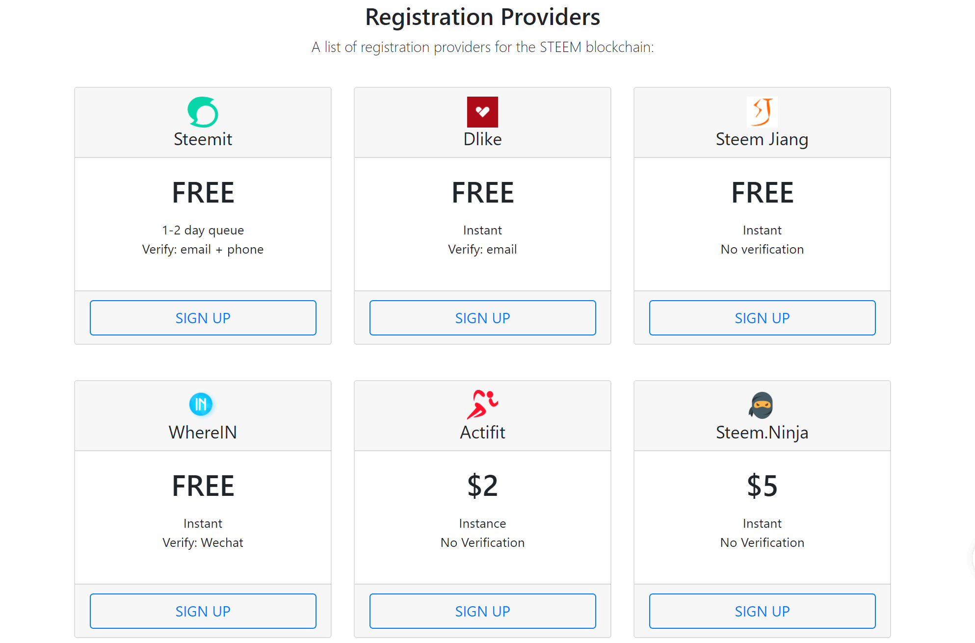 STEEM注册列表页面 / STEEM Signup Page