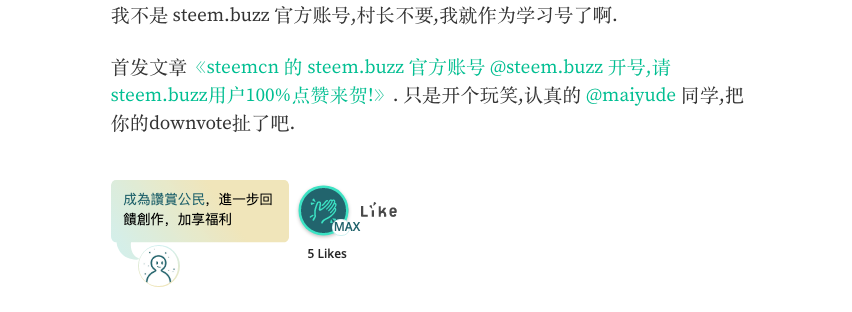 steem.buzz上设置好likecoin按钮,看到like,看不到钱?:)