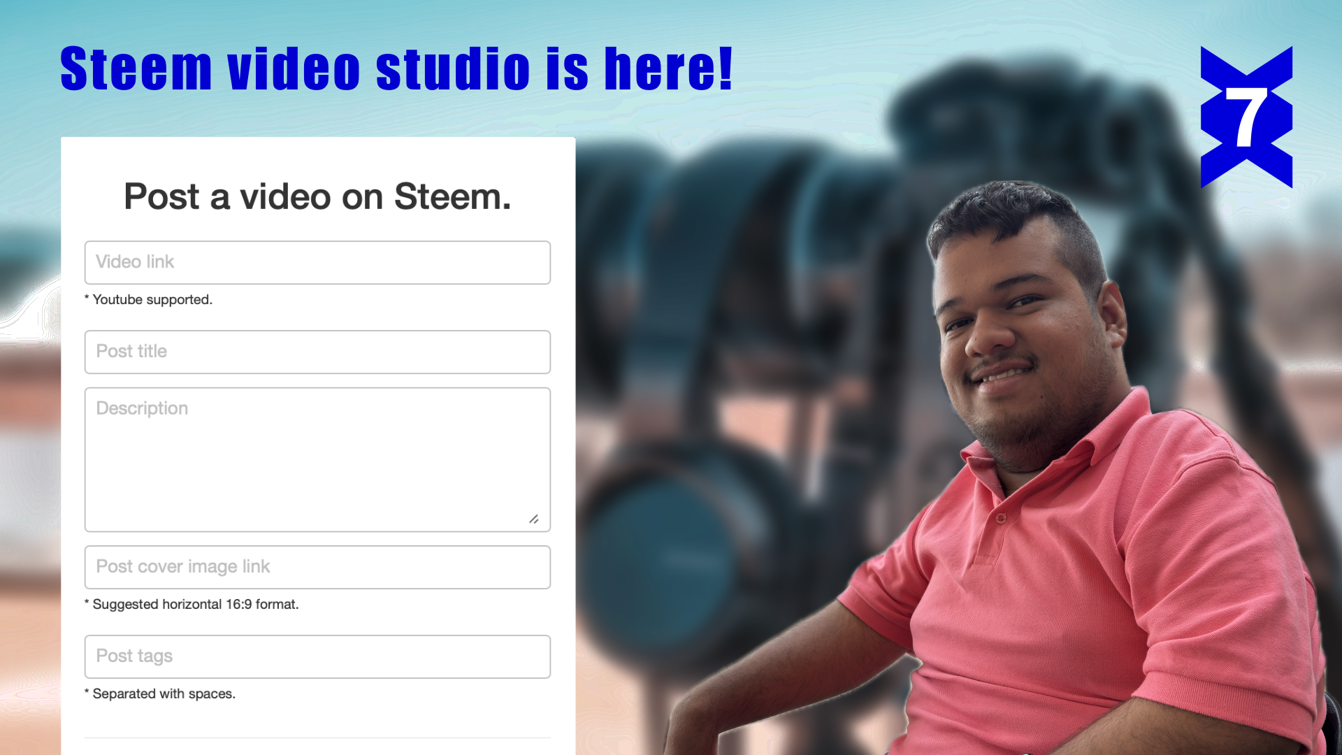 From the Seven team today we are pleased to announce the beginning of a new adventure in Steem. We firmly believe that Steem has the potential to hook and change the lives of many people, and that is why we continue to revolutionize with ideas that can attract more people, that is why today we introduce Steem Video Studio, a tool that will help creators upload their videos to Steem without worrying about writing complex markdown codes and focusing instead on making the best possible videos.