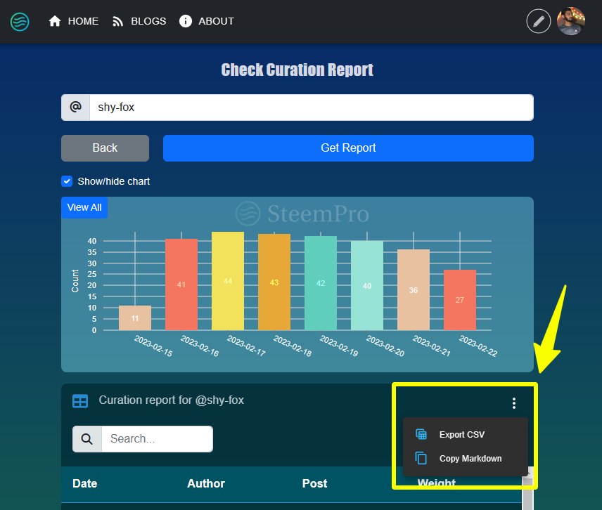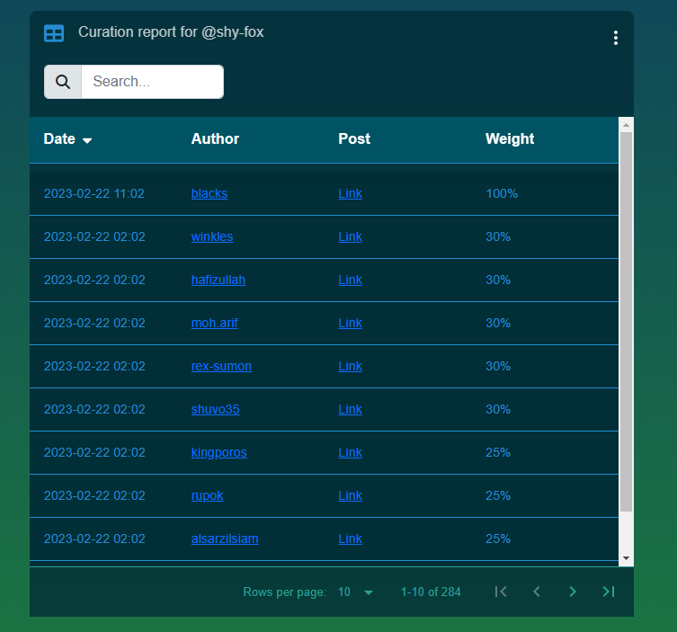 We add the curation report option on the home page where you can check the curation history of any account in an interactive way. Here is the direct link for this tool.