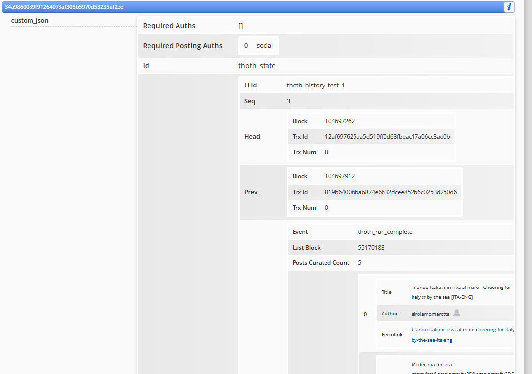 Fortunately, I had a weird work schedule this week, so I was able to use my mornings to work with Gemini, Claude, and Cline as "pair programmers" and get started playing with the concept. As a result, I put together a first pass at a linkedListOnSteem library and get Thoth plugged into it for storing its curation history in a linked list on the blockchain.
