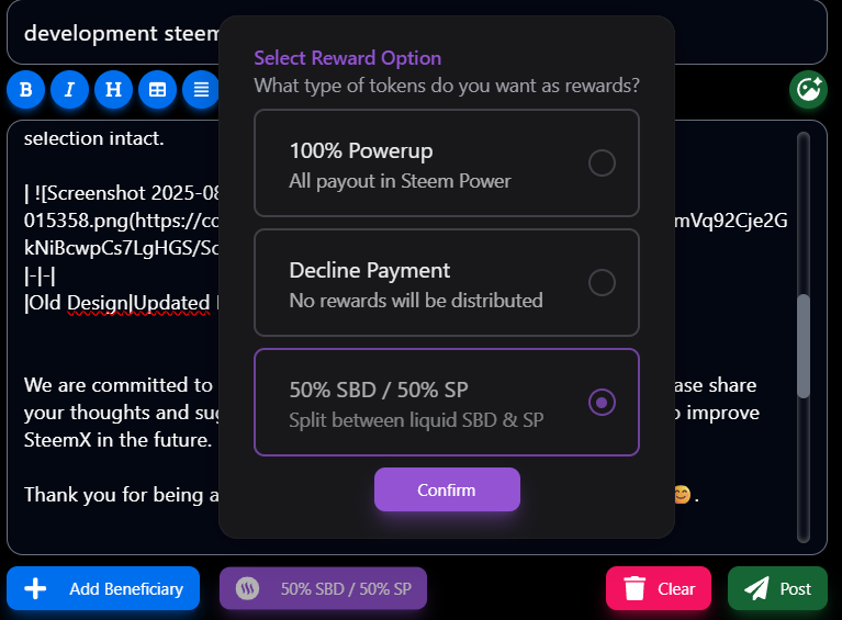 We are excited to share some recent updates we have made to improve the posting experience by SteemX on steem. These changes were inspired by valuable community feedback, specifically a report from @sergeyk. thank you for pointing out these issues.