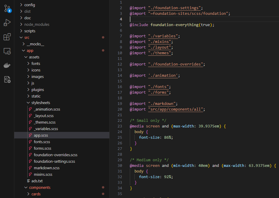 The ~foundation-sites/scss/foundation imports another Steem Git Hub repository (https://github.com/steemit/foundation-sites.git).
