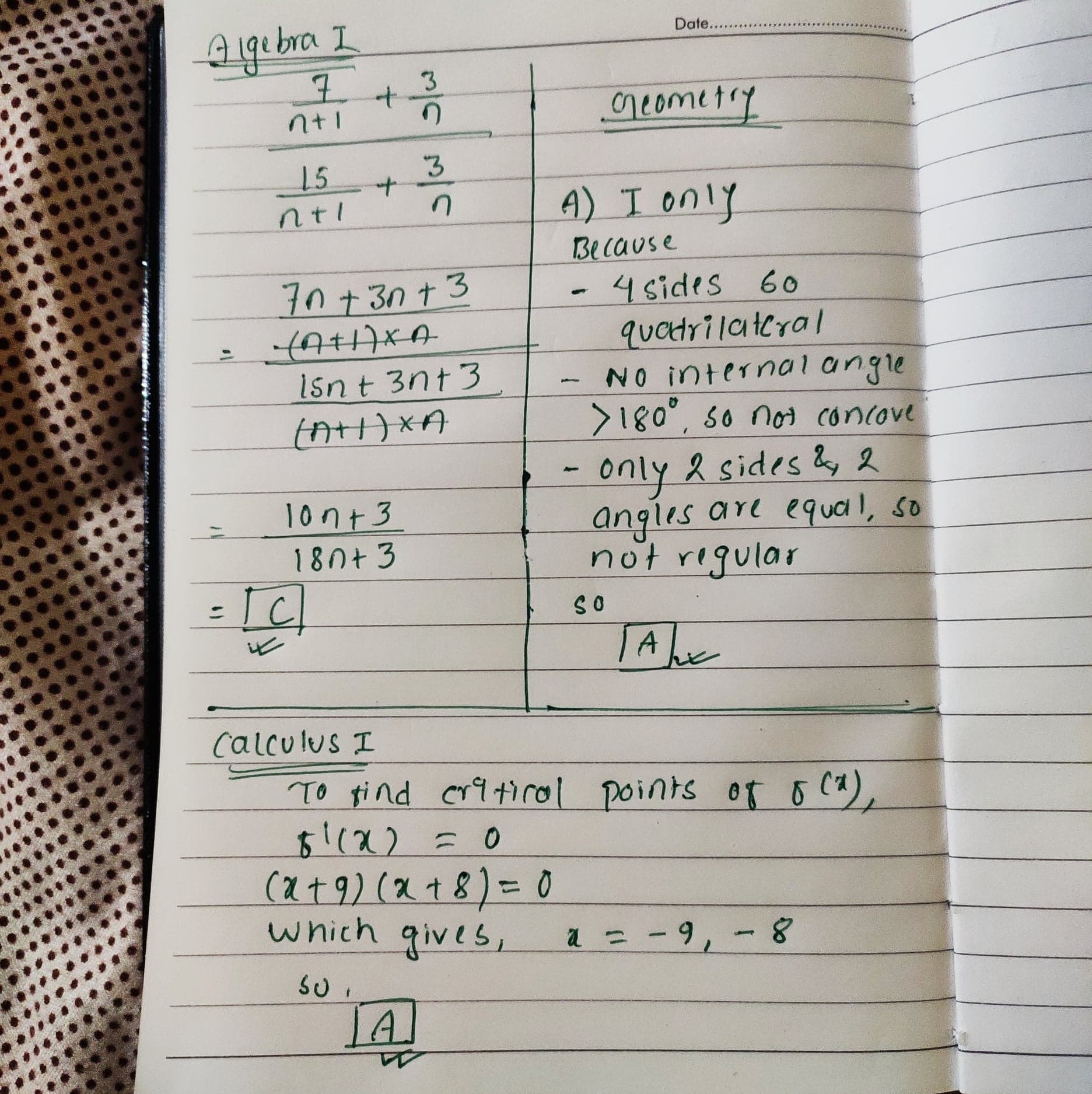 Answer of Calculus I is A