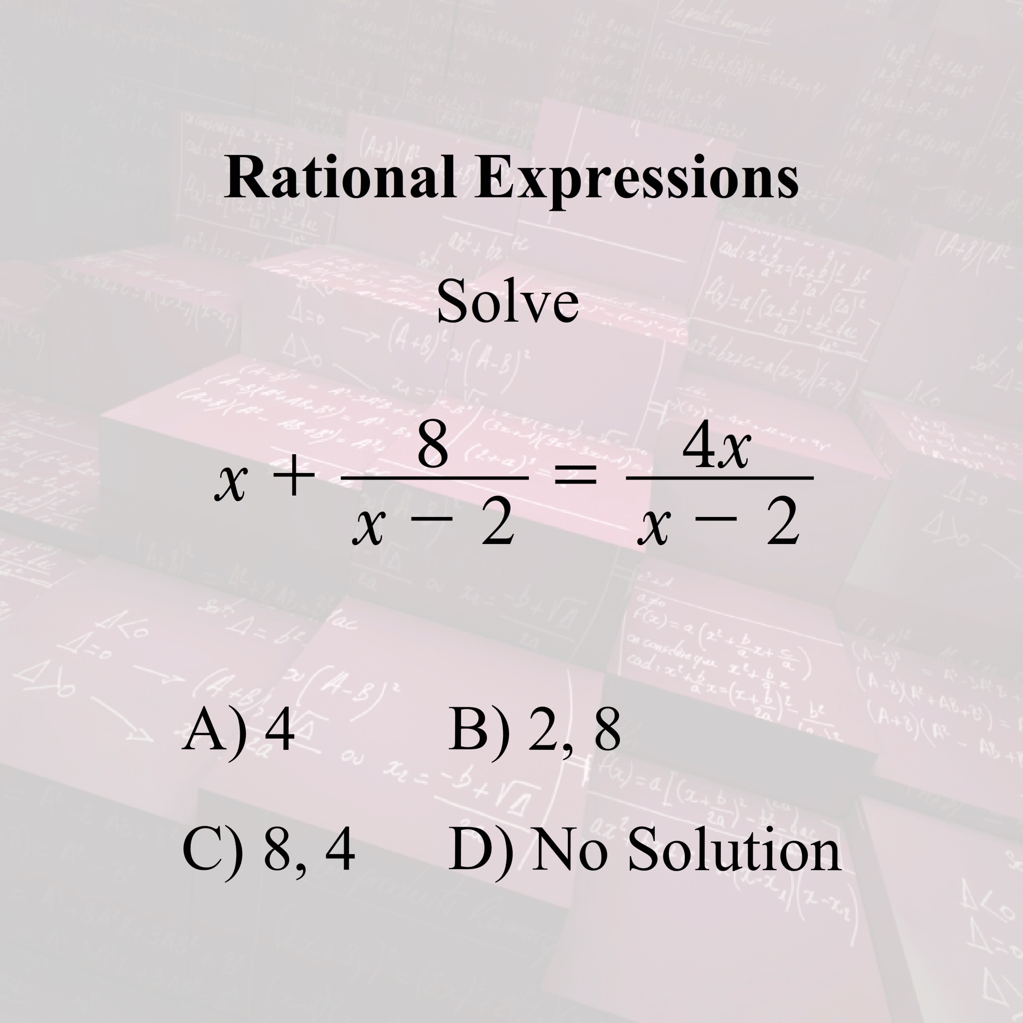 Answer of Algebra I is A (solution is 4, 2 ) I think 2 is missing in option A, please check