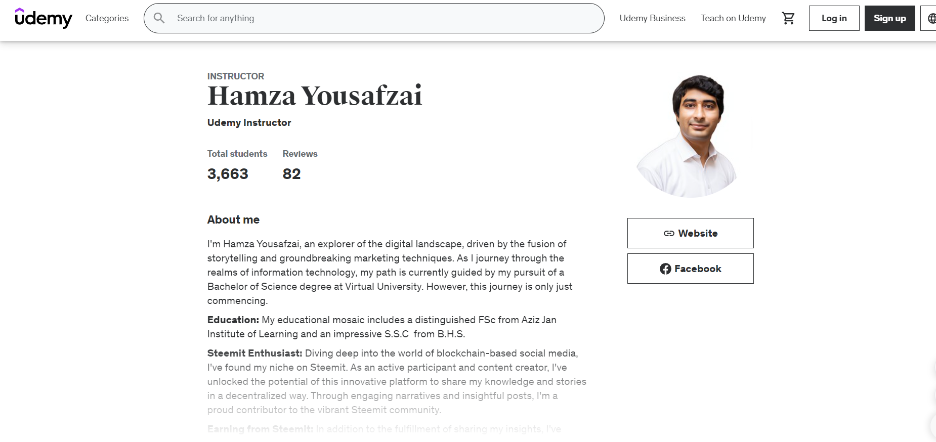 Hello my name is Hamza Yousafzai and I am a professional instructor on Udemy specializing in Digital Marketing. I have been teaching for several year and have over 3 000 students enrolled in my courses with 86 positive reviews. My student apprecate my teaching style and I am confident in delivering Valuable content.