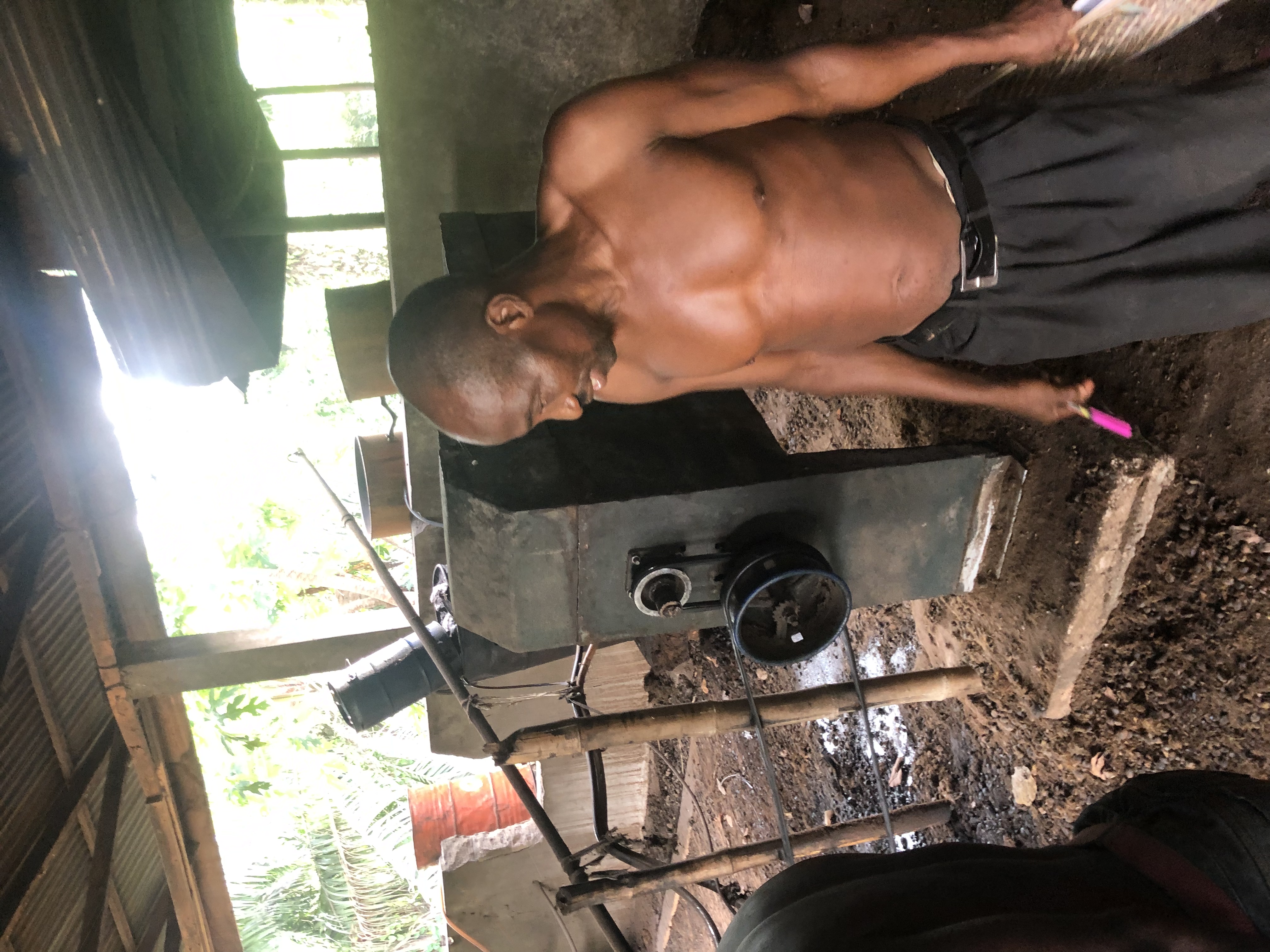 This is oil processing unit where boiled palm nuts are poured for grinding.