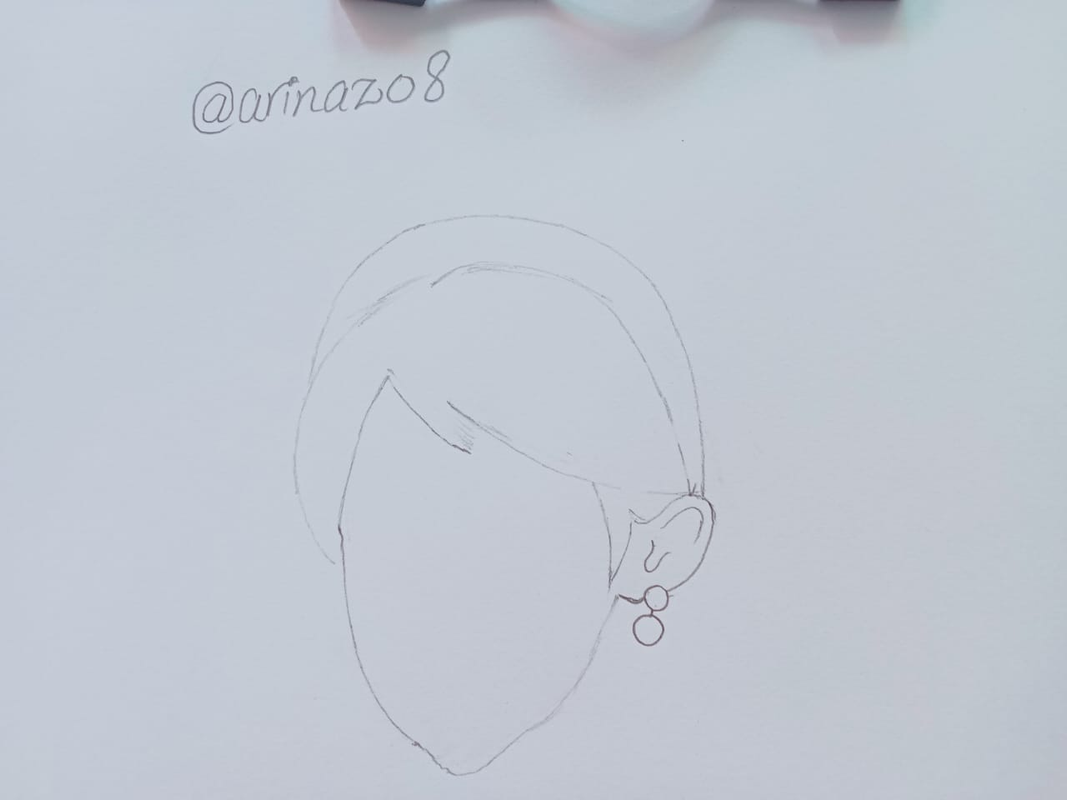 And after that, I started making the rest of the drawing. Now I have designed her hair a little bit. As you can see, her hair will be in such a way that her hair will be a little bit light and there will be a side pose. So after that I have made the side pose so that our outline can be completed. After that I will make her eyes and nose etc. So first of all I have given the shape of her ears and hair so that I can draw the next one because I feel uncomfortable.