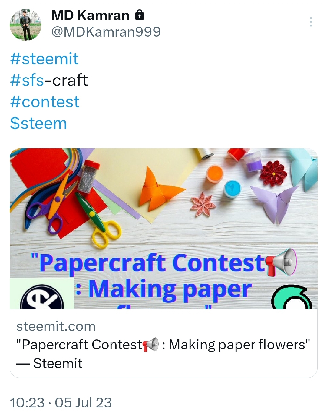 The post title should be : "Papercraft Contest📢 : Making paper flowers"