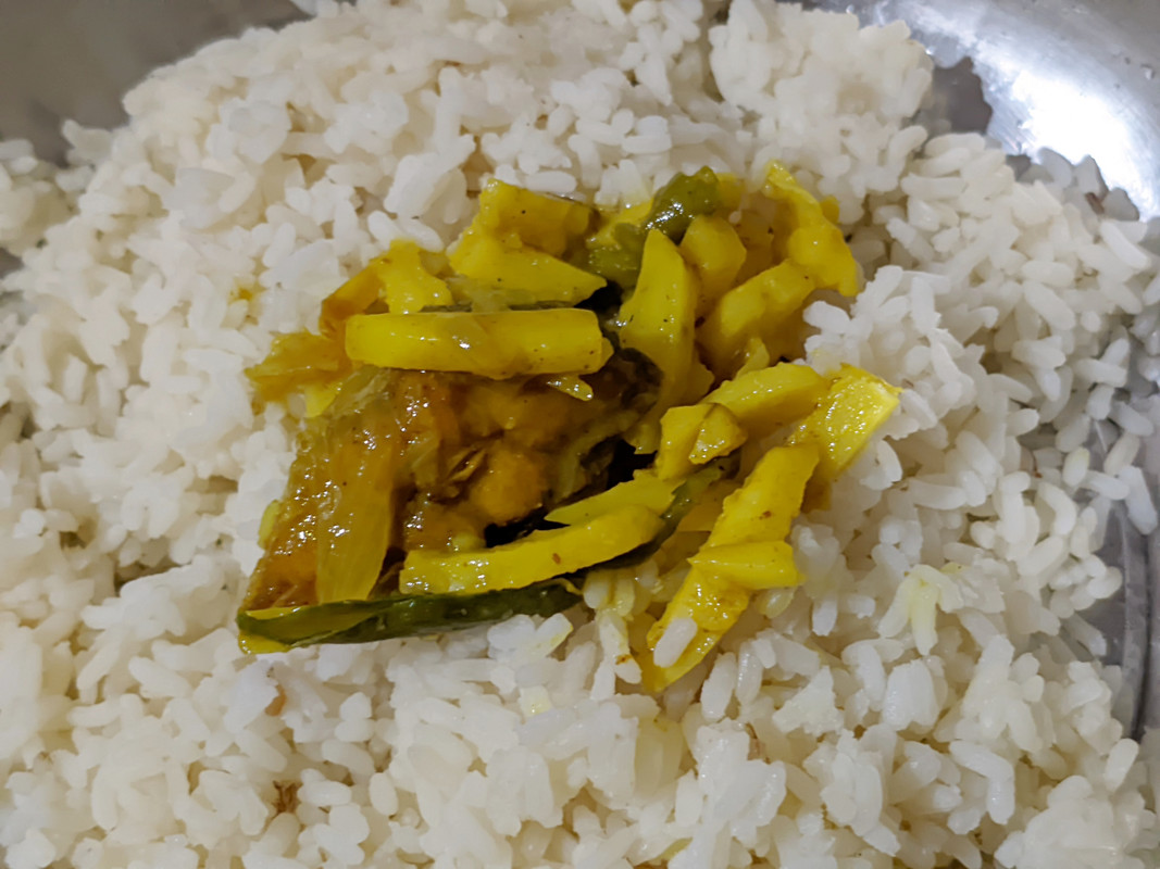Then after eating the biscuit in the morning and having breakfast, when I was returning home, I saw a man carrying dry rice plants in a van along the village road. It looked beautiful, so I took a photo. And in the noon I watered the eggplant plants in the vegetable garden for some time and cleaned up some weeds.