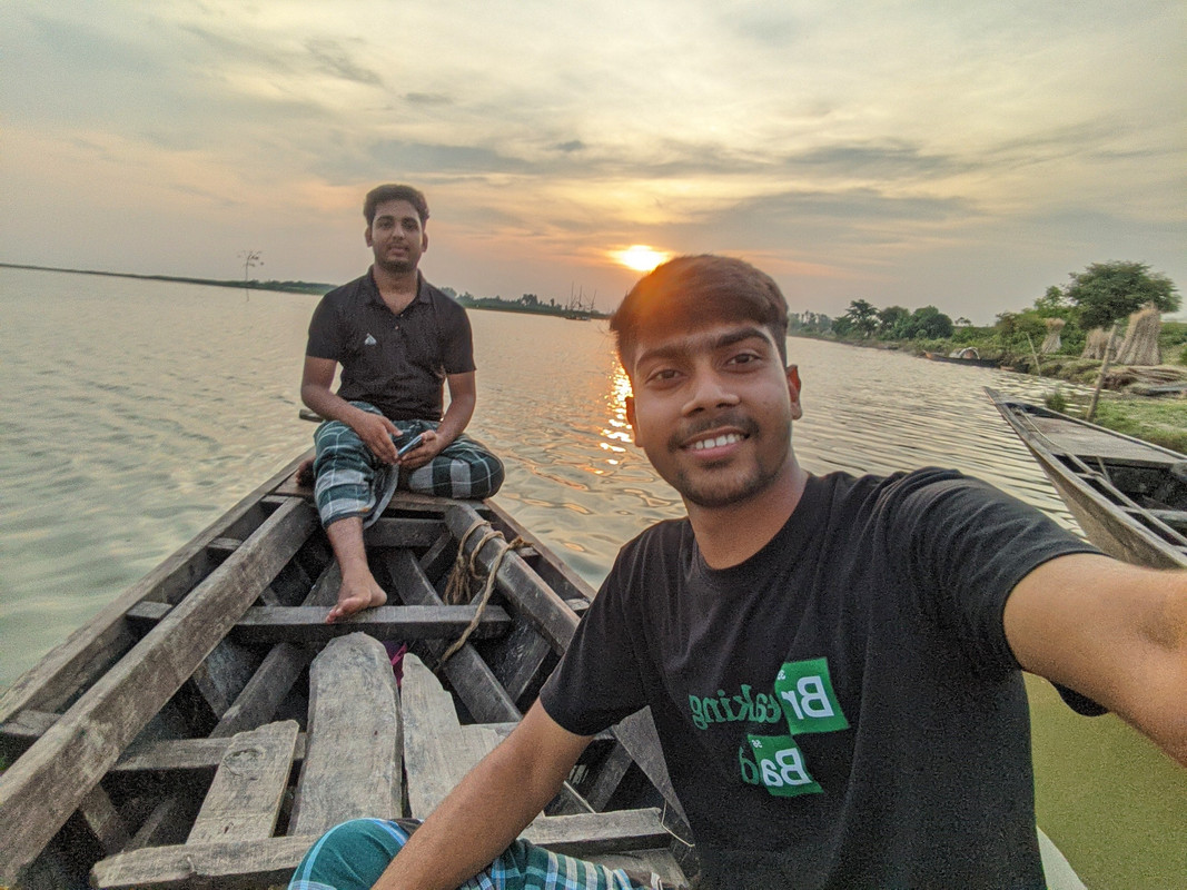 The red sun of the late afternoon was reflected on the water of the river, and it was nice to see the big boat on the river. I did photography and videography. While enjoying the moment on the riverbanksitting on the boat, I took a selfie with my Steamian friend @anowarhoussain. After that, it was a long time. The last afternoon spent on the riverbankwas at 6:20 pm.