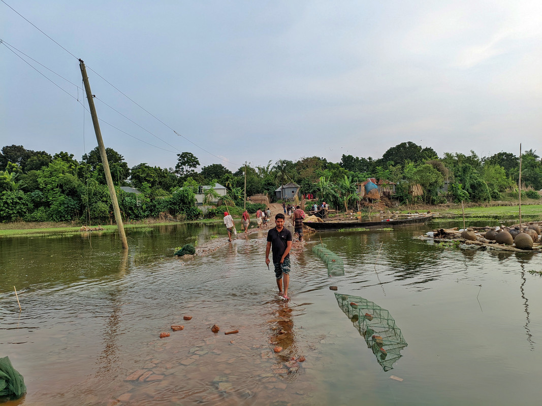 Today I came and saw that there was a little water on this road to go to the other side of the river through the river. Then I and my friend crossed this little water together, and my Steamian friend was there at that time. I took a photograph of the time when my friend was crossing through the water.