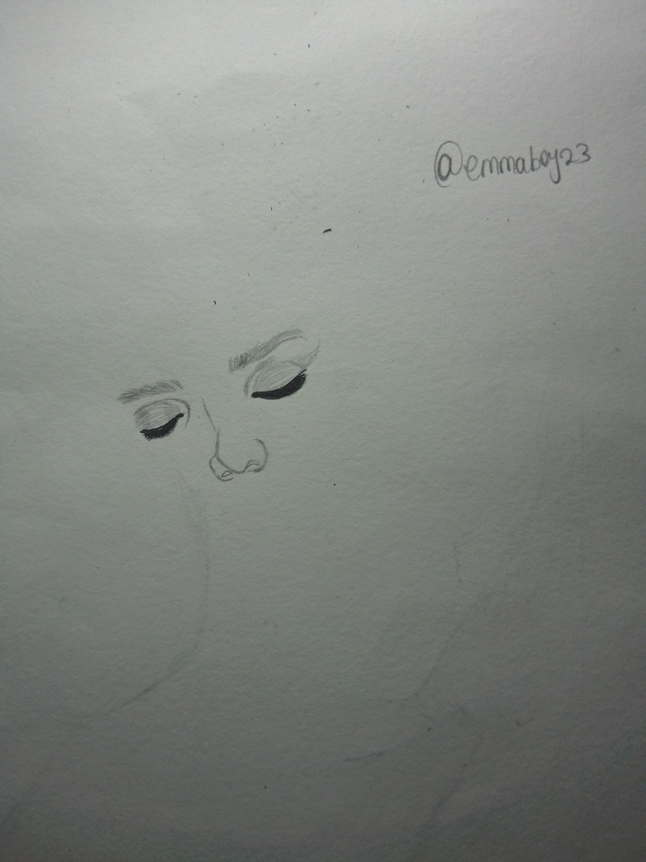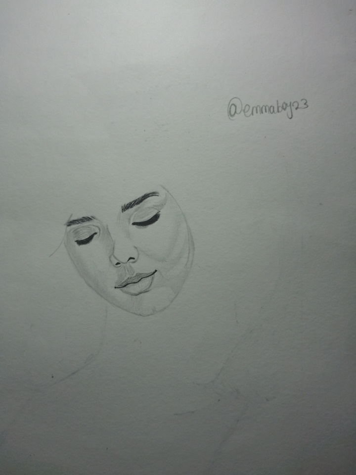 I began by sketching the shape of the head and lightly placing the guidelines for the eyes, nose, and lips. First I drew her closed eyes too; I wanted the posture to show tranquillity and restfulness.