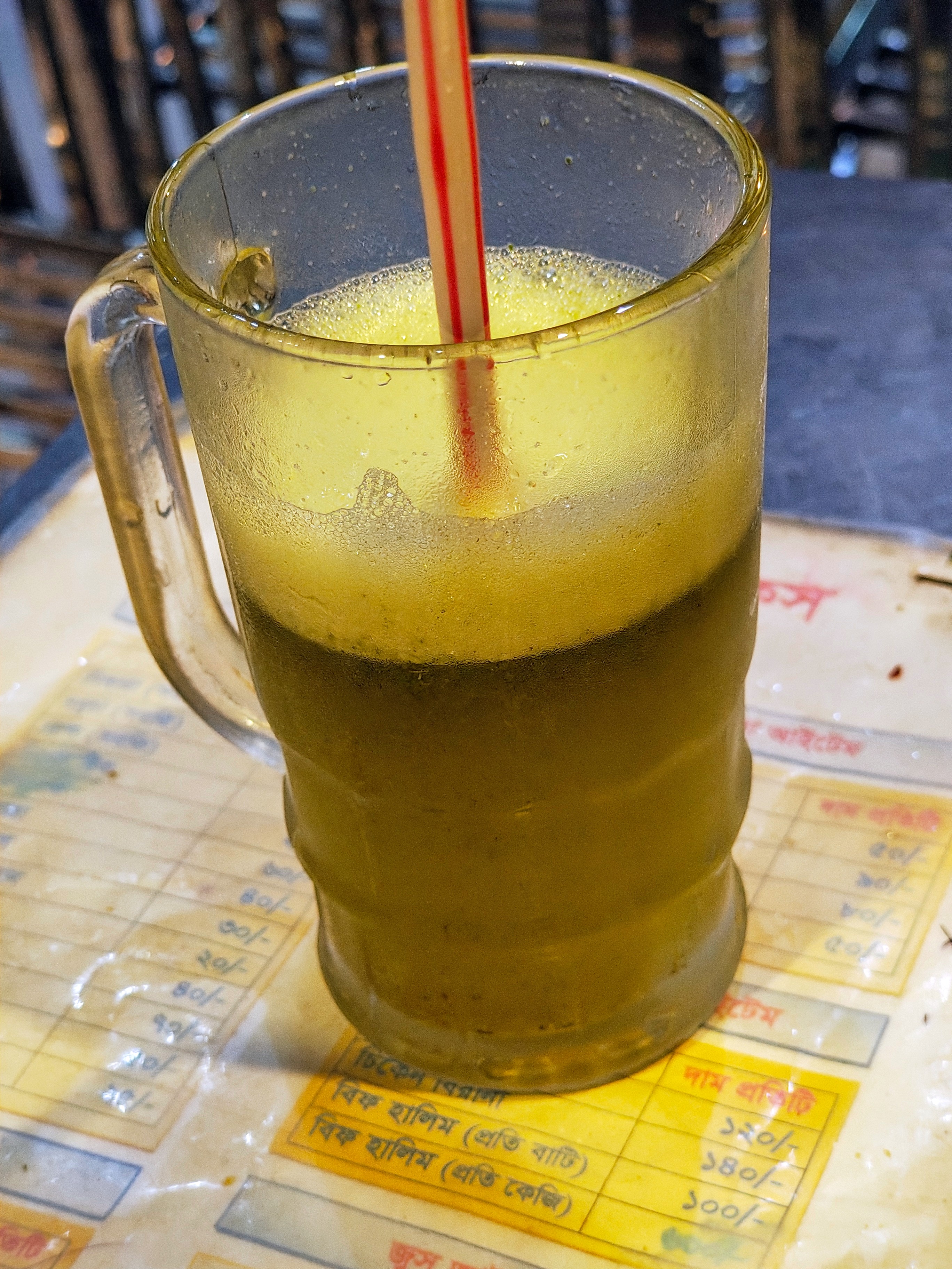 After eating the snacks, I had the cold mint lemon. It was served in a large glass. The drink was served very normally in the glass, and the taste was just as a normal mint lemon should be.