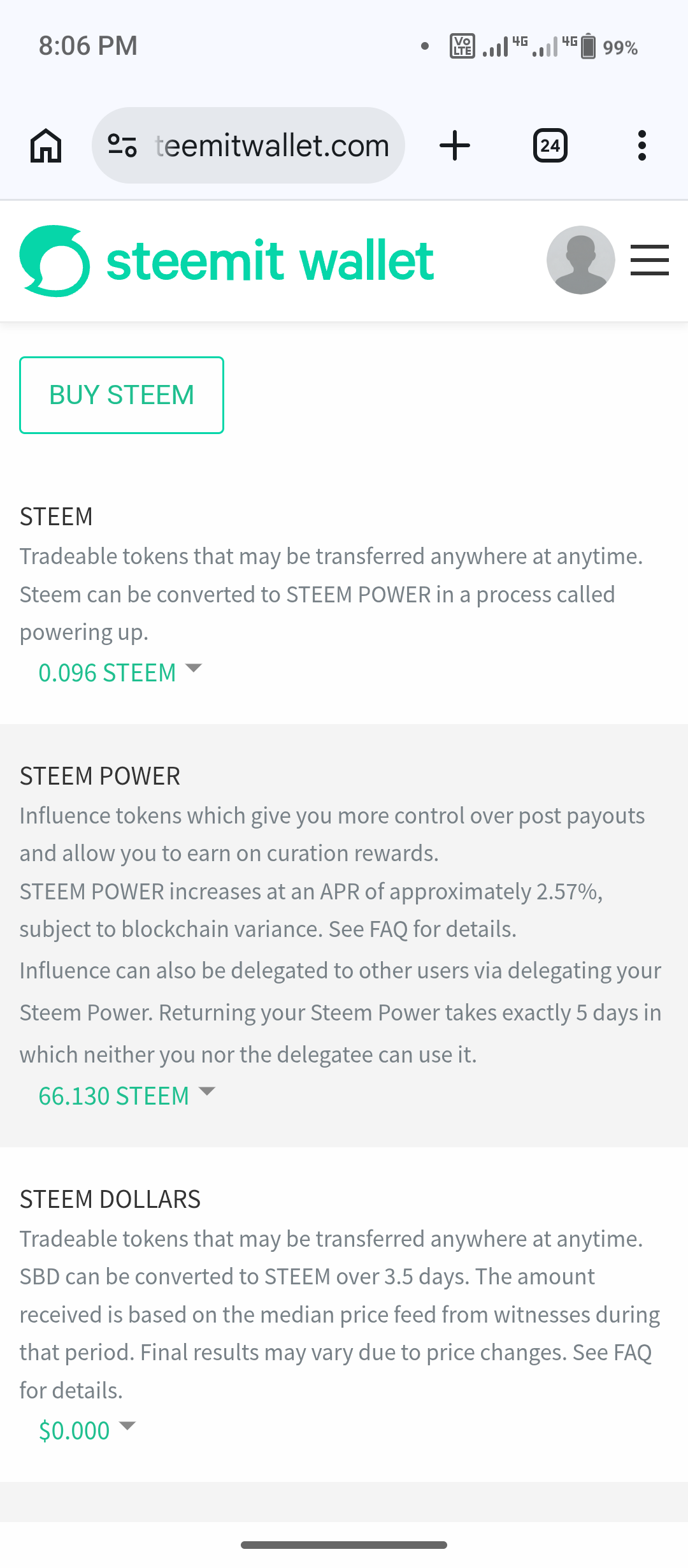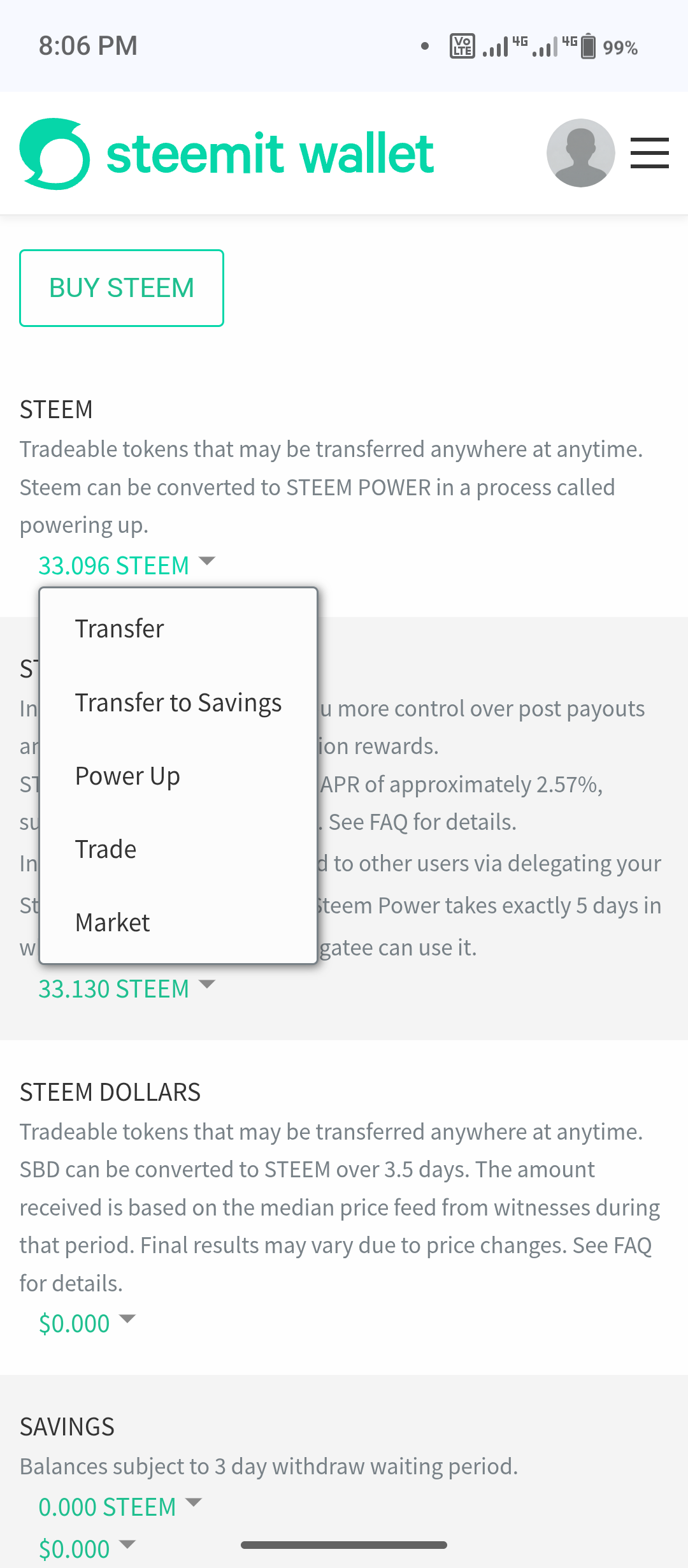 I had 33 Steam. I entered my wallet to power them up.
