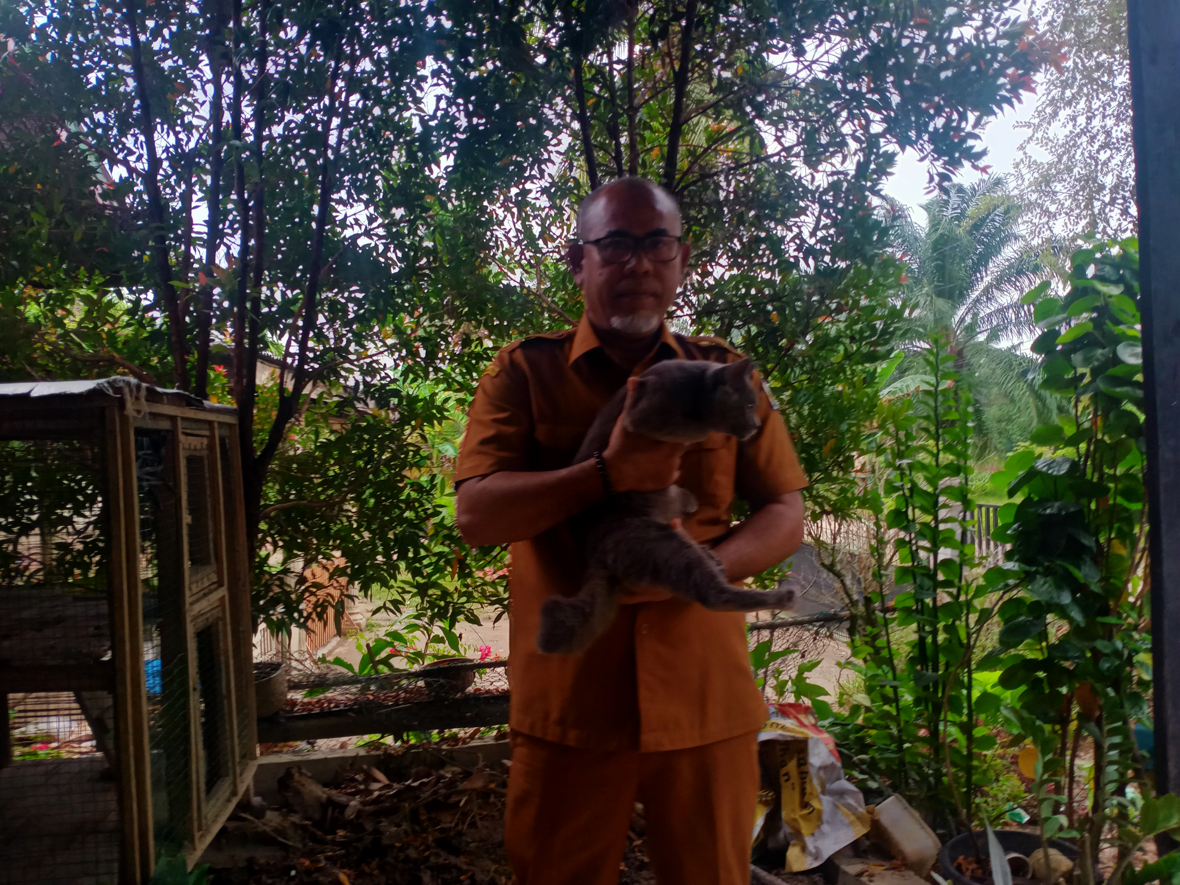 Usai sarapan pagi, aku mengeluarkan si Anas kucing kami yang bila malam hari kami tempatkan di rumah tetapi di siang harinya kami memindahkan si Anas ke kandang yang berada di samping teras rumah kami.