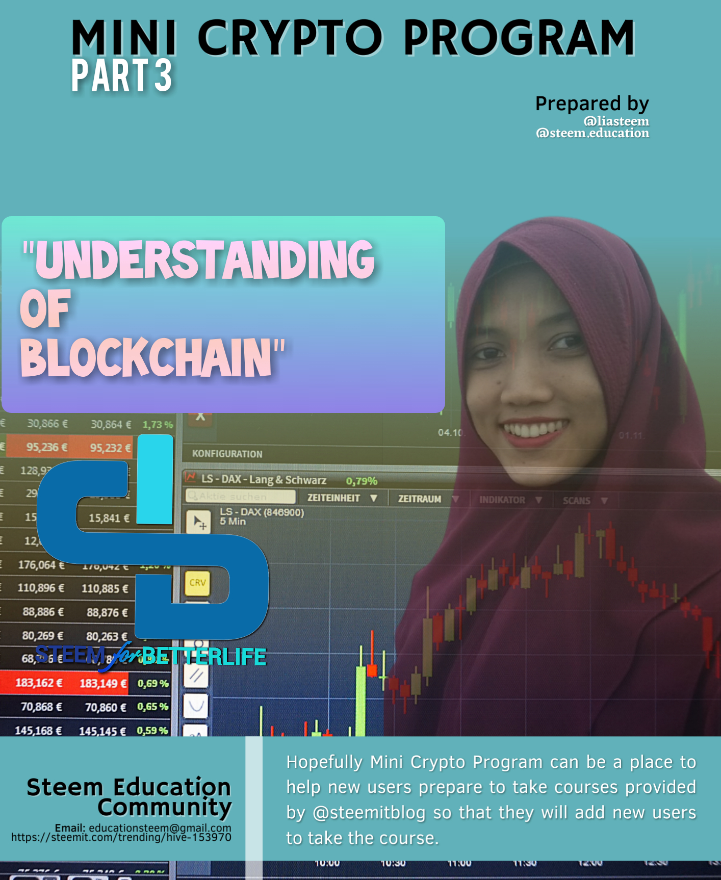 And now it's time for STEEM FOR BETTERLIFE to provide an opportunity for beginners with a reputation under 60 and reputation above 60 to take part in the Mini Crypto practice, because we see the enthusiasm of beginners in joining "Mini Crypto Program Part 2" is very high and we get very good input from all Steemian circles, therefore we Steem Education Community re-launch "Mini Crypto Program Part 3" and win the Upvote vote from @booming.