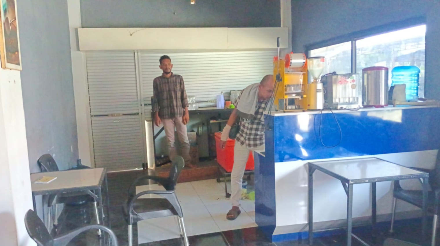 After seeing it in person, we agreed to rent this place for two years at the price we agreed on of IDR 35,000,000 per year or if converted to dollars $2,187.5 all of which includes equipment or inventory such as chairs, tables, coffee kitchen, fan, freezer and several other coffee equipment.