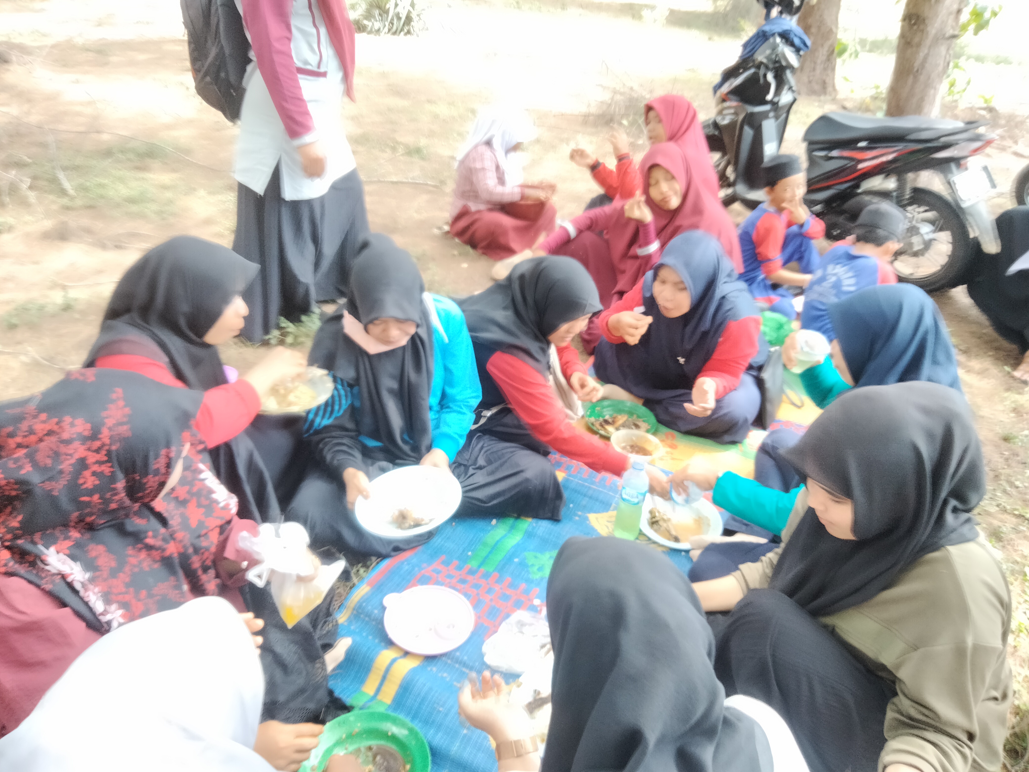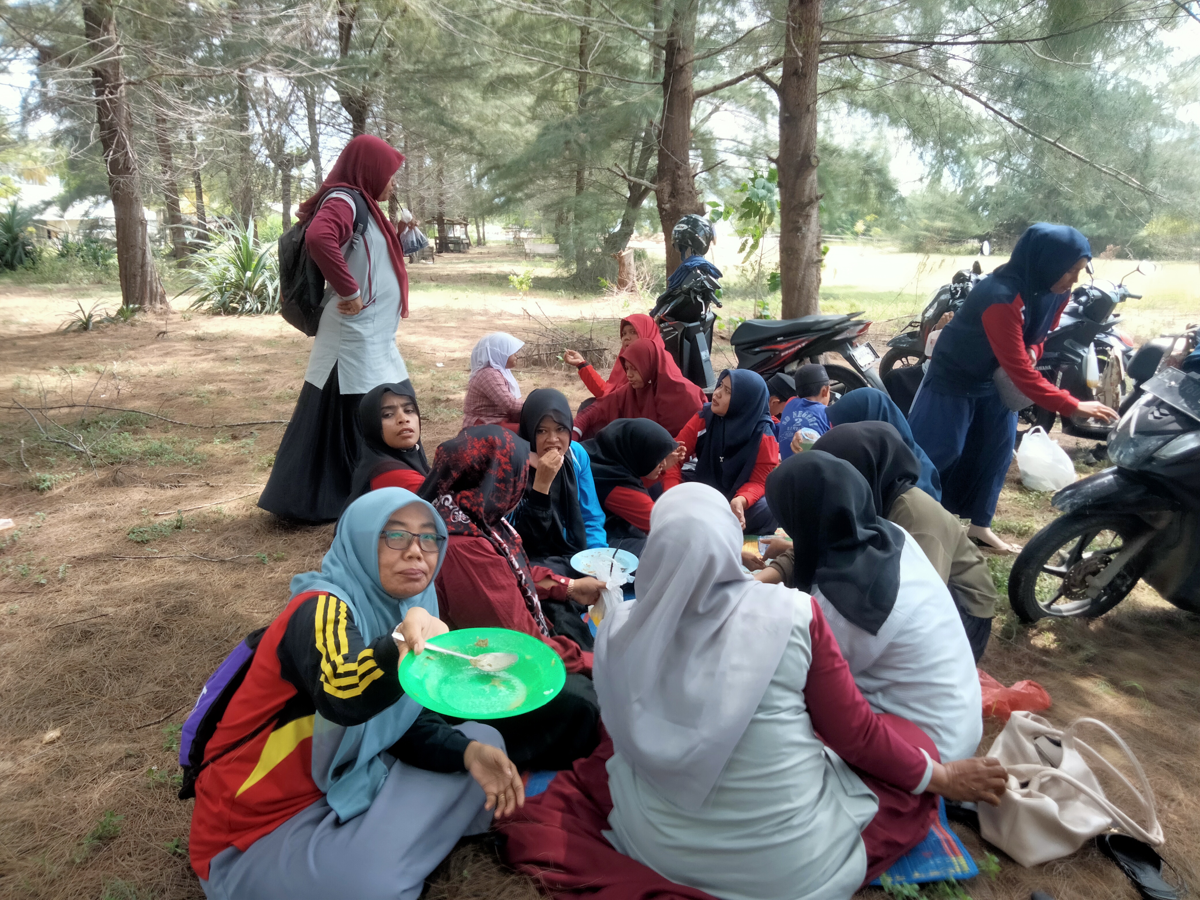 Makanan tersebut kemudian kami bawa ke laut dan di sana bapak-bapak sedang memanggang ikan, tangan ku sudah agak terasa pedas akibat memotong cabe terlalu banyak, namun masih sanggup aku tahan, setelah makan-makan selesai saya langsung pulang karena di kampung ada acara tahlilan di rumah kepala desa kami yang meninggal beberapa hari yang lalu.