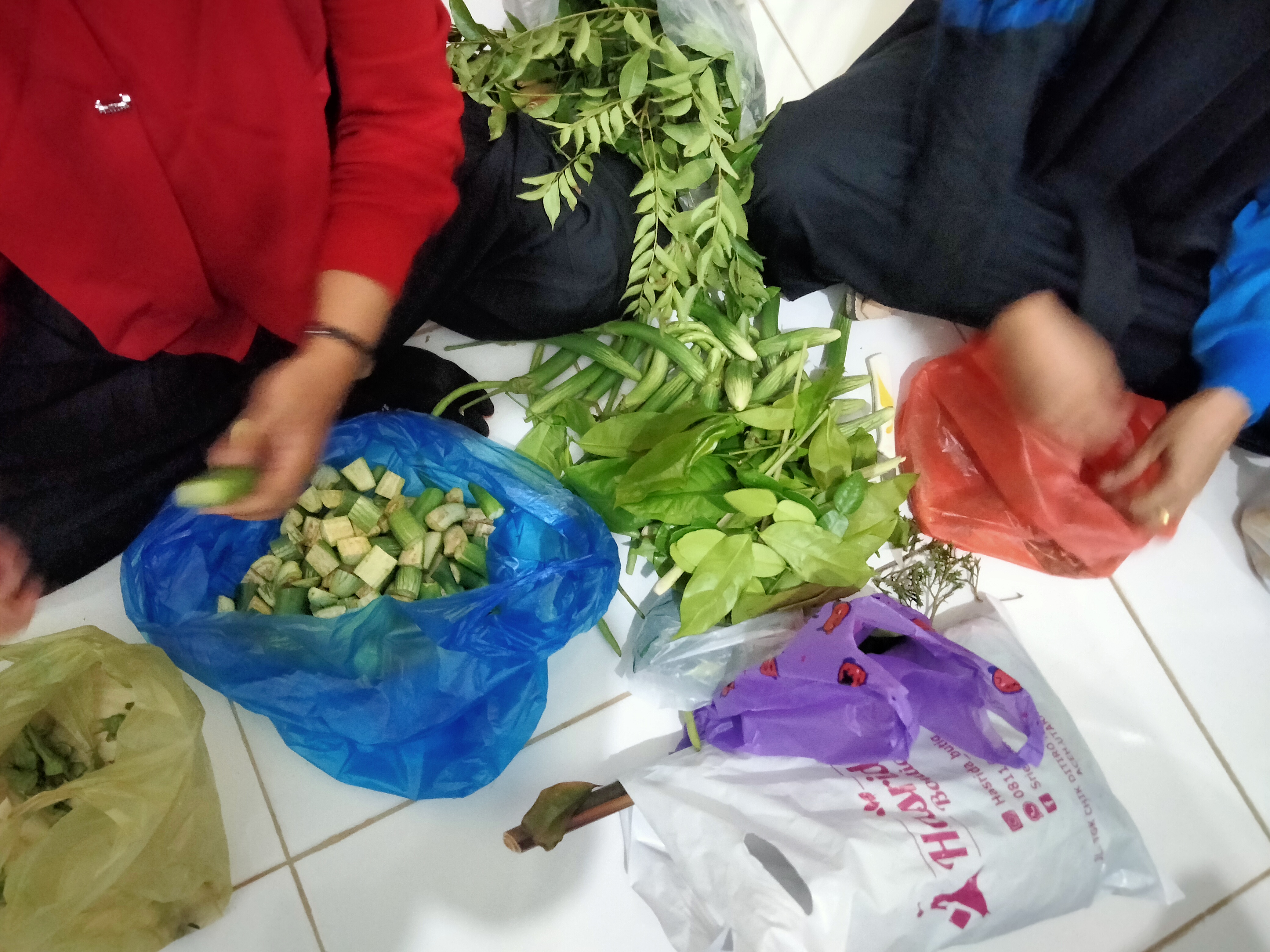 Sampai di sekolah aku melihat ibu kepala sekolah sedang menunggu anak-anak di gerbang sekolah, saya yang sudah telat langsung ke kantor dan bekerja seperti biasanya, setelah itu saya langsung mengambil sayuran untuk segera di potong-potong dan semua itu saya lakukan bersama beberapa teman saya.