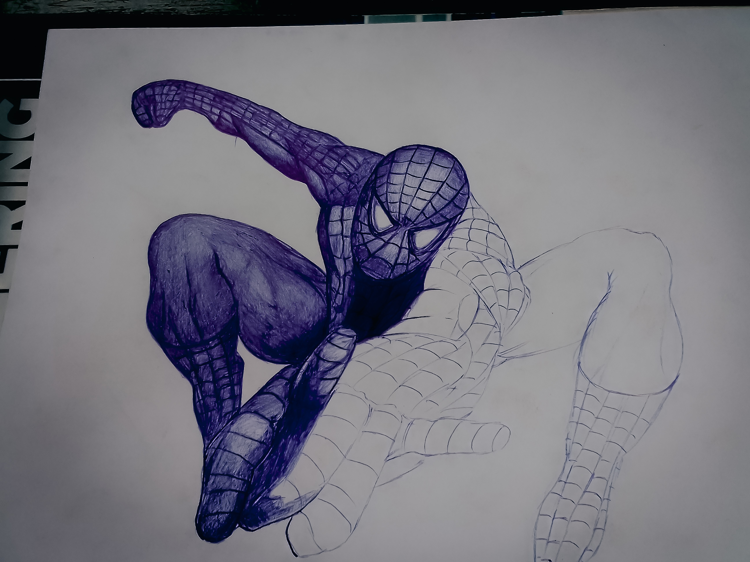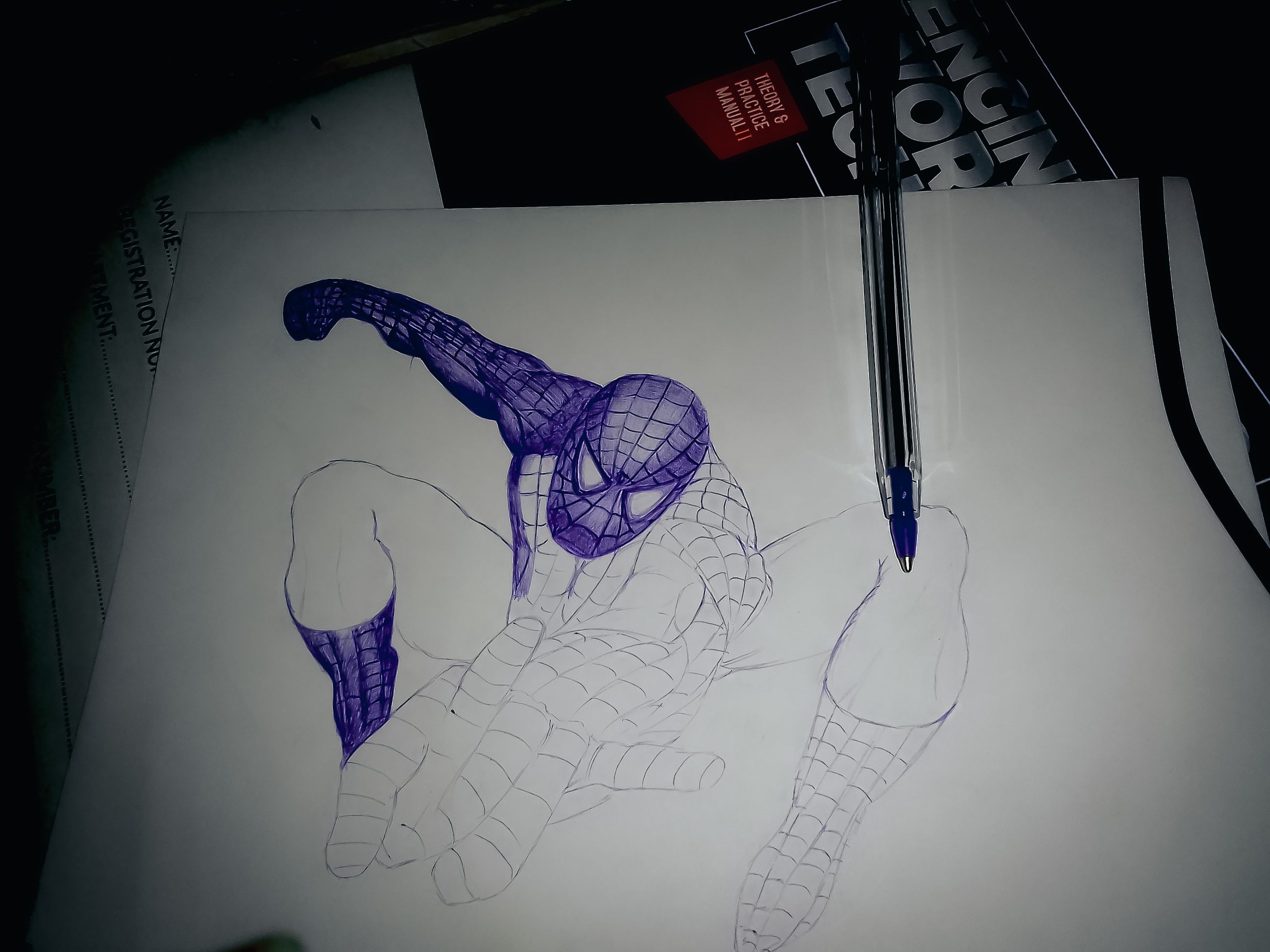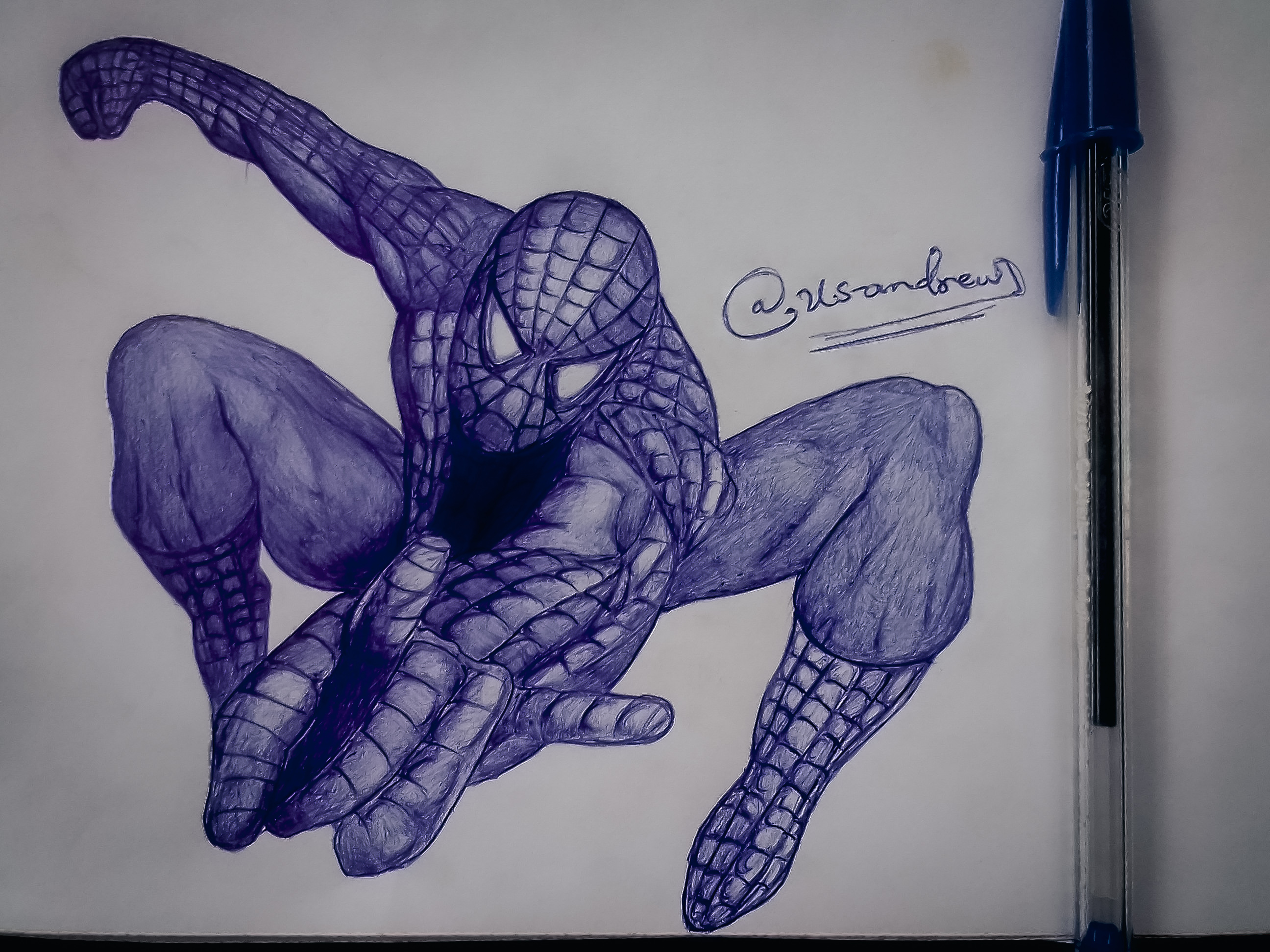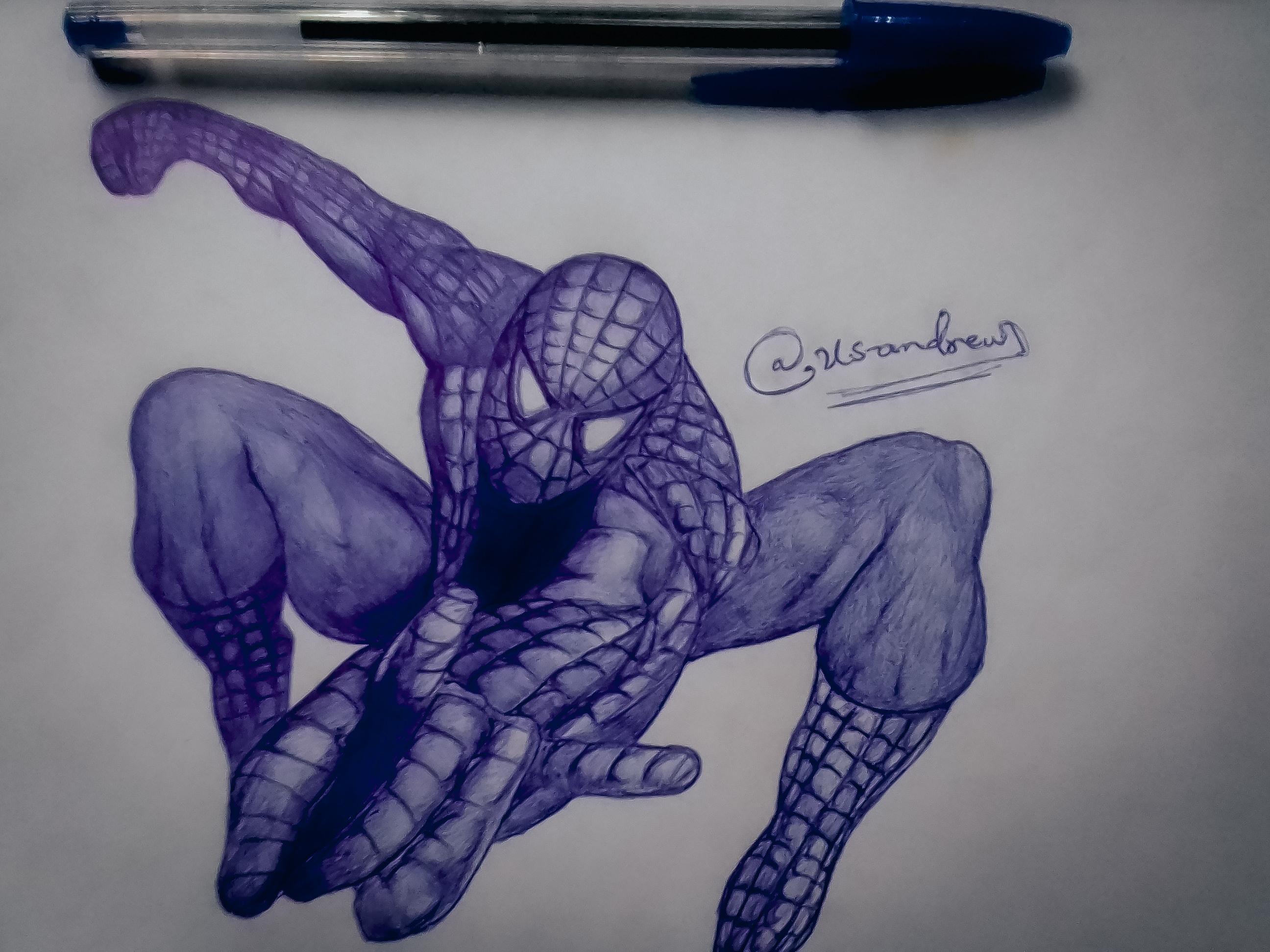 I've been doing a couple of pen art for some time now, so I decided to step it up a bit. A realistic pen art of Spiderman from my memory for a start. And it turns out well.