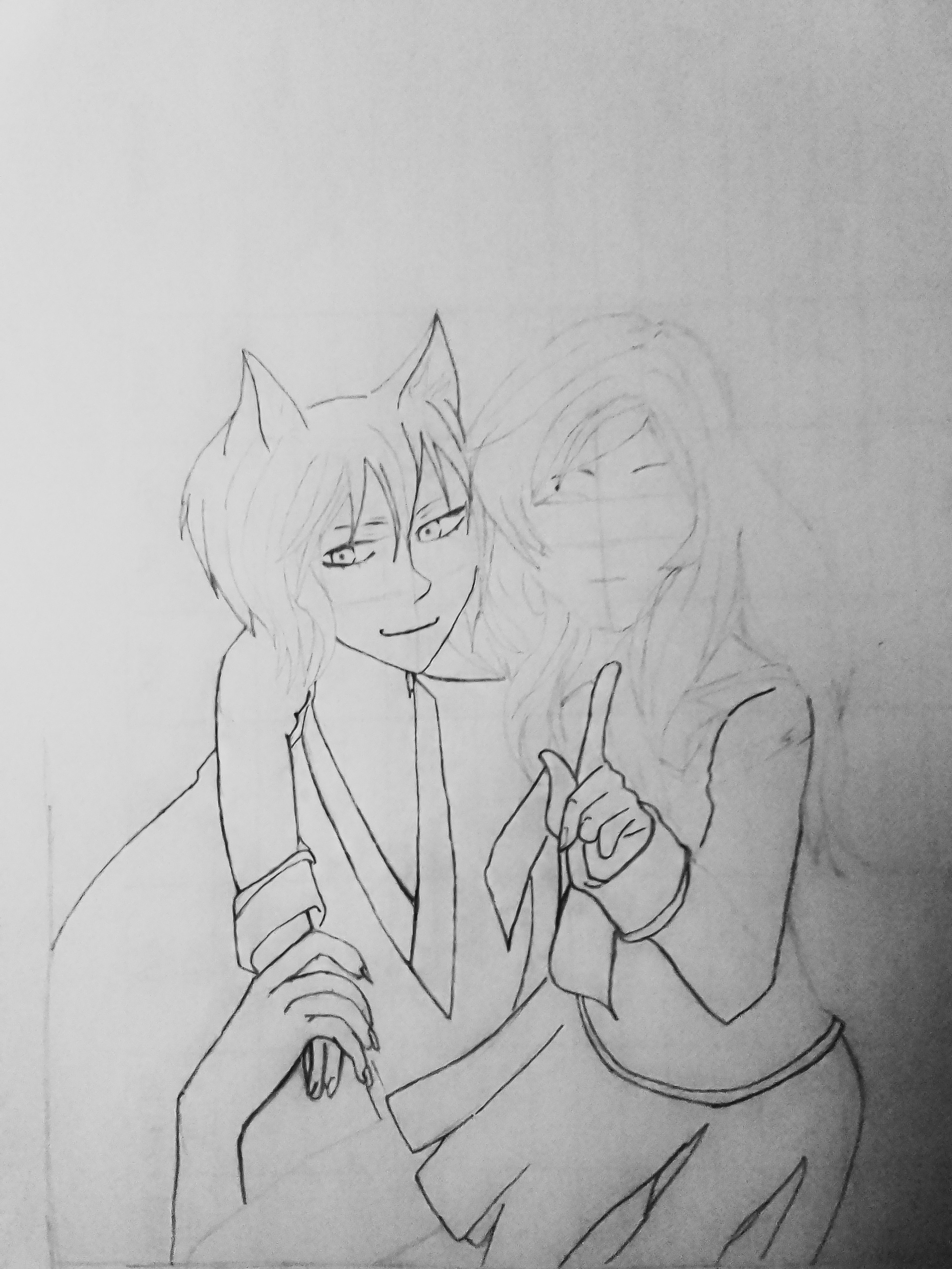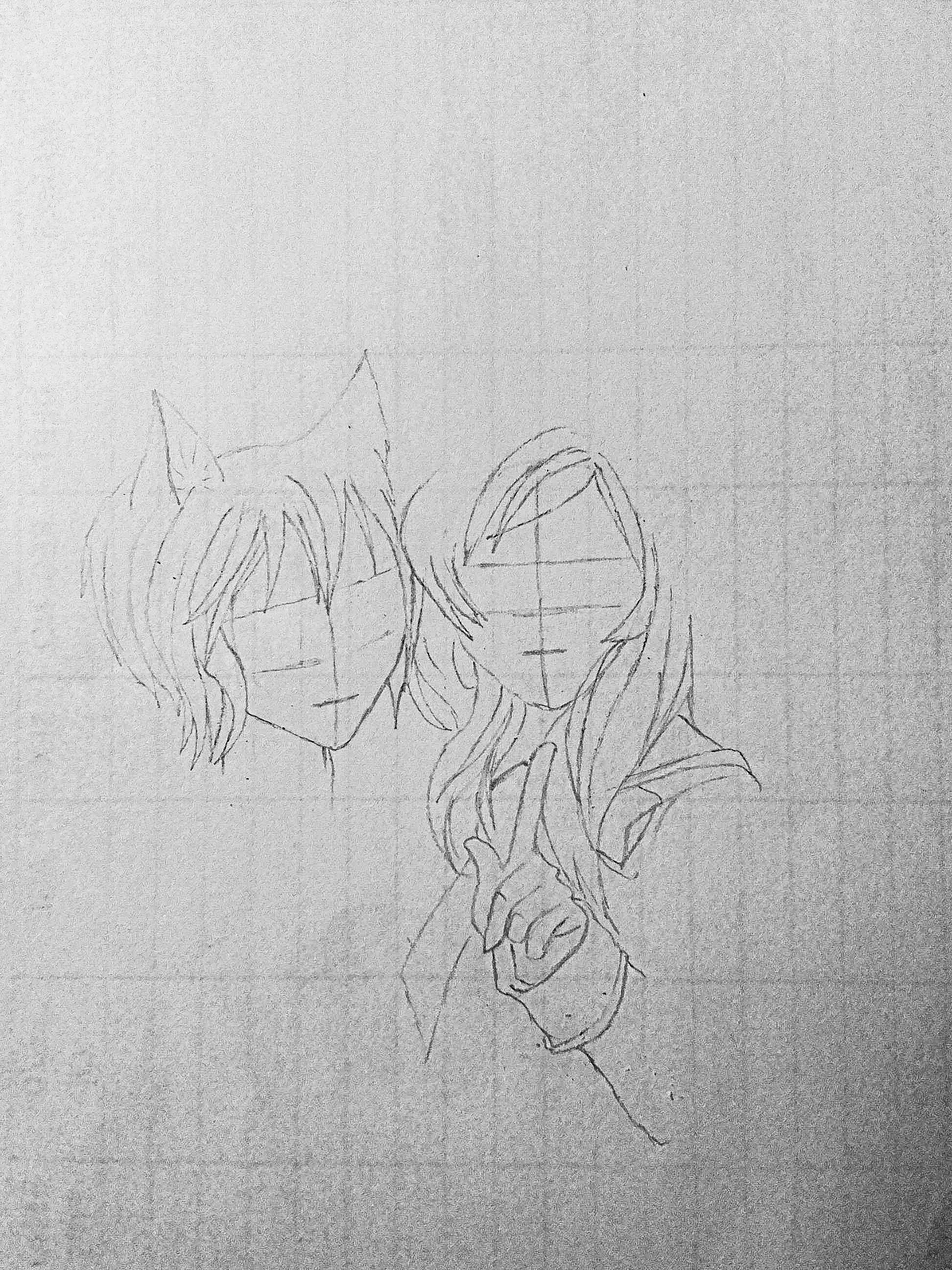 After that , I also did a sketch of their hair, how it would look like. Then, I also did the sketch for the body and cloth too.
