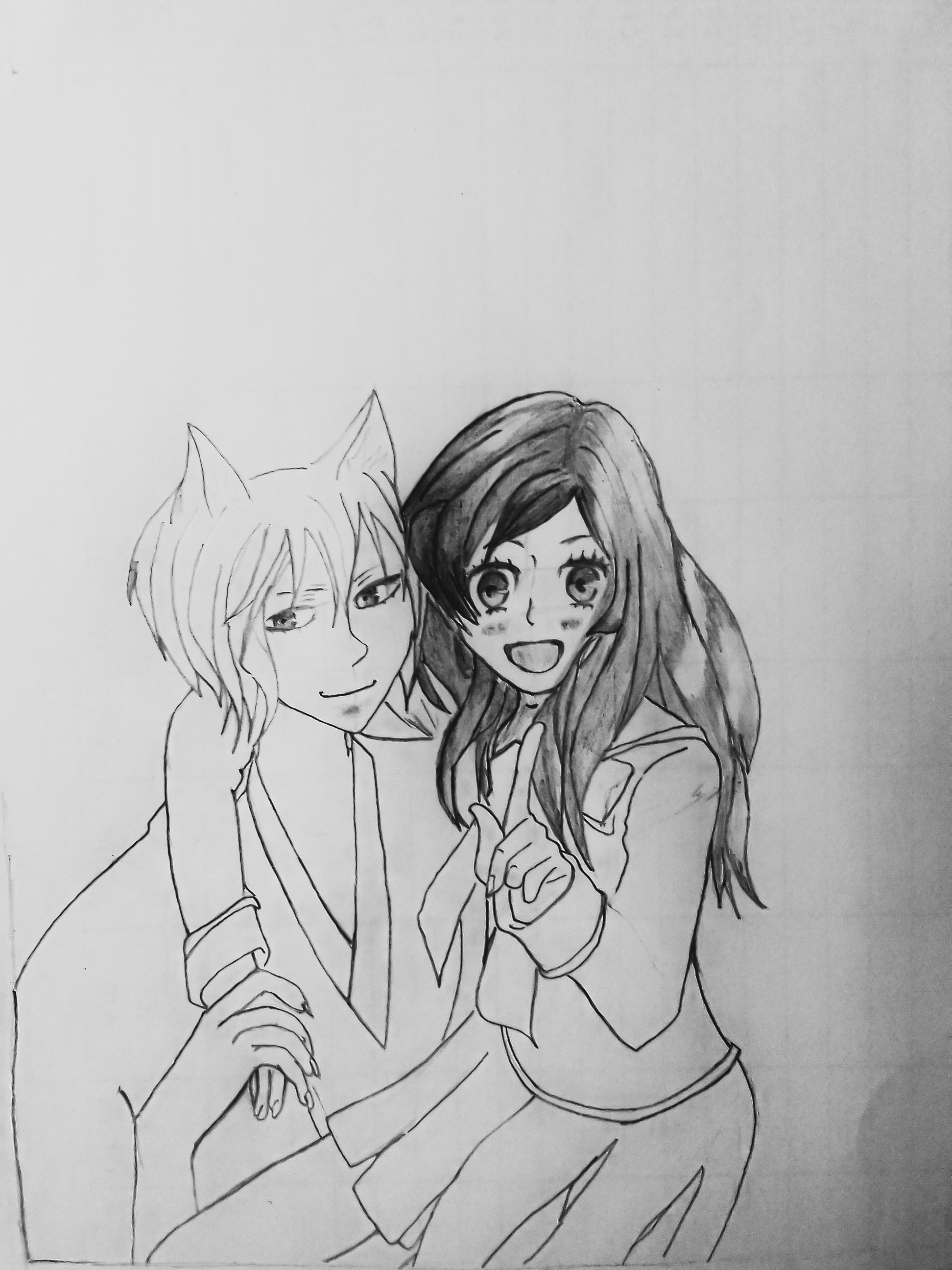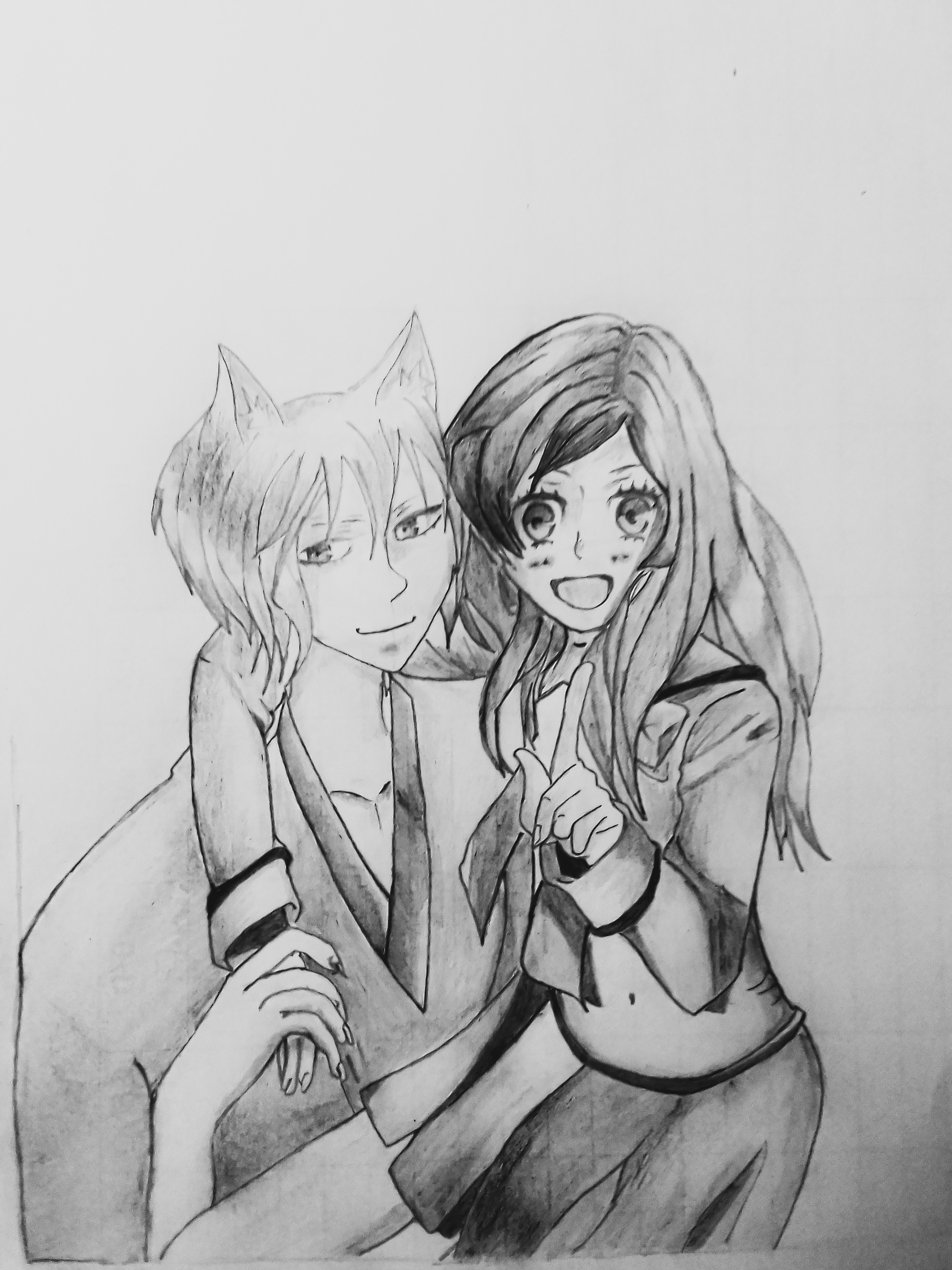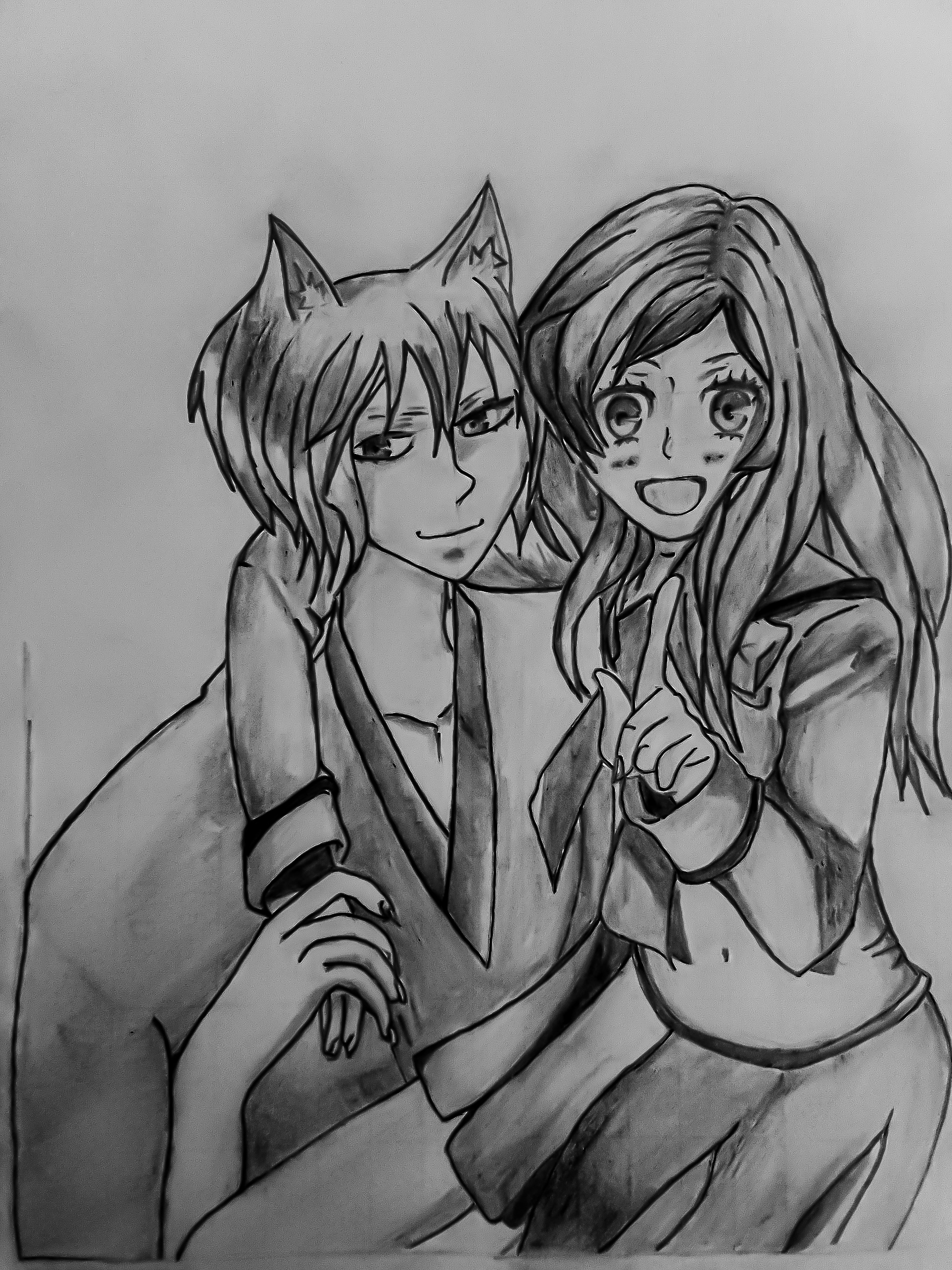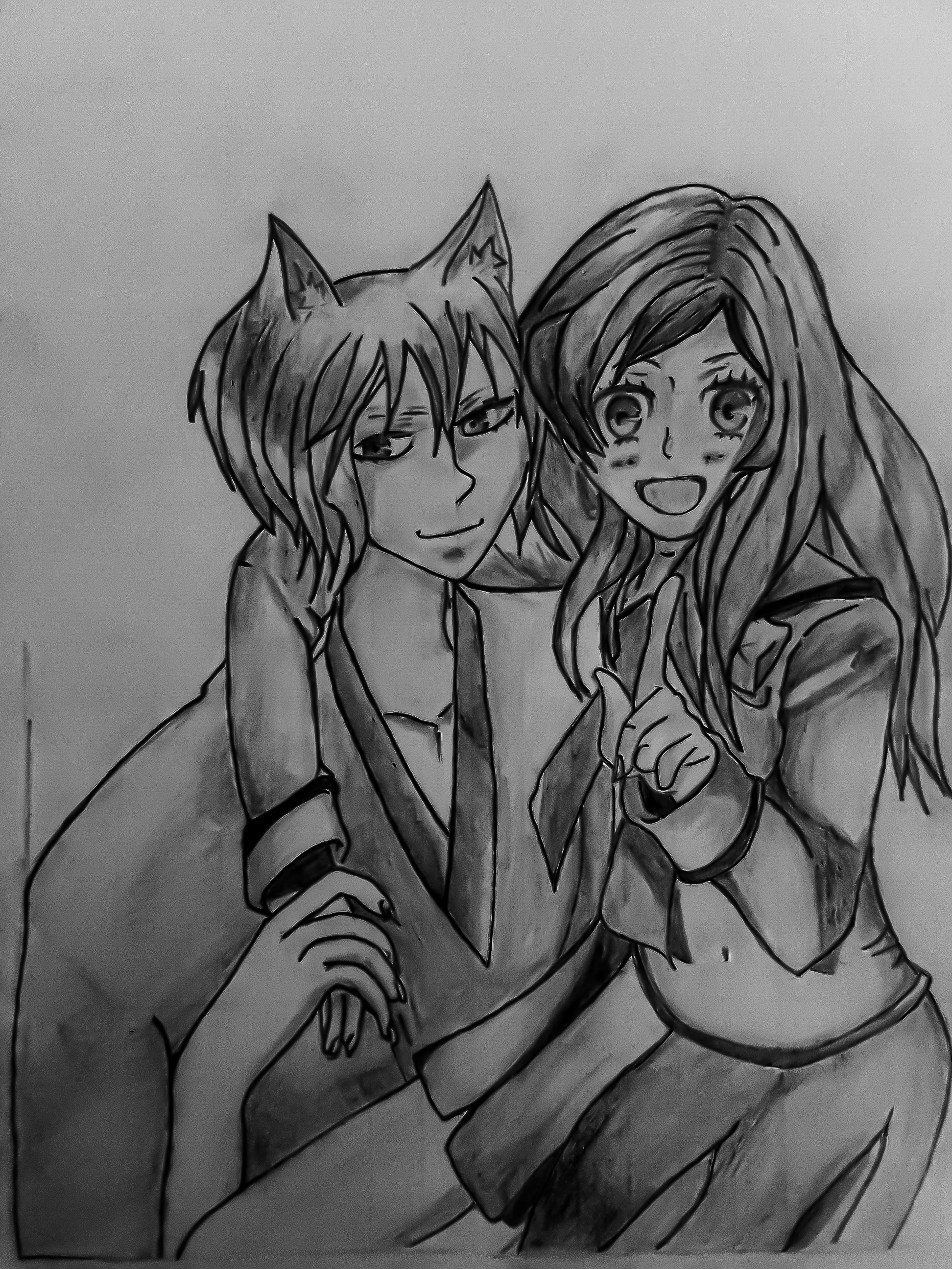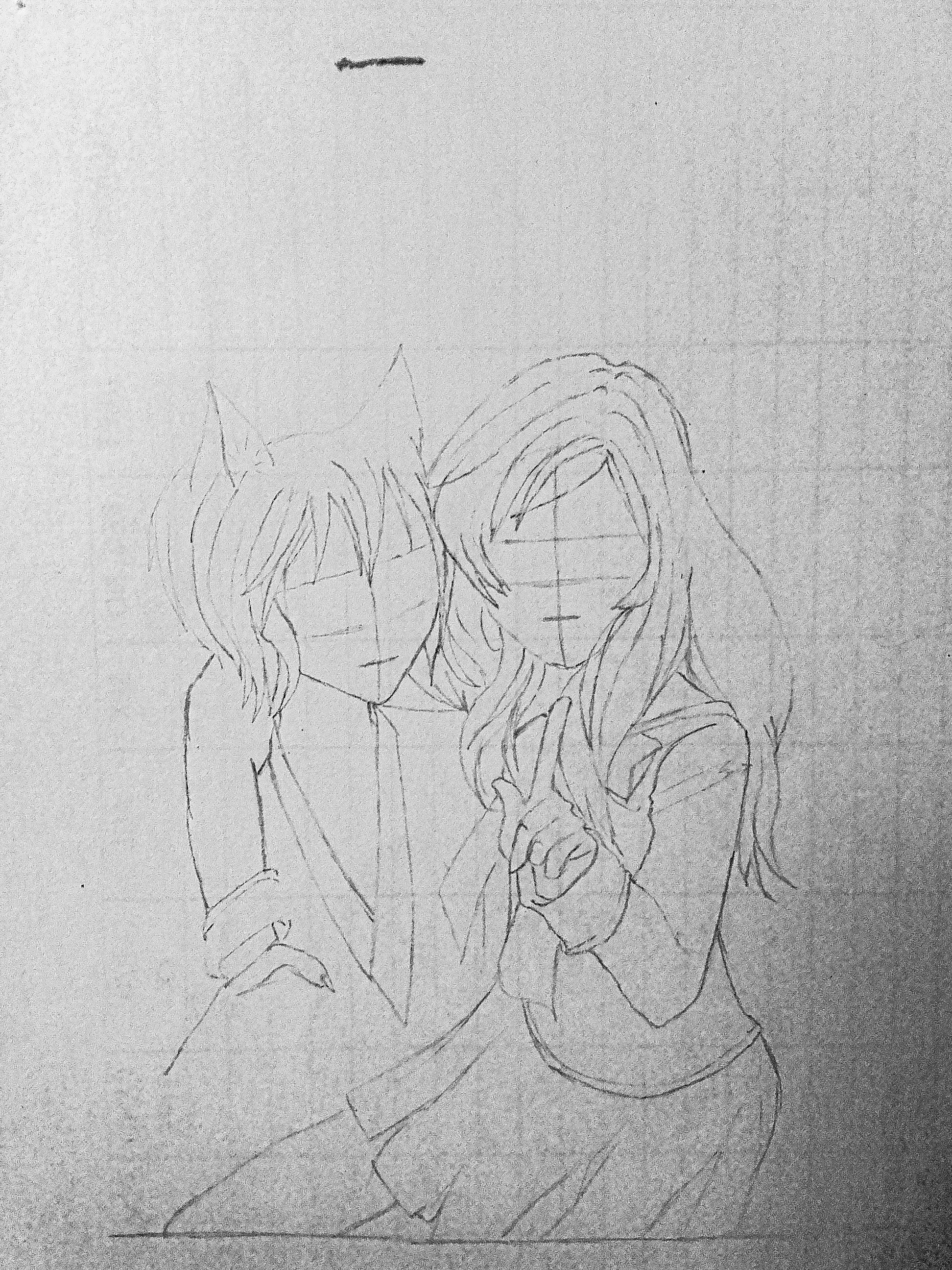 And I decided to create thier eyes. I actually wanted what I was starring at while still drawing to look beautiful and cute. So that was why I sketched out the eyes and detailed it completely before starting to shade the drawing...