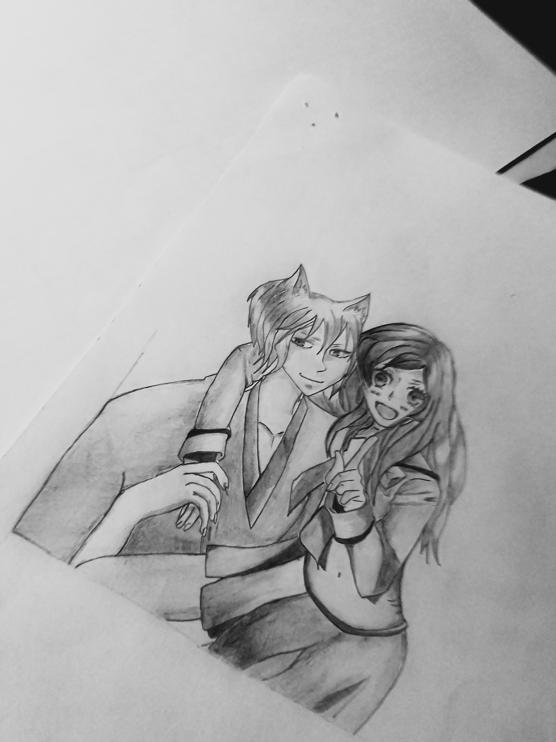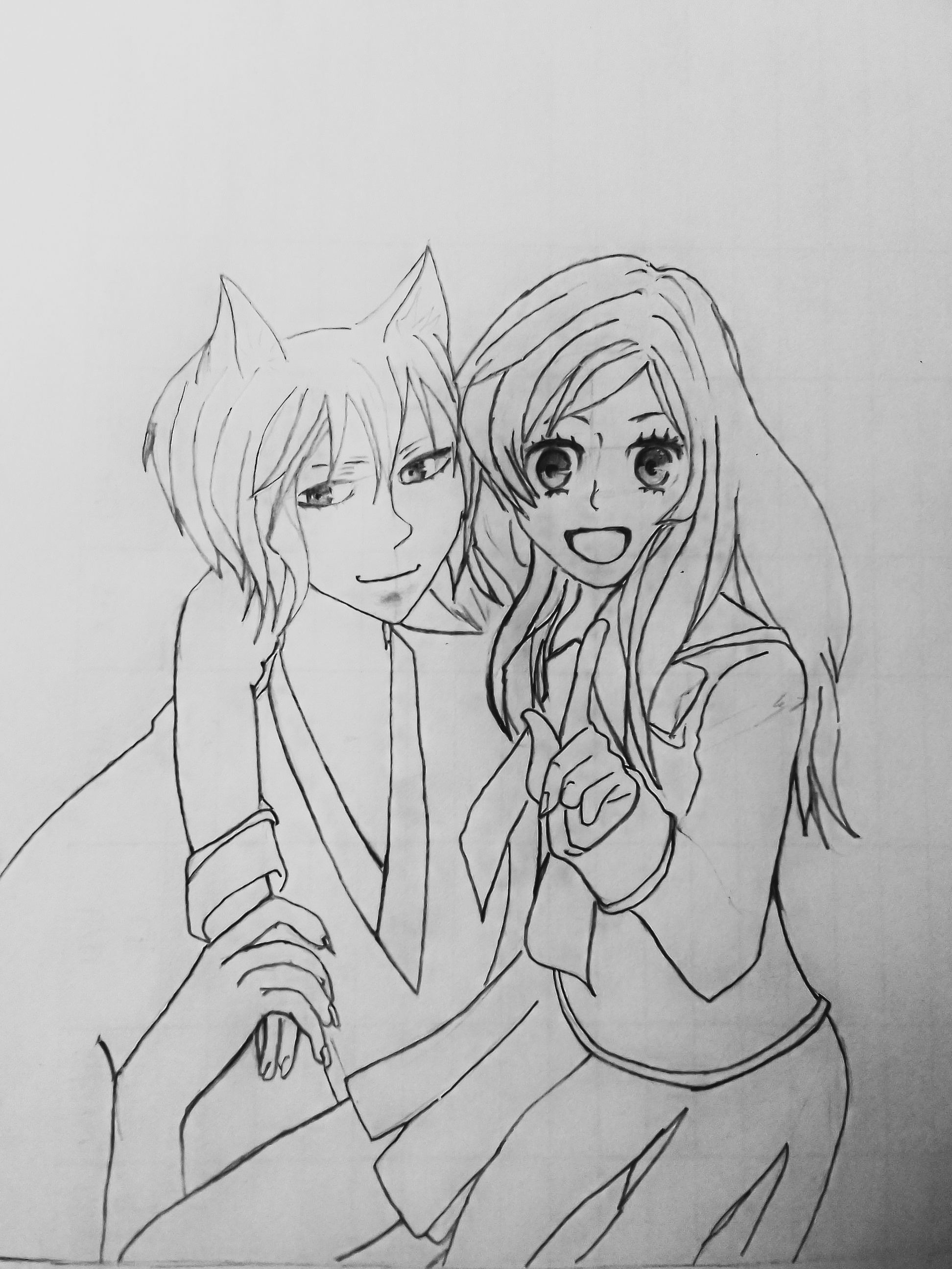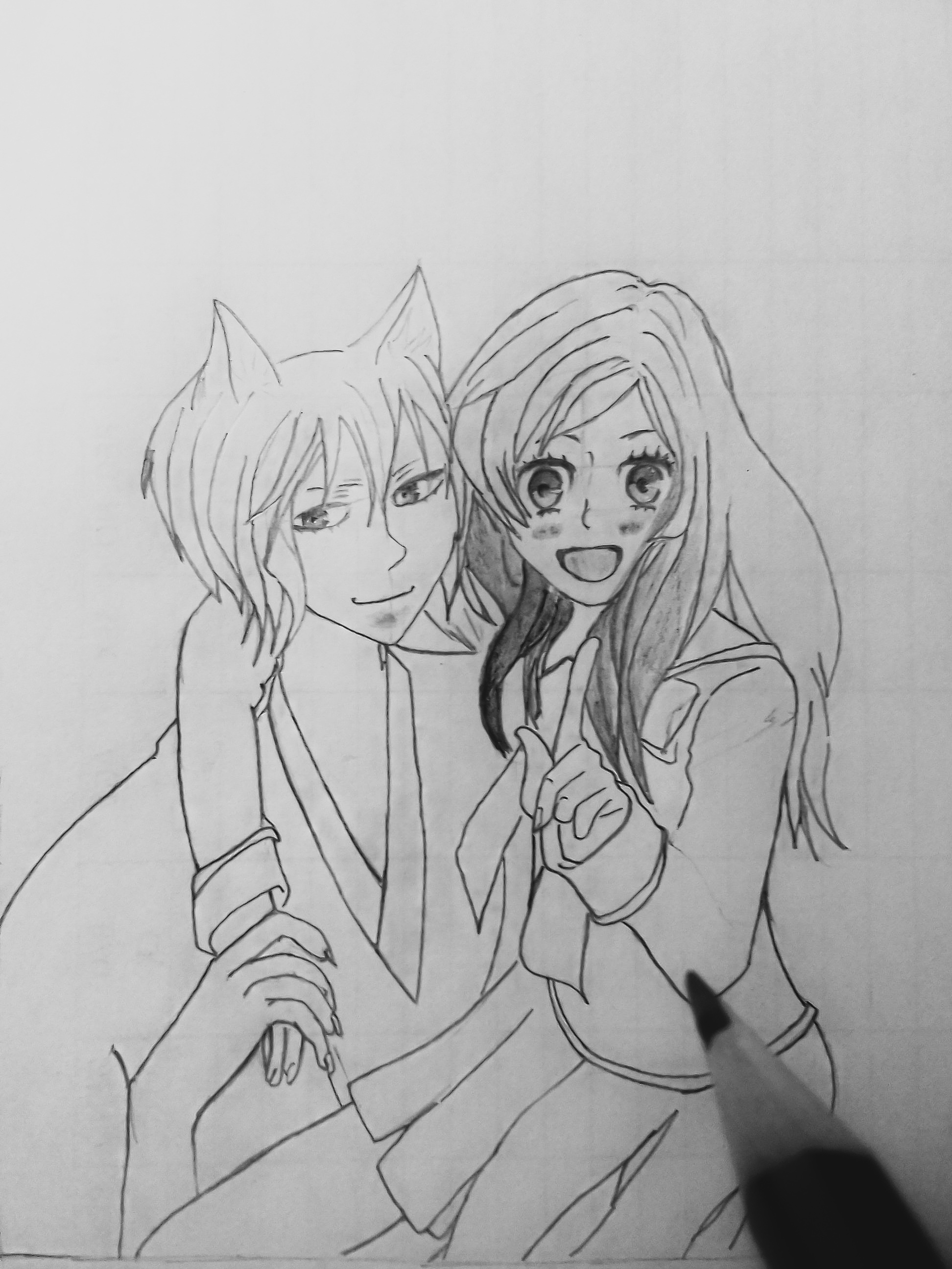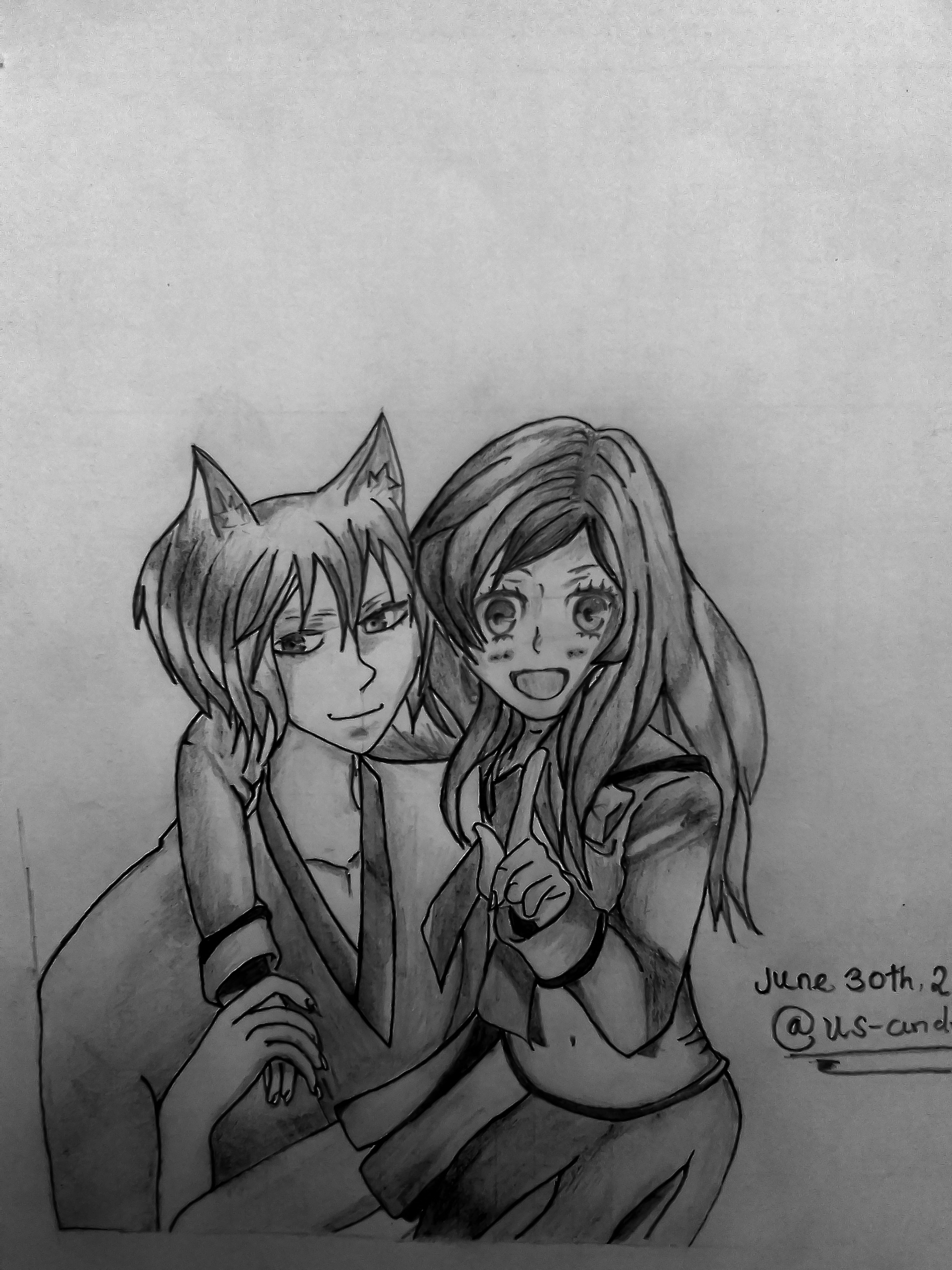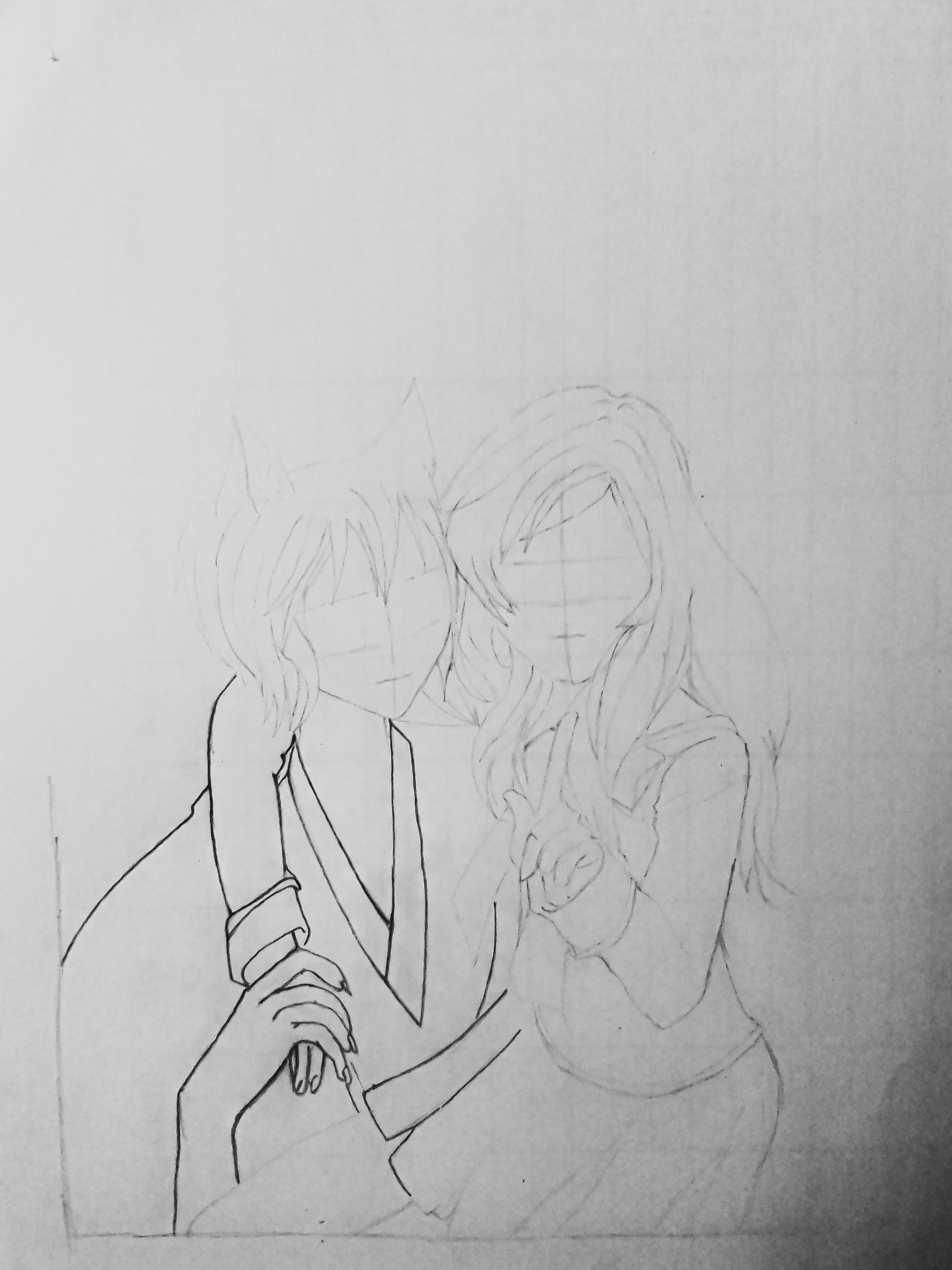 And I decided to create thier eyes. I actually wanted what I was starring at while still drawing to look beautiful and cute. So that was why I sketched out the eyes and detailed it completely before starting to shade the drawing...