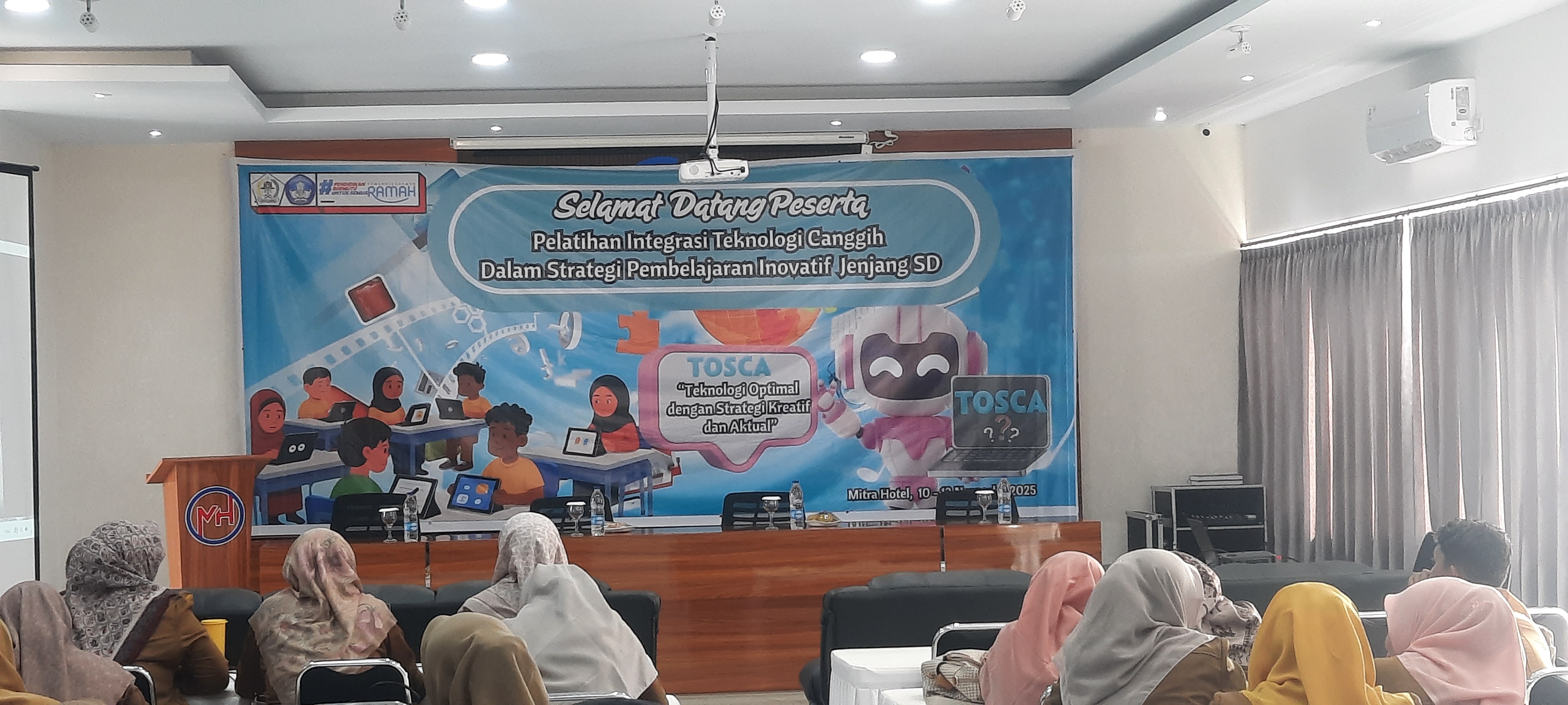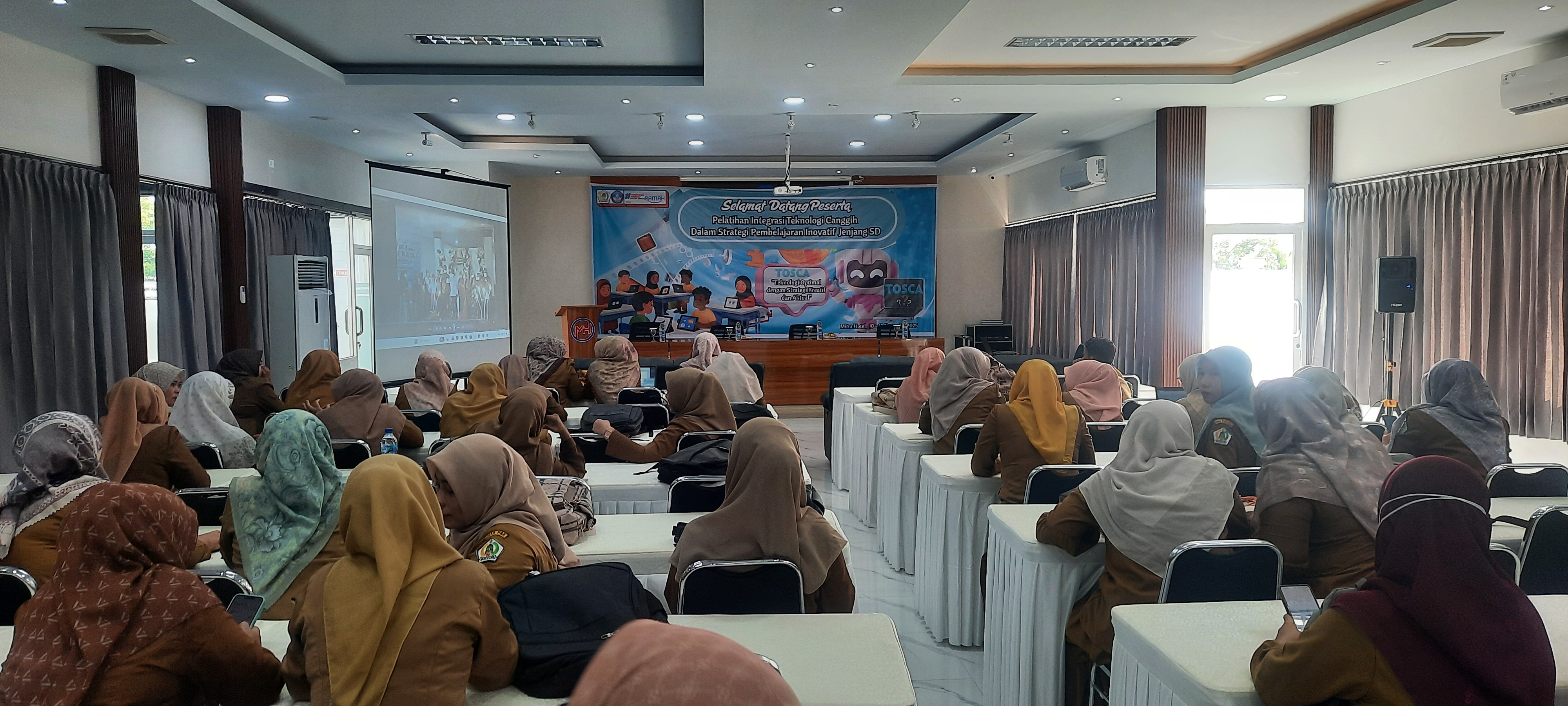 Ketika semakin banyak peserta berdatangan, suasana di sekitar kami mulai hidup. momen ketika para peserta, termasuk saya, menunggu pembukaan acara pelatihan. kami sudah berada di ruangan yang disiapkan panitia, duduk rapi sambil menunggu acara resmi dimulai. wajah para peserta tampak antusias dan penuh harap. saya merasa bahwa berada di tengah para pendidik yang memiliki semangat sama seperti saya adalah energi positif yang sangat besar.