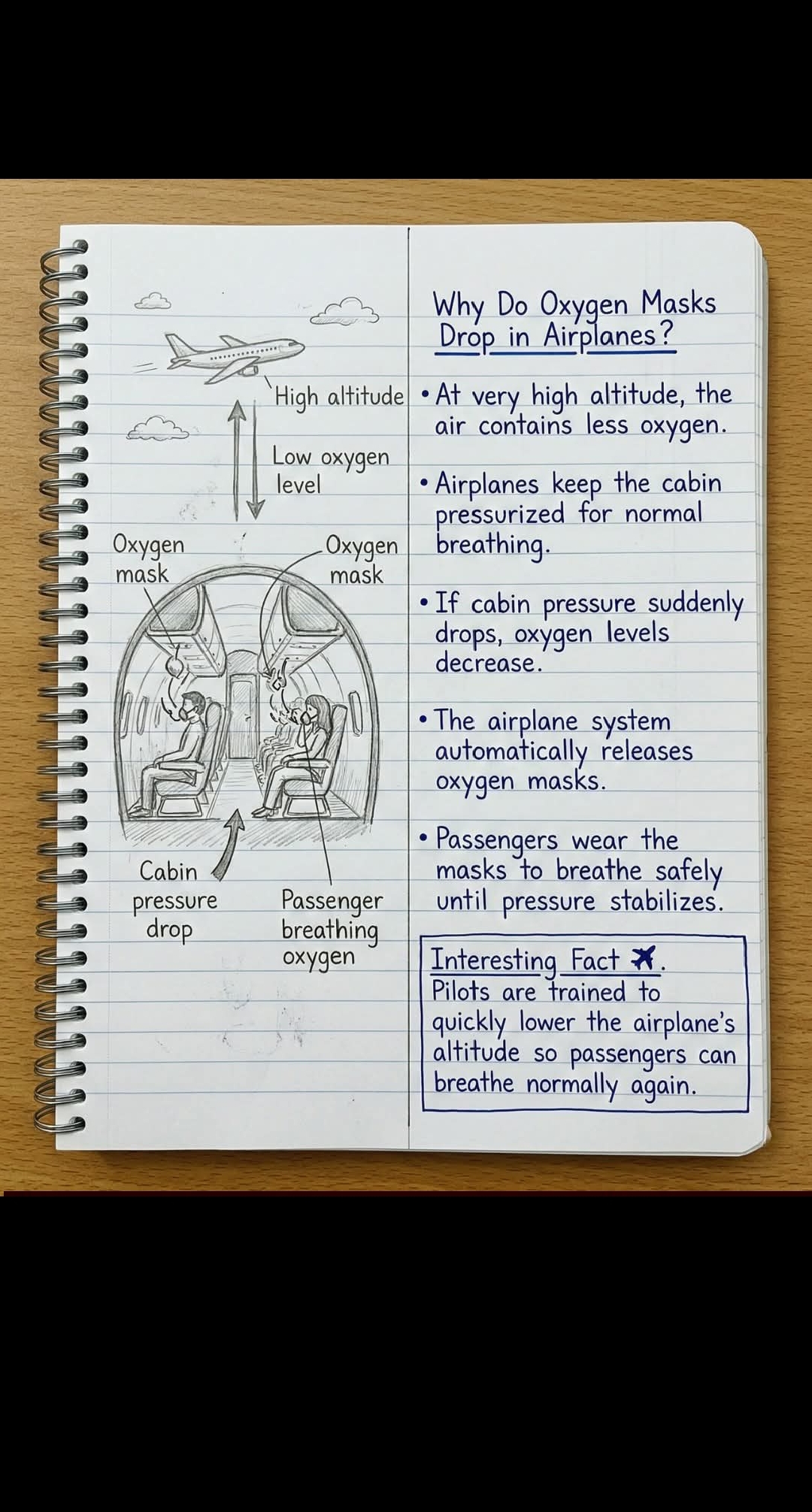 Today I want to talk about something many of us have seen during flights or at least in safety demonstrations. If you have ever traveled by airplane, you probably noticed the instruction that oxygen masks may drop from above your seat in an emergency. Many people wonder why this happens and what the real reason behind it is. Let’s understand this in a simple way.
