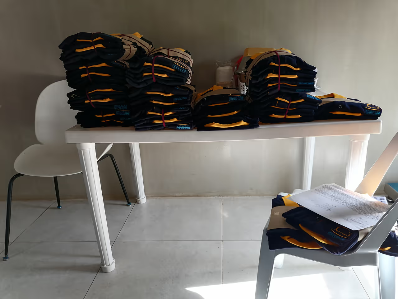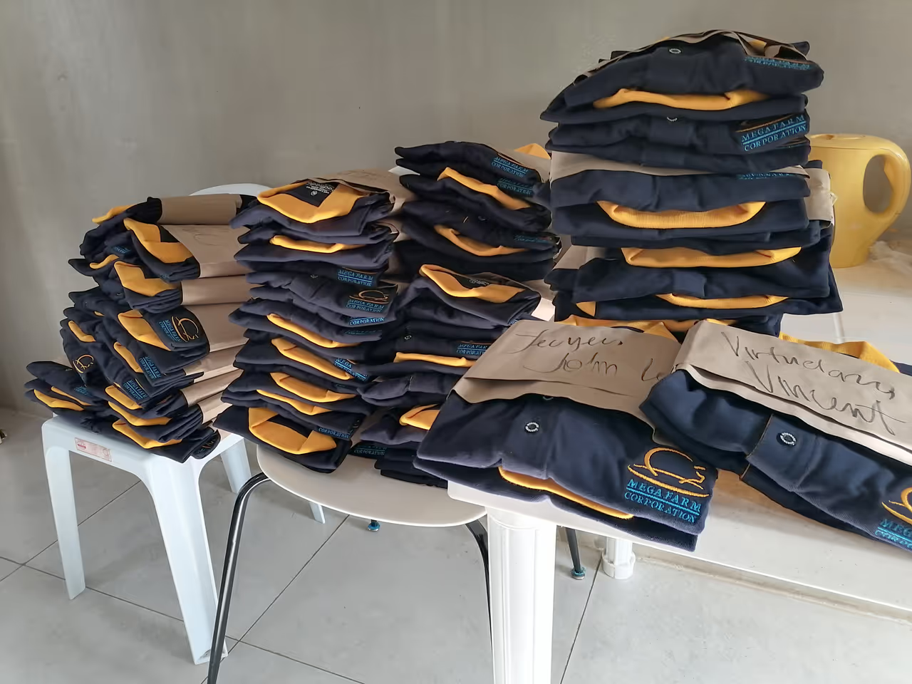 Piles of the uniforms I had to sort and label to that the release will be much easier.