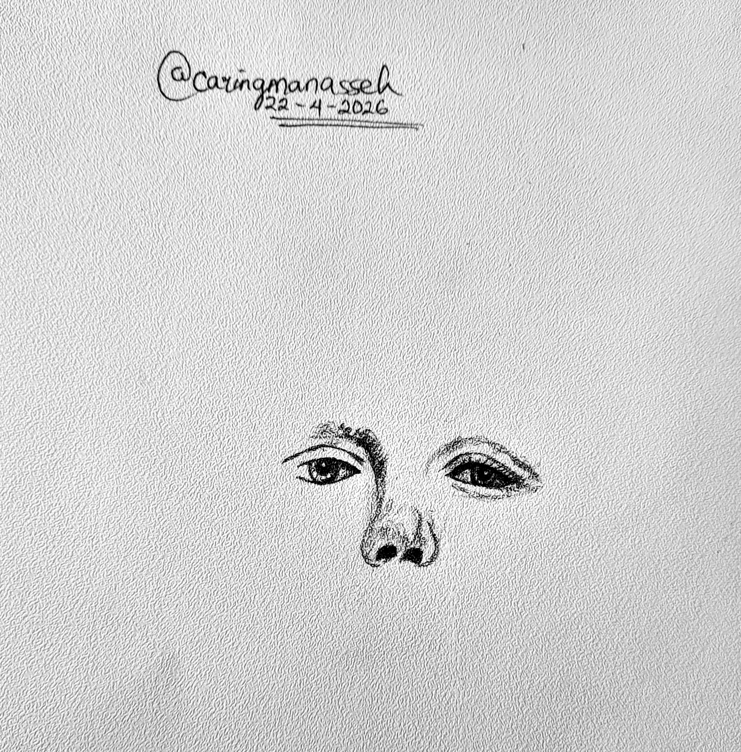 I drew the right eye and the nose. I then shaded the black eyelid and the nostril.