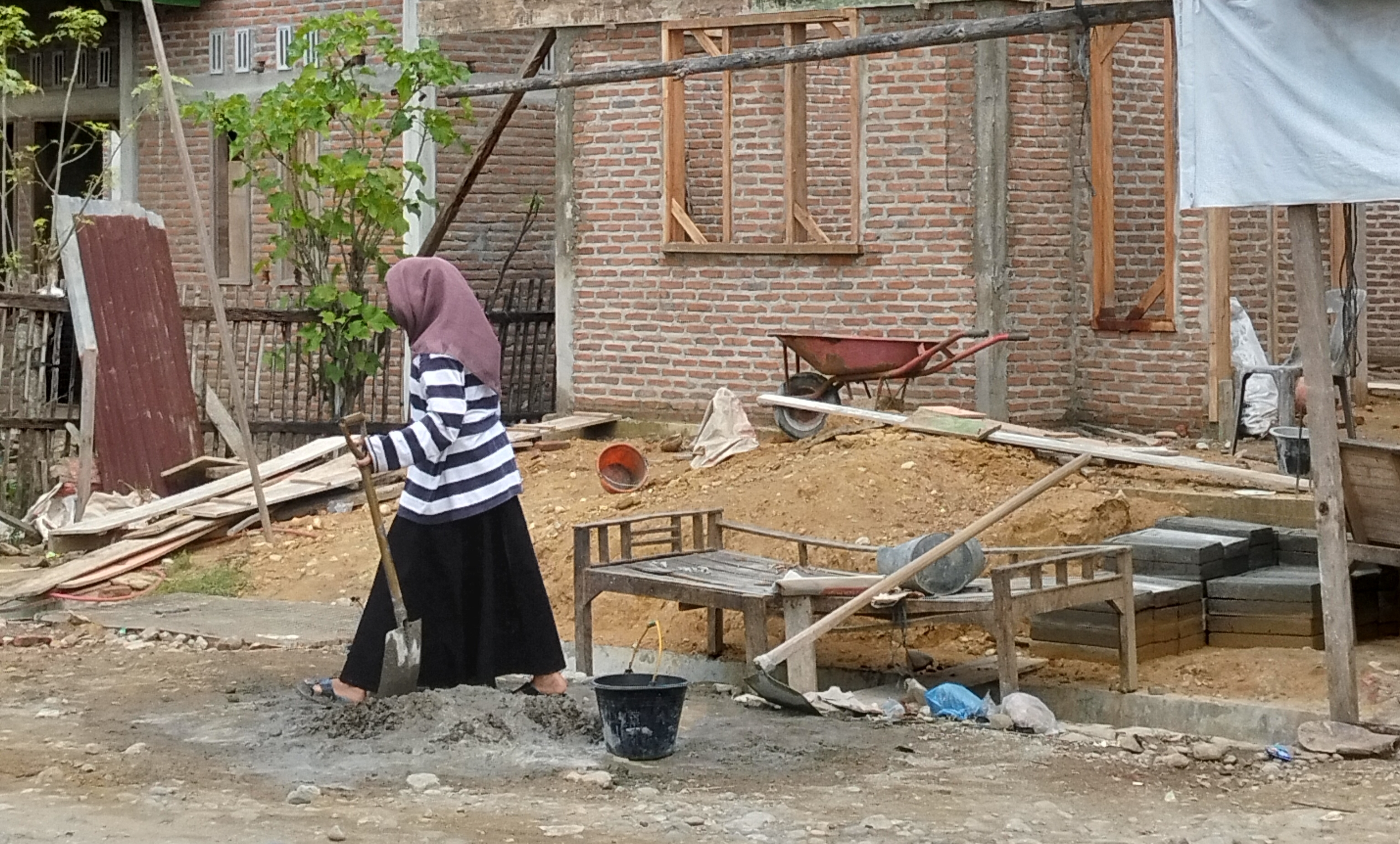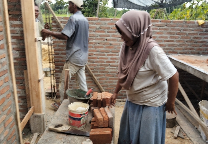 Kecil untuk saling membantu atau bahu membahu membangun rumah nya suami dan istri dan satu anak gadis yang masih pelajar membantu ibu dan ayah dalam membangun rumah mereka