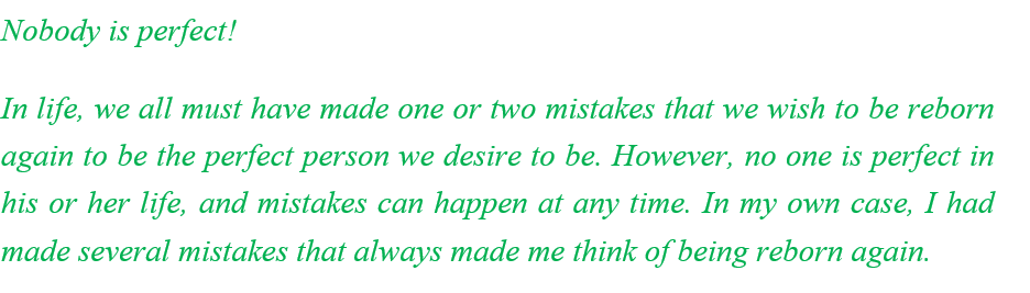 In the case of example 1: The background is; "If I were given a chance to be reborn...".