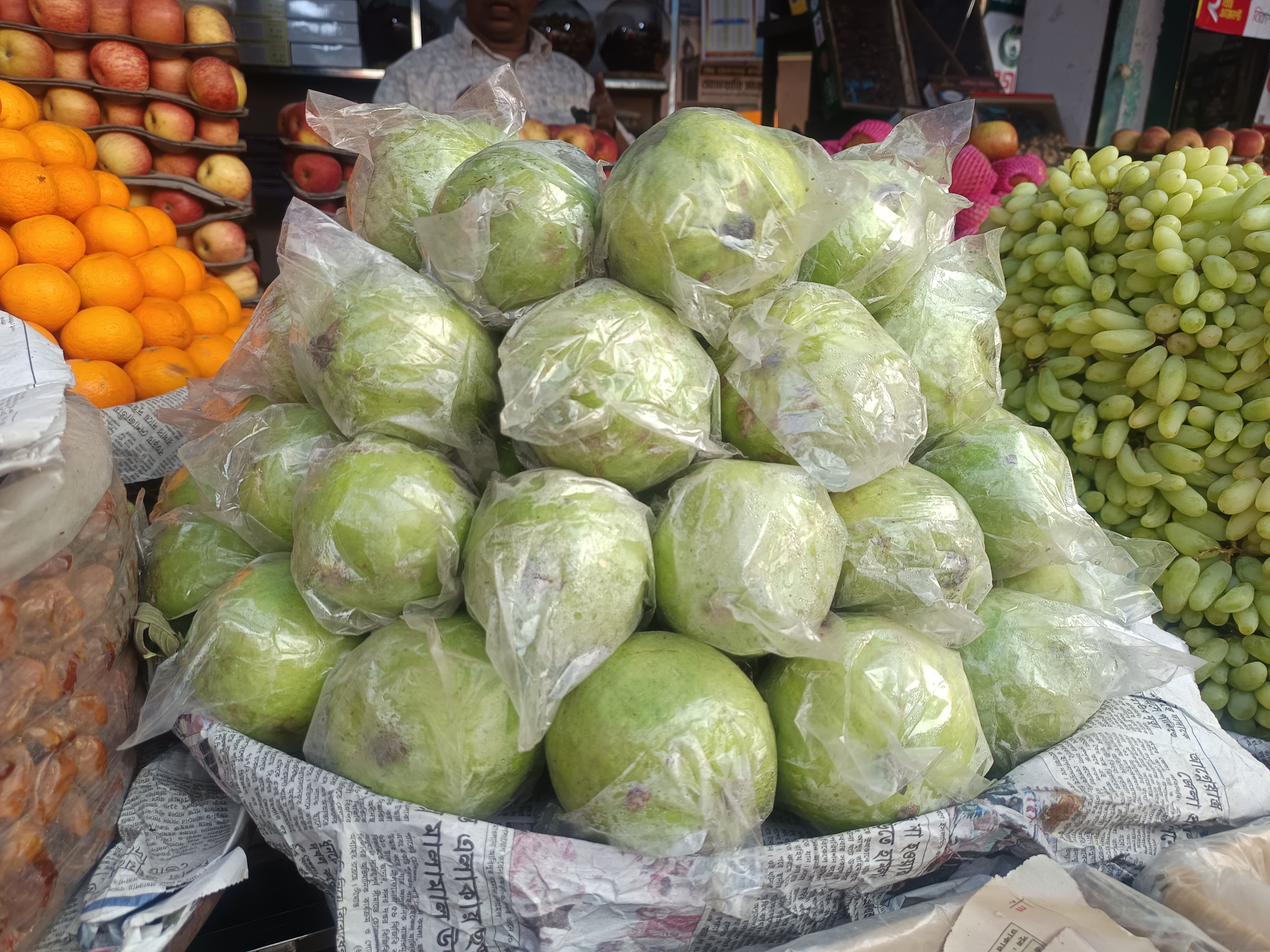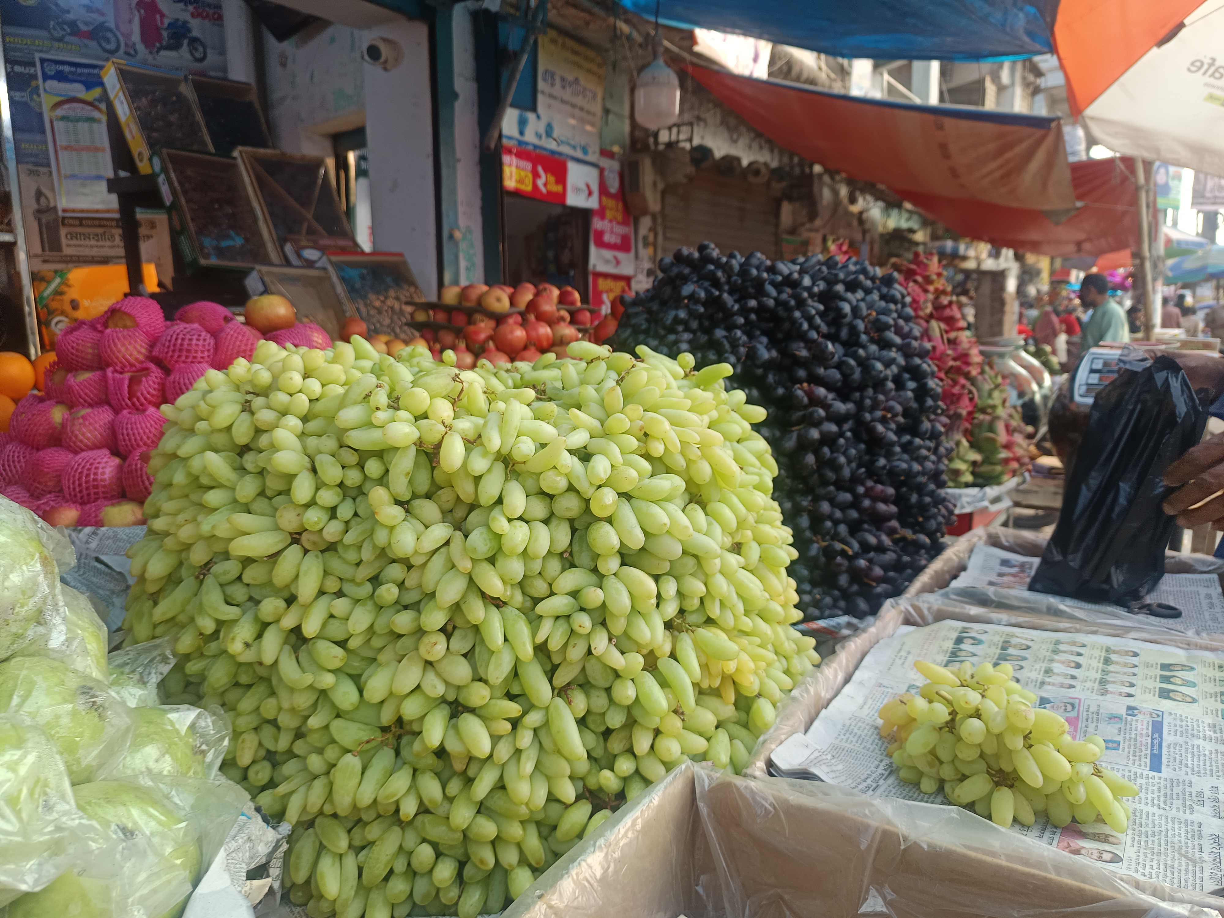 Here we can see two types of grapes. Pineapple, guava, apple, cashew, almond, all the types of fruits we eat. All these are there, but the prices of all these things are different. These fruits are arranged very beautifully in every place, but they are arranged separately. So that when customers come, they will like them, and then it will be very convenient to give those fruits to those customers. So that there is no problem in giving them to the customers, which is why it will be very good, good and bad, all kinds of fruits are kept by Allah so that there is no problem.