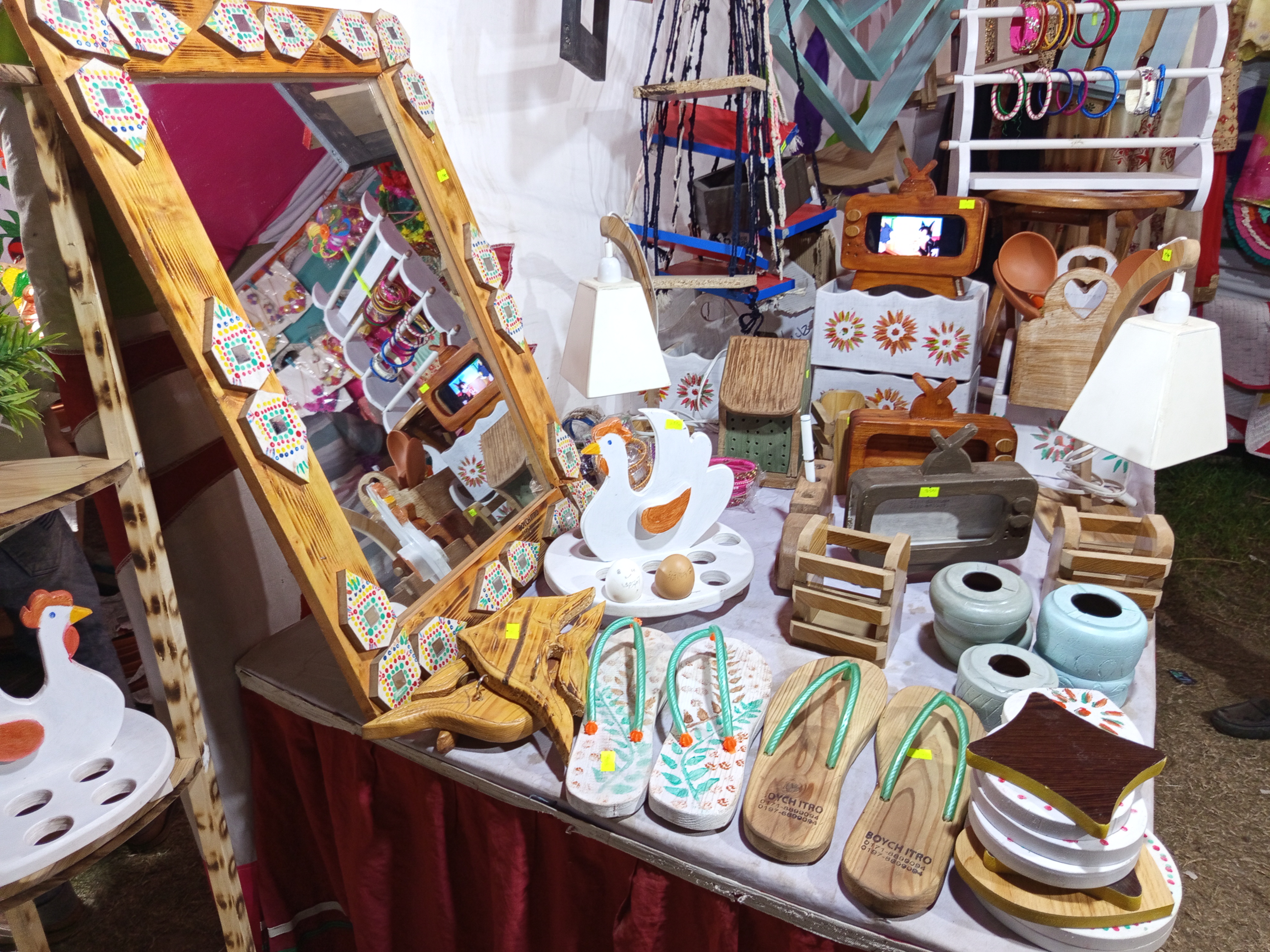 Wood Attraction has a shop selling these products, wooden toys, TV mobile boxes, wooden roosters, wooden love shapes, wooden fish, wooden shoes, etc. Everything here is made of wood. The beauty of these shoes and other items made of wood is very unique. Here, wooden shoes with unique designs, wooden vases, and wooden fish are all made in a unique way. It has been named "Wood Attraction" to increase people's attraction to products made from wood. It really attracts buyers a lot. As a small and cottage industry, its attractive beauty will attract any buyer.