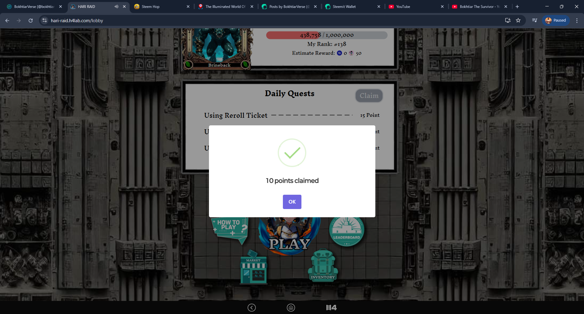 Then I scroll down and collect ten points from my daily quests.