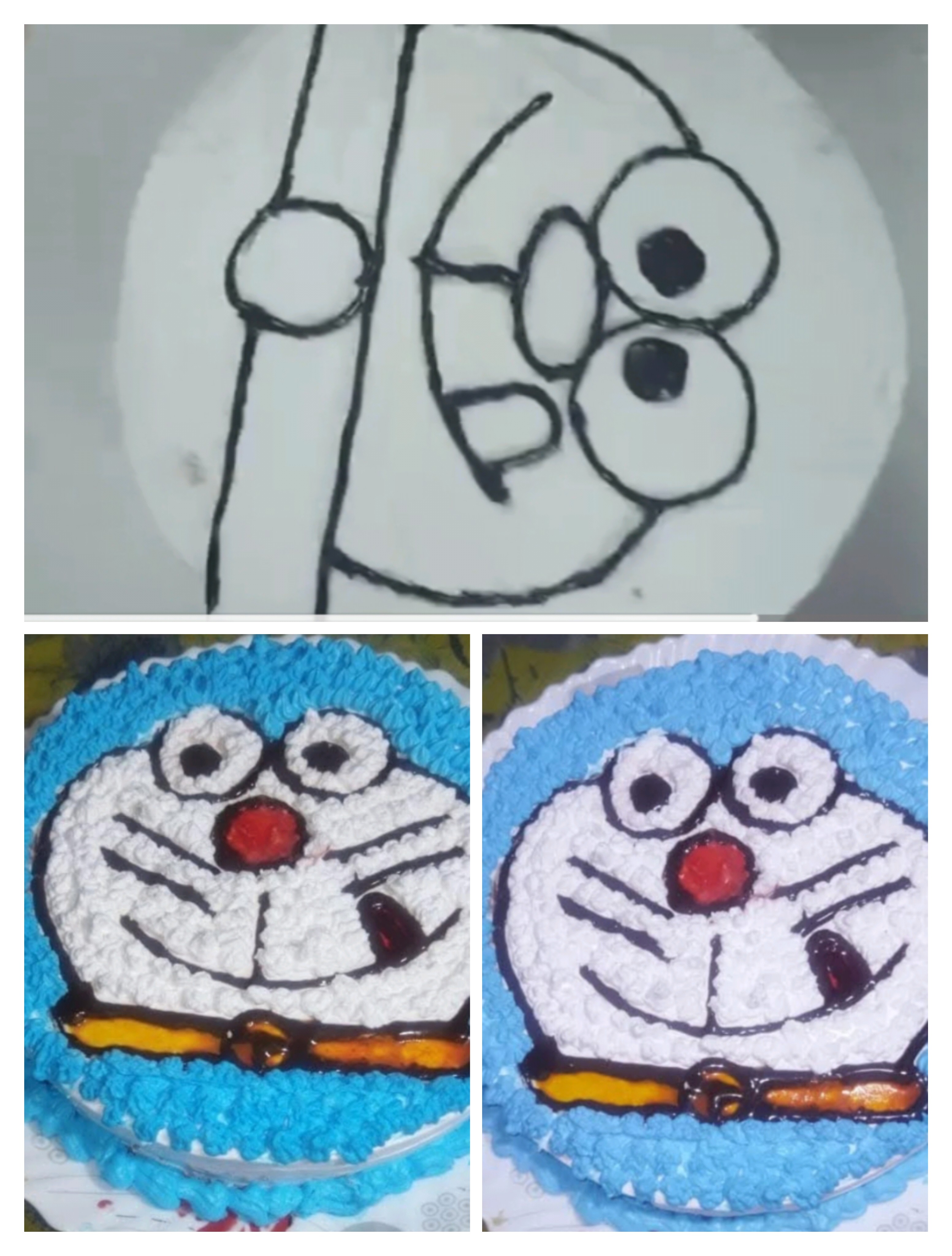 The cake looks so fluppy and you had a very great hand. You are able to make a doremon design.