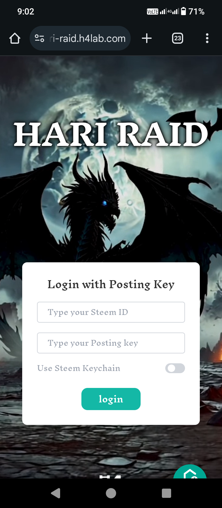 Hari Ride teaches you how to log in to the game. You will need your Steam ID and posting key. In the top block you will need to enter your Steem ID and in the bottom block you will need to enter your posting key.