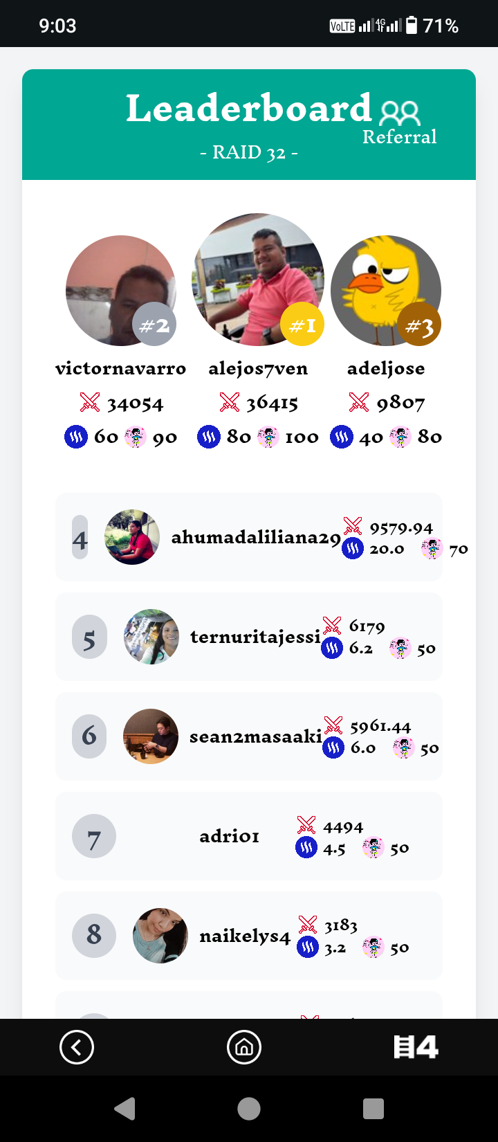 Then you can check your position in the leaderboard to see what number you are at or your rank will be displayed in the ranking. The top four or four will receive Steem rewards based on the number or position they are at.You can also earn points by building a referral team.
