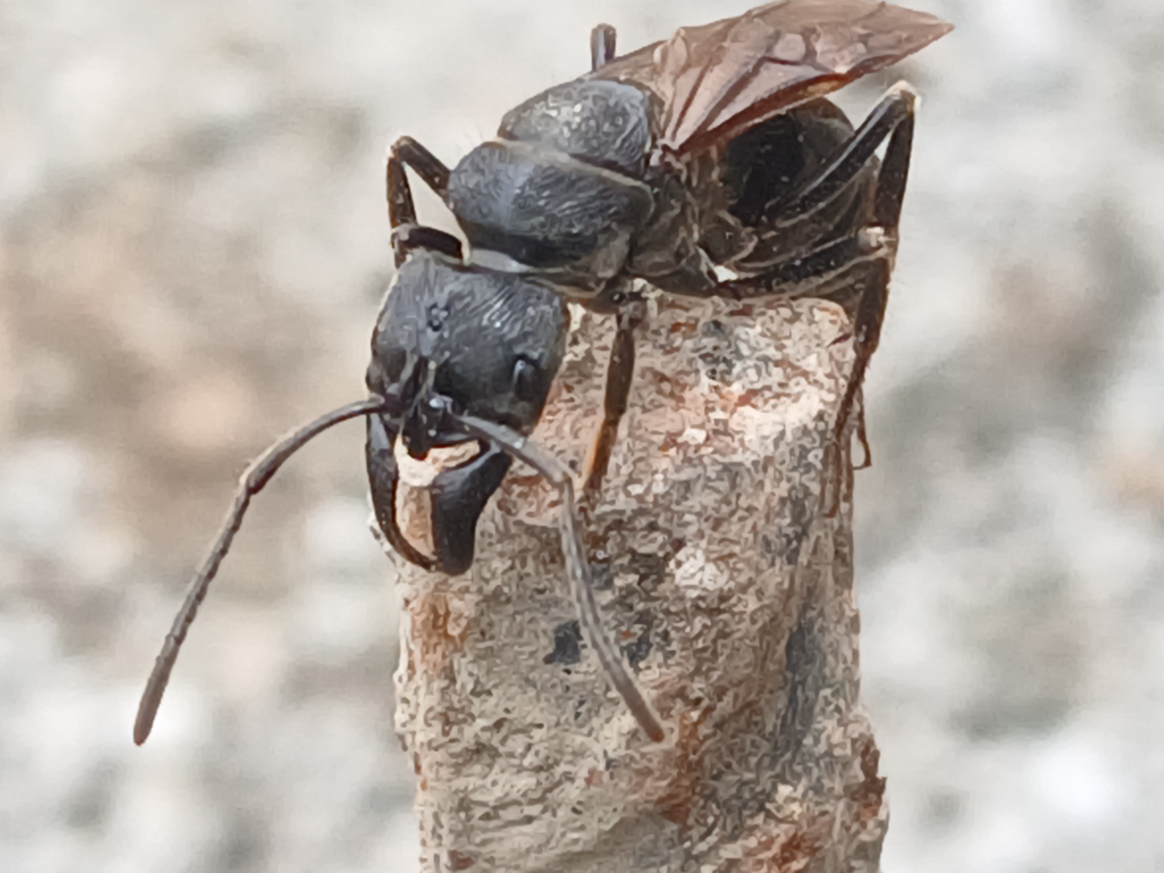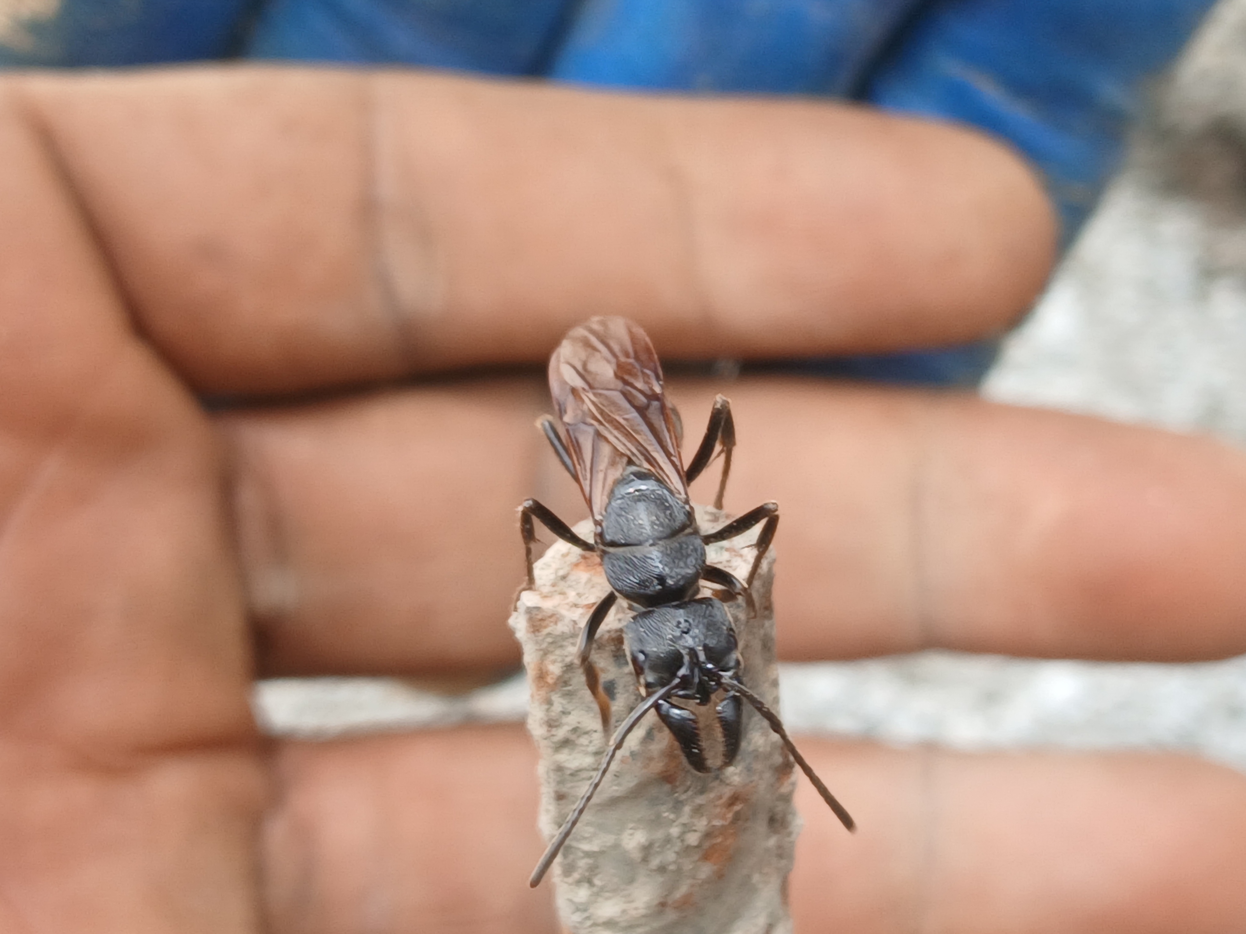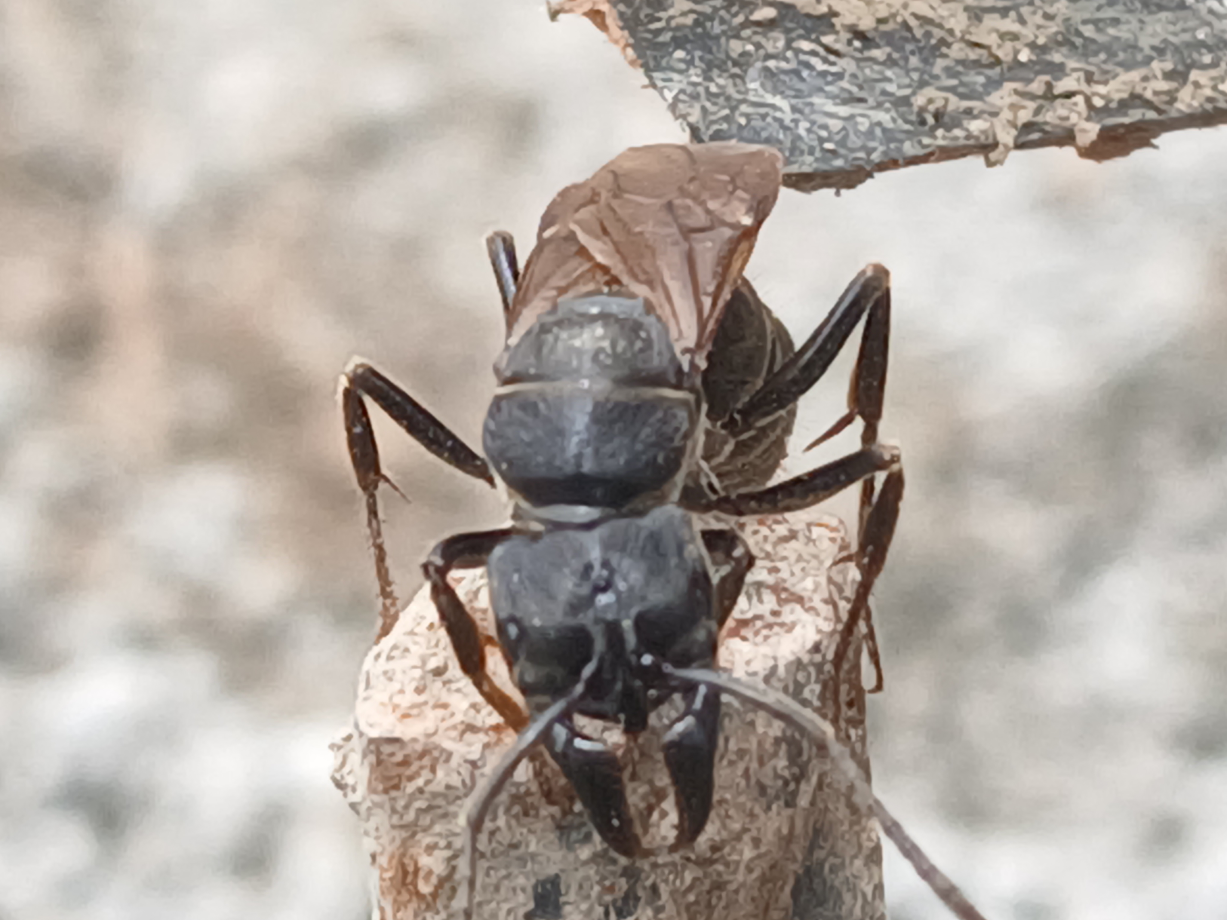 You can see her small eyes with big mandibles like those of a worker. They are likely flushed out by the early rains as we are switching into the rainy season.