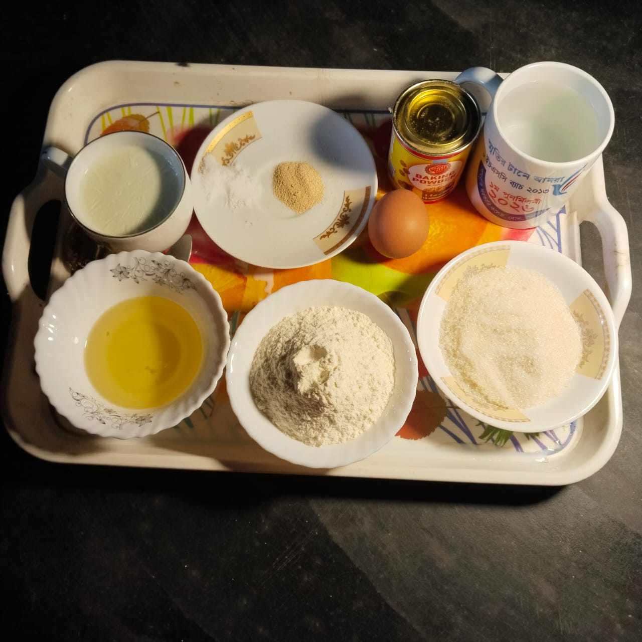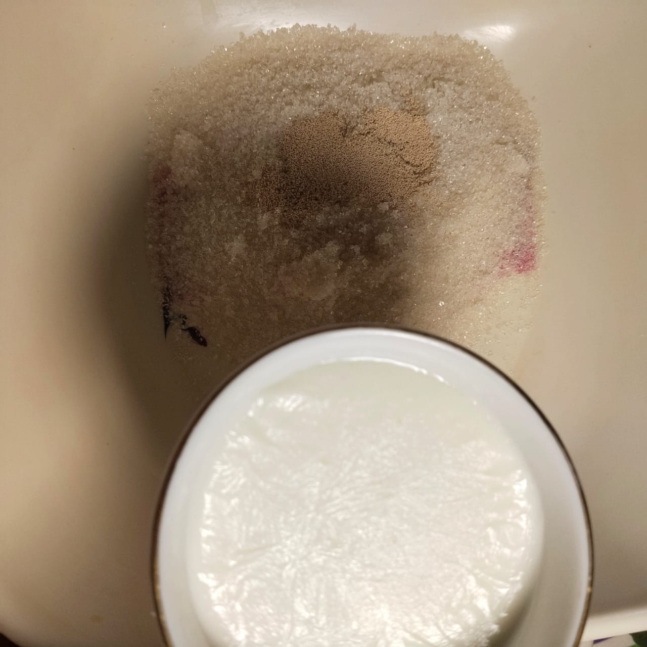 Step-1: First, collect all the ingredients. And use the right amount of ingredients to make it. First, mix the sugar, yeast and warm milk well in a clean bowl. Let it rest for 10 minutes. When it mixes, you will see bubbles in it and the mixture will change. I never imagined that I had kept the yeast in a container for several days.
