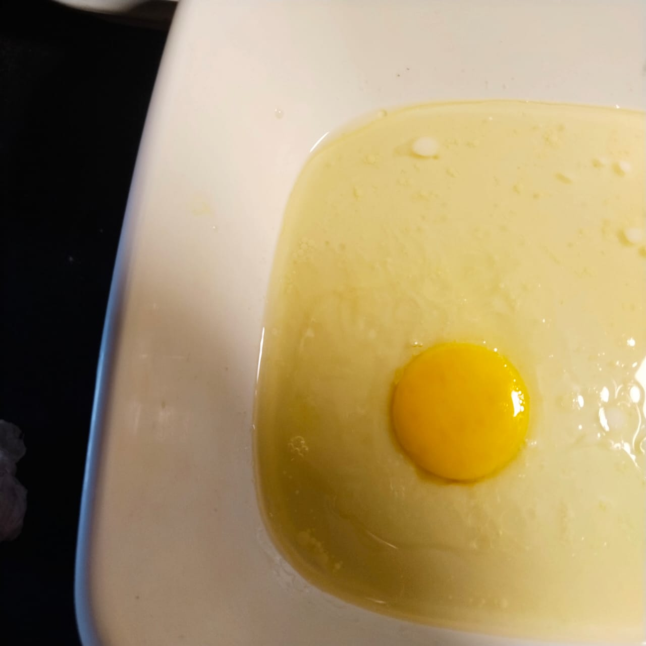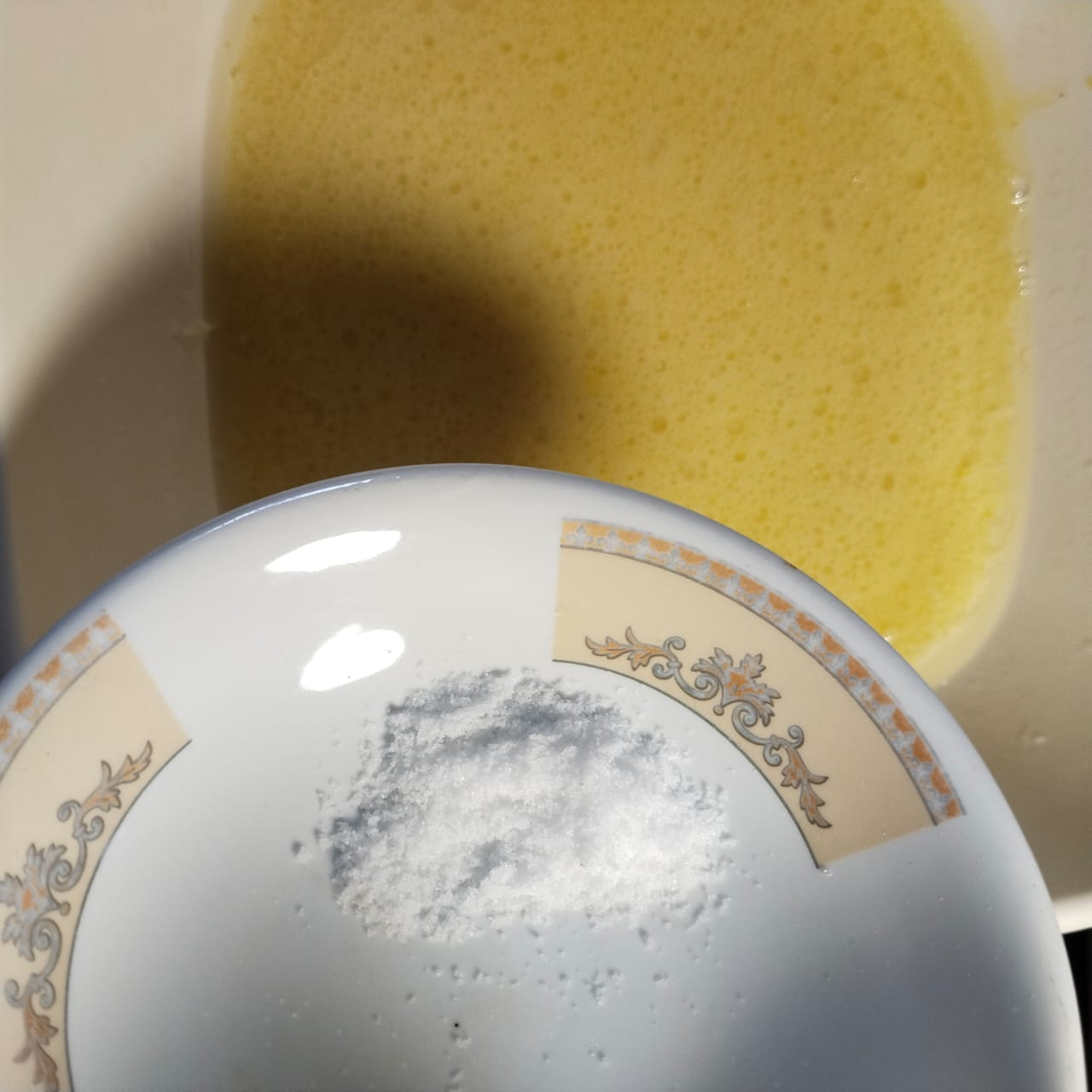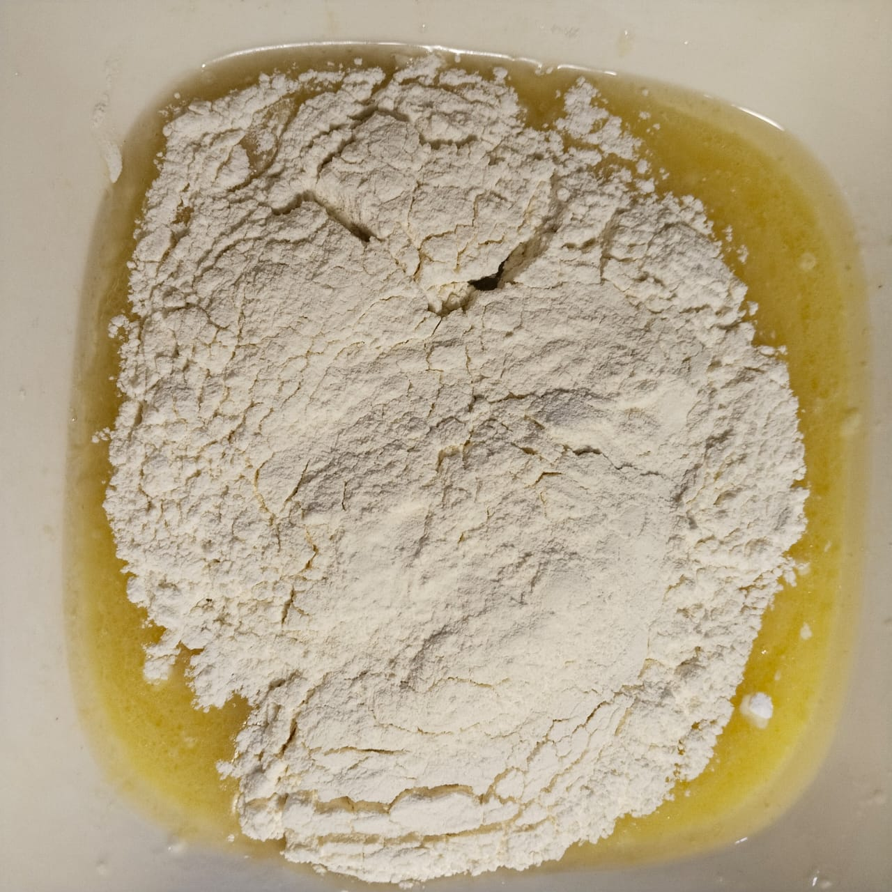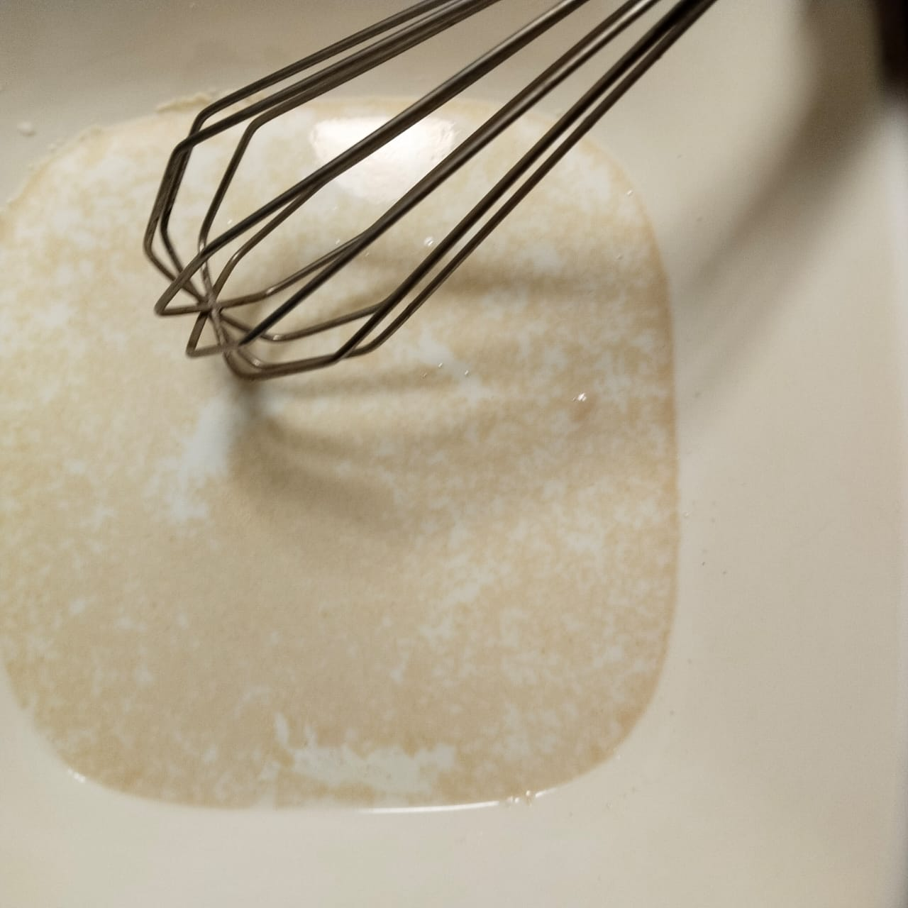 Step-2: After 10 minutes, add oil and egg and beat with a hand whisk for some time. Then add baking powder and salt to it.