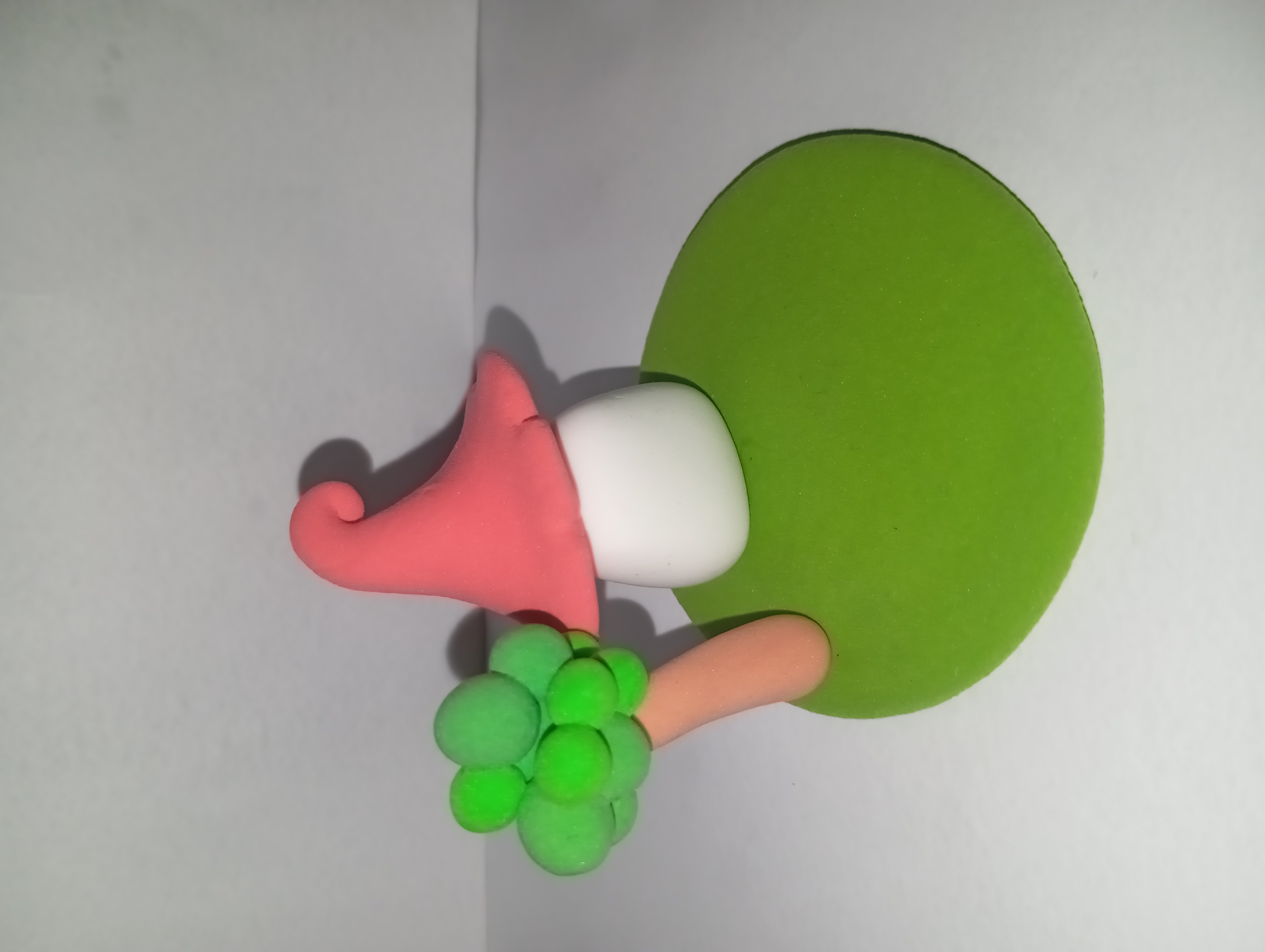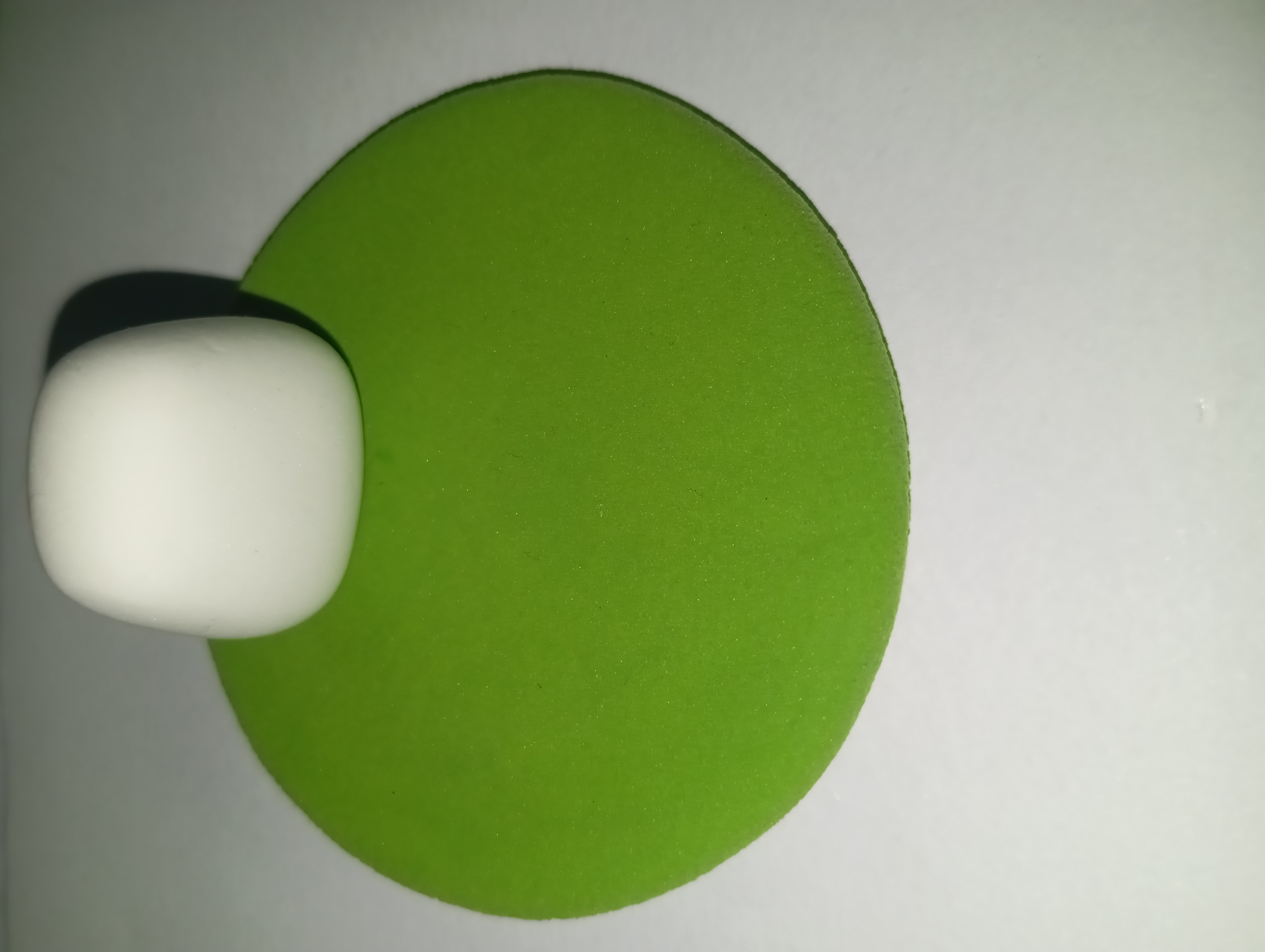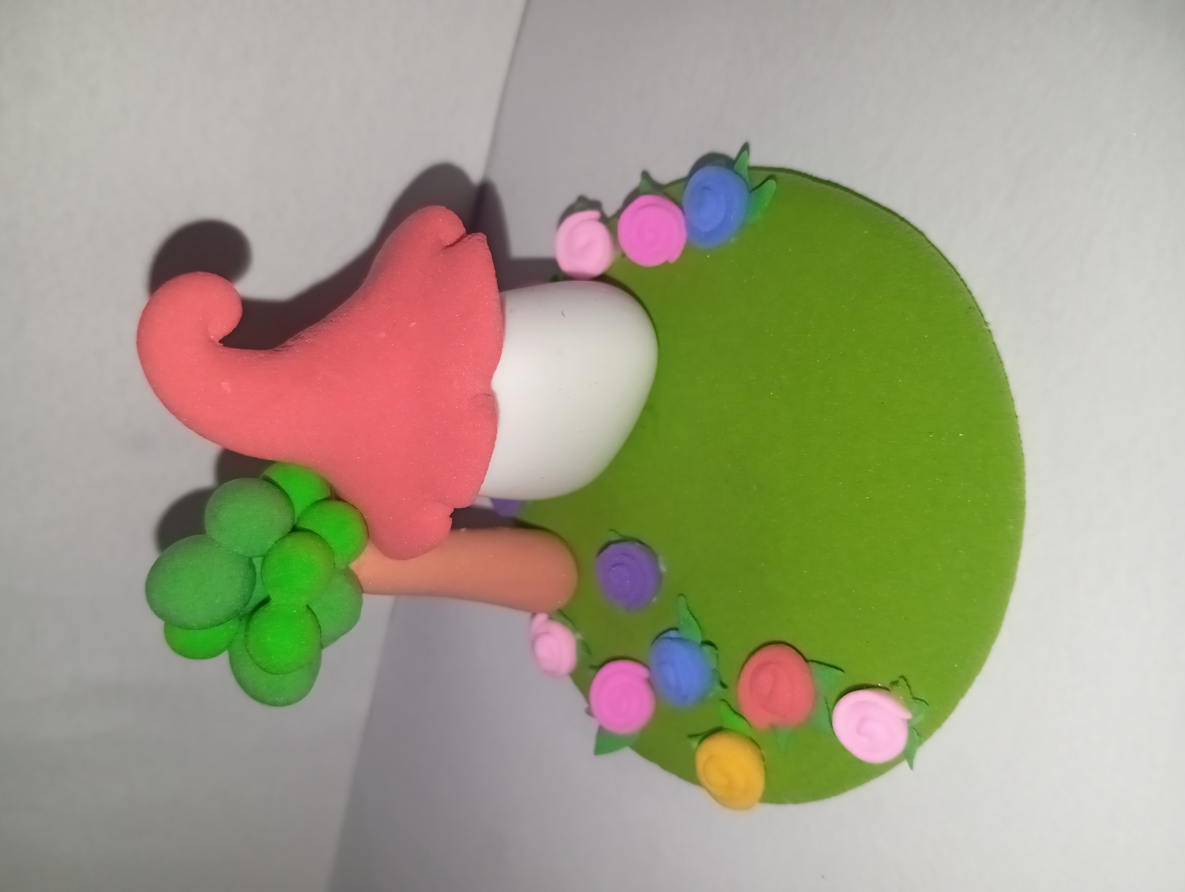 First I made a round base out of green clay to represent the grass. This is the basis of the entire model. Then made a small cylindrical part of white clay which later became the wall of the house.