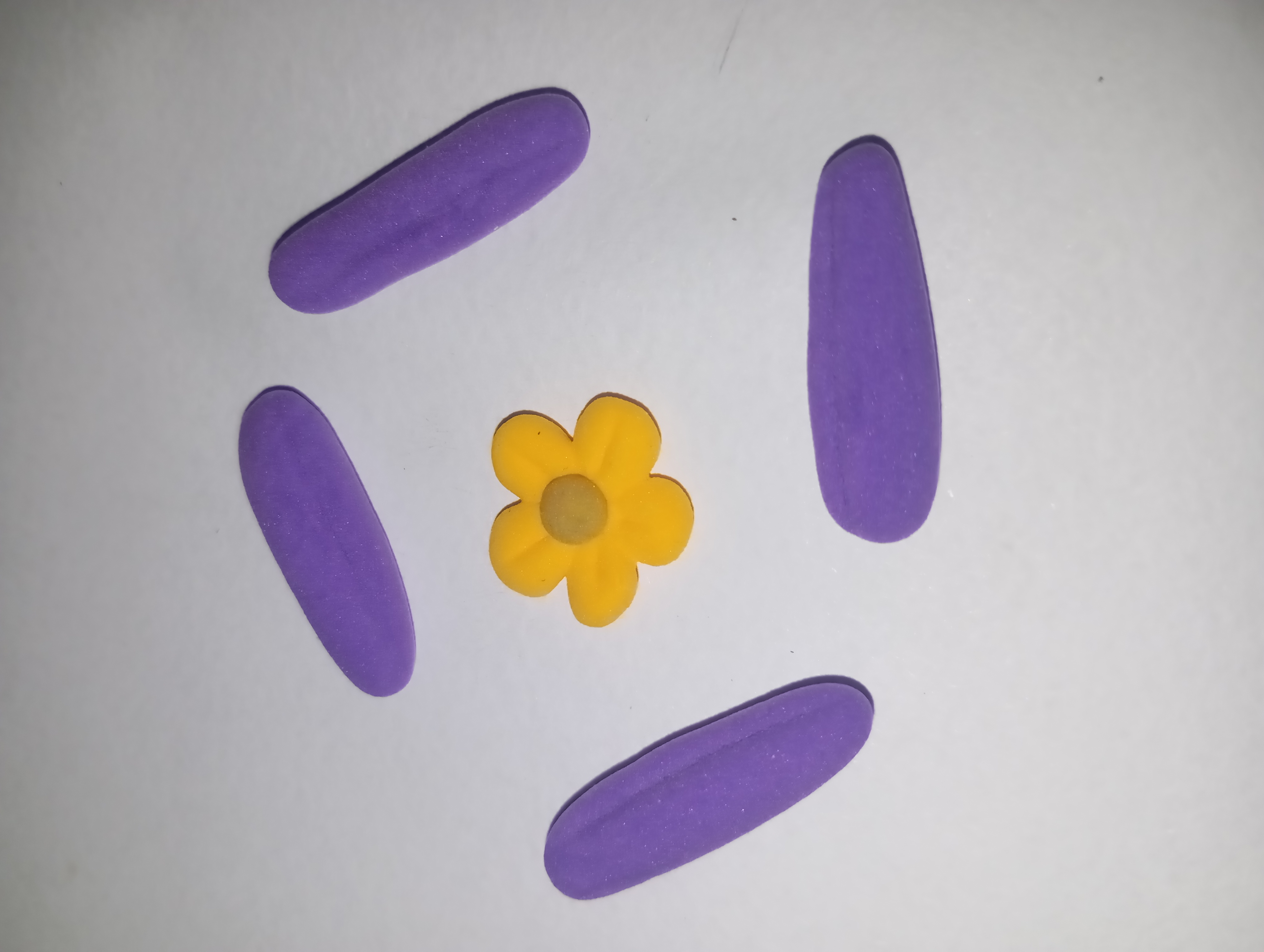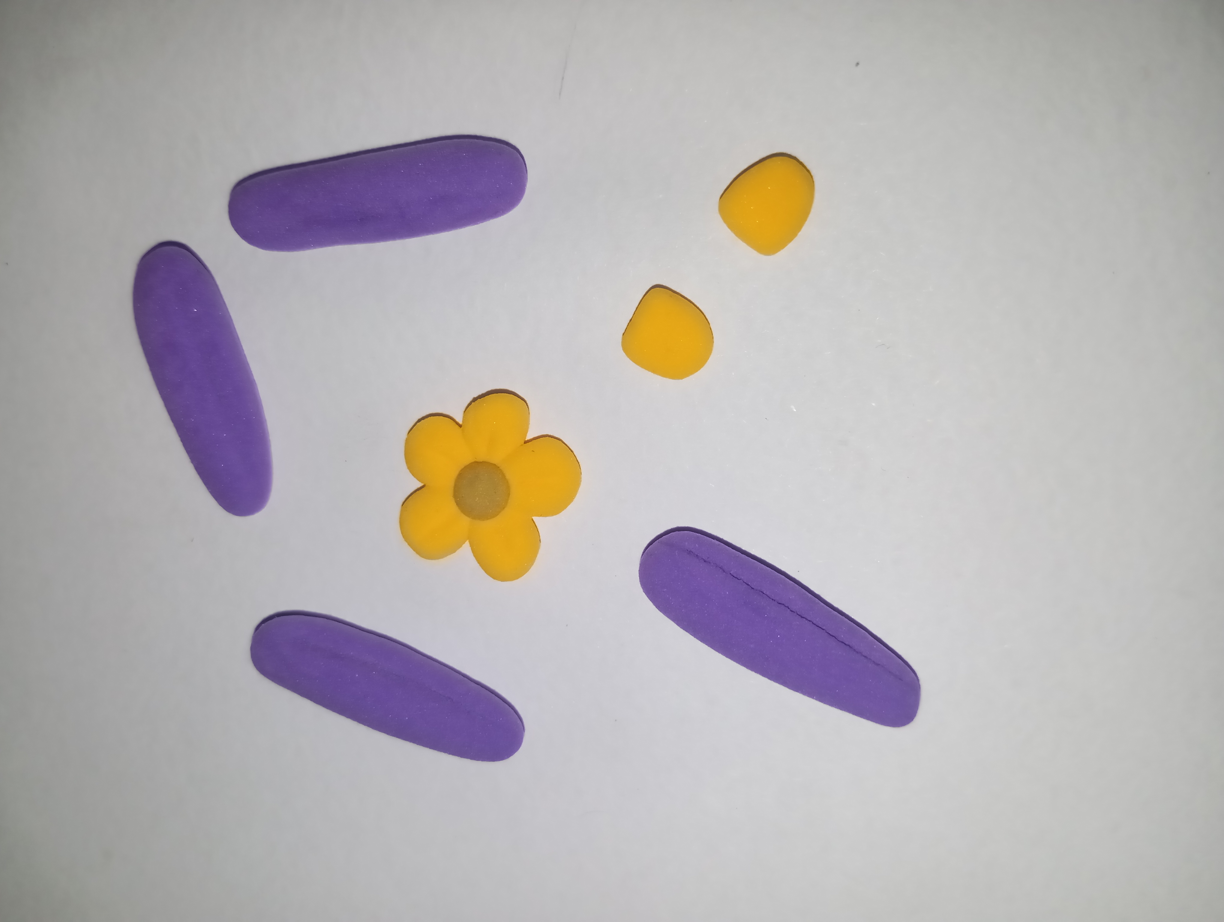 Finally, I created a decorative fan-shaped flower from purple and yellow that was placed on top of the house. This part gives the whole model a fairy tale look.