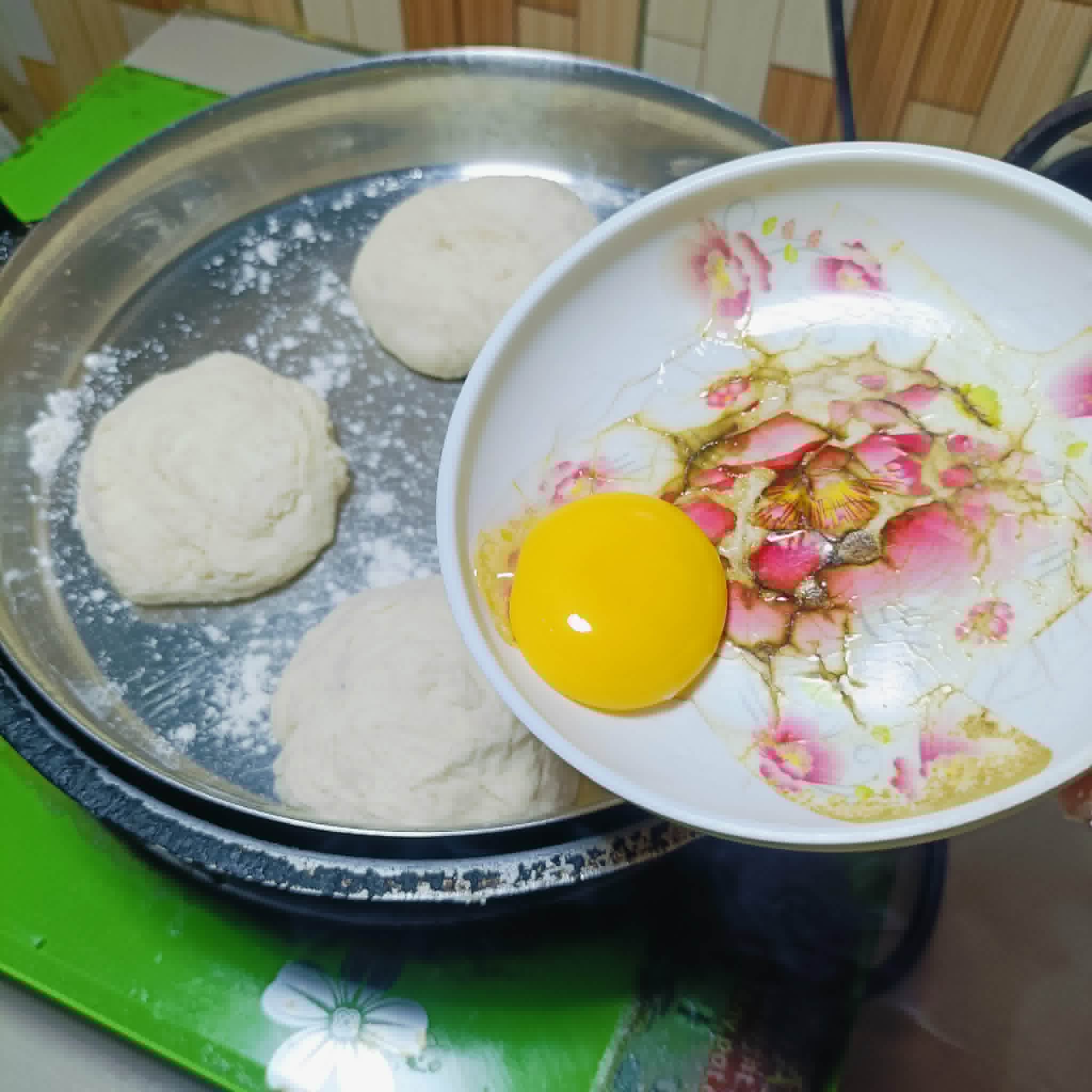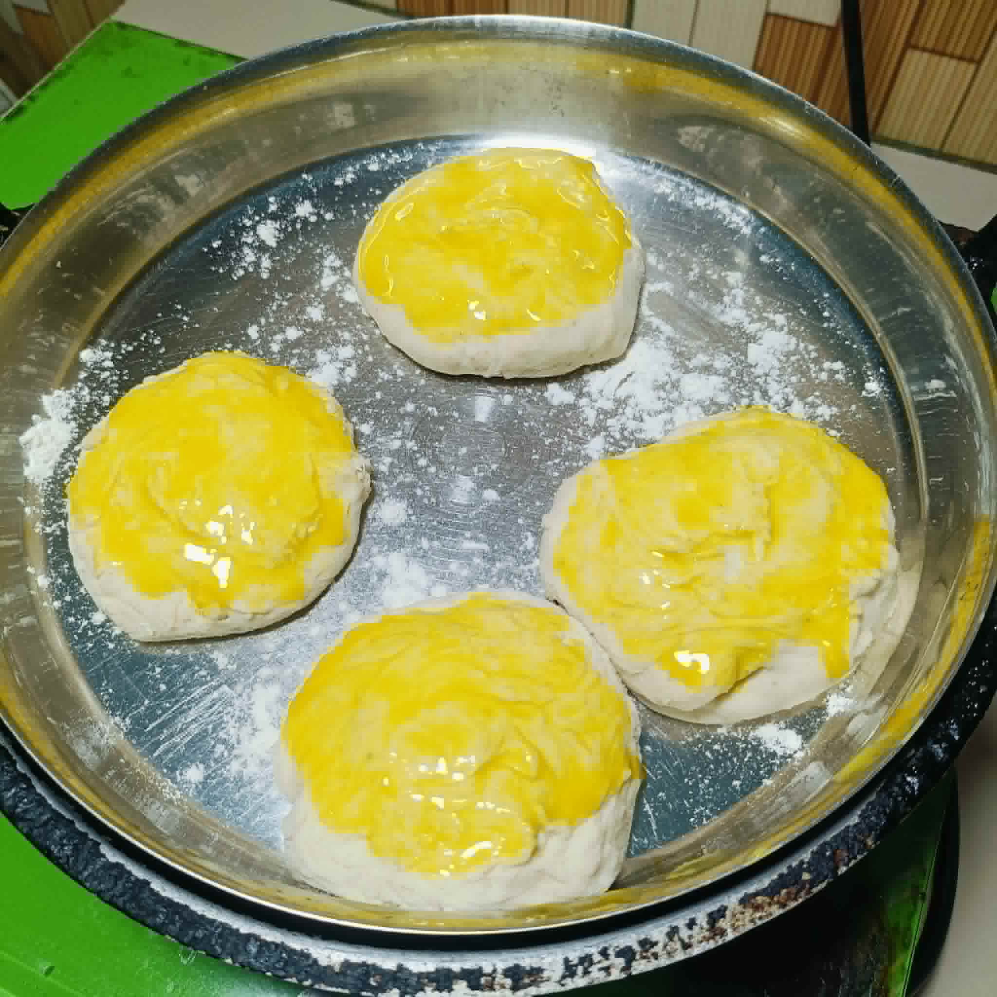🍞Then I'll brush the egg yolk well over the four circles of dough.