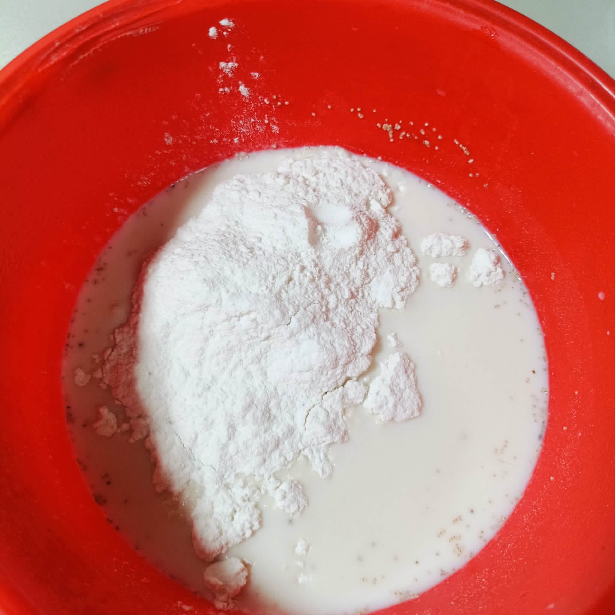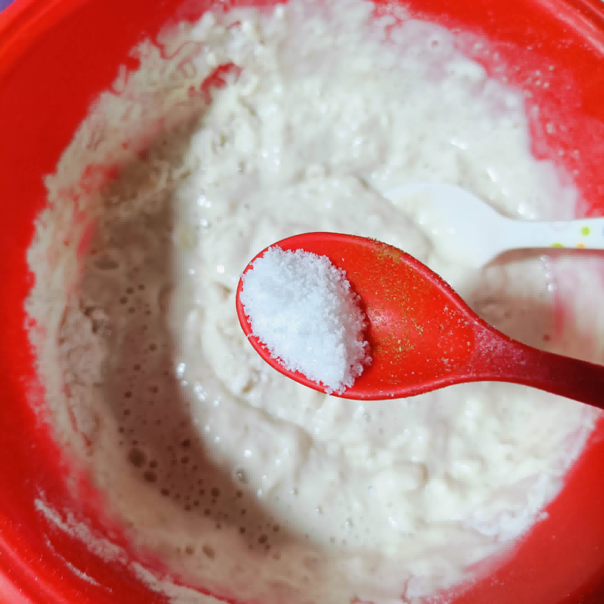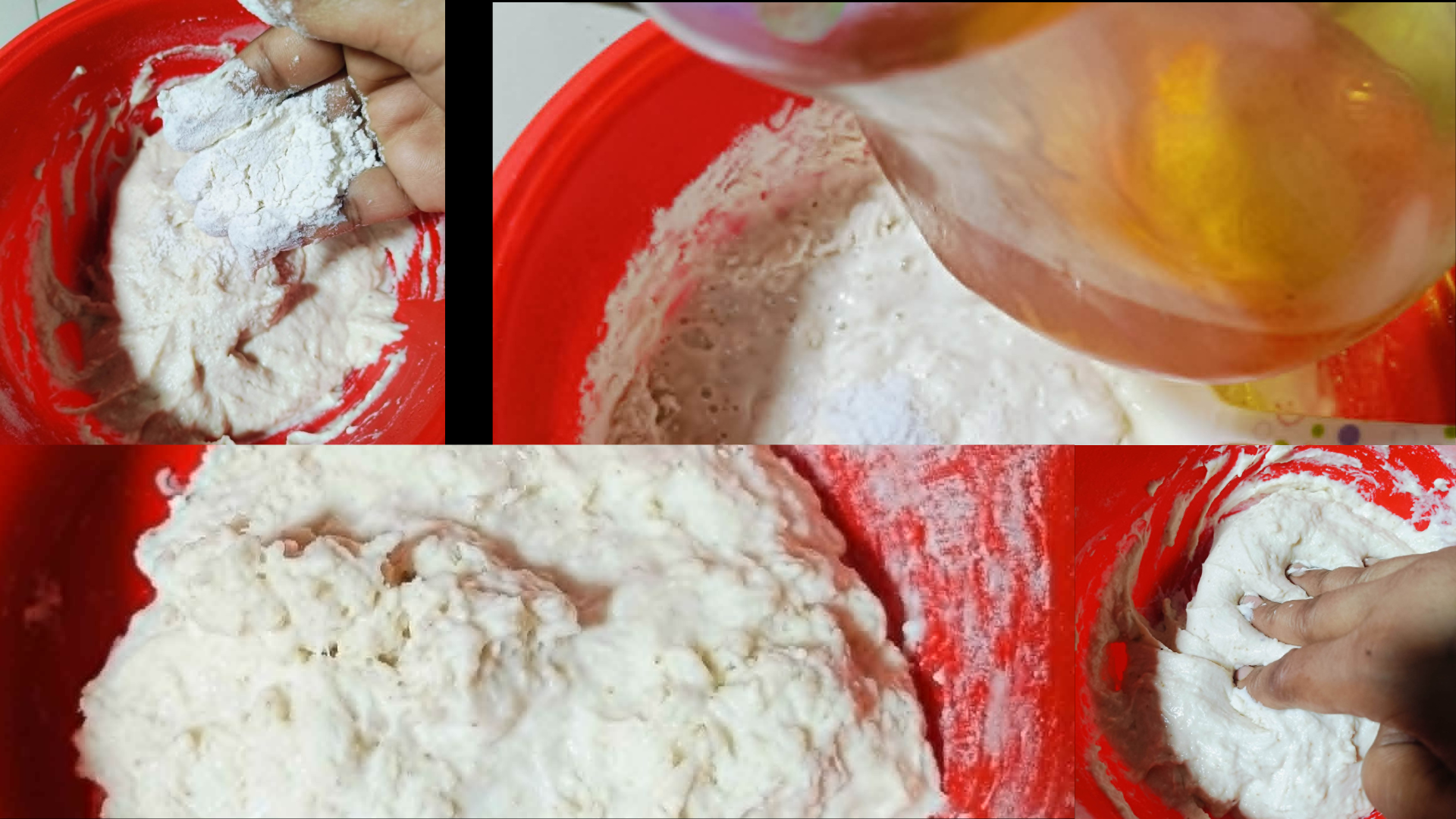 🍞Knead well and make a soft, sticky dough, and cover it with a lid for two hours.