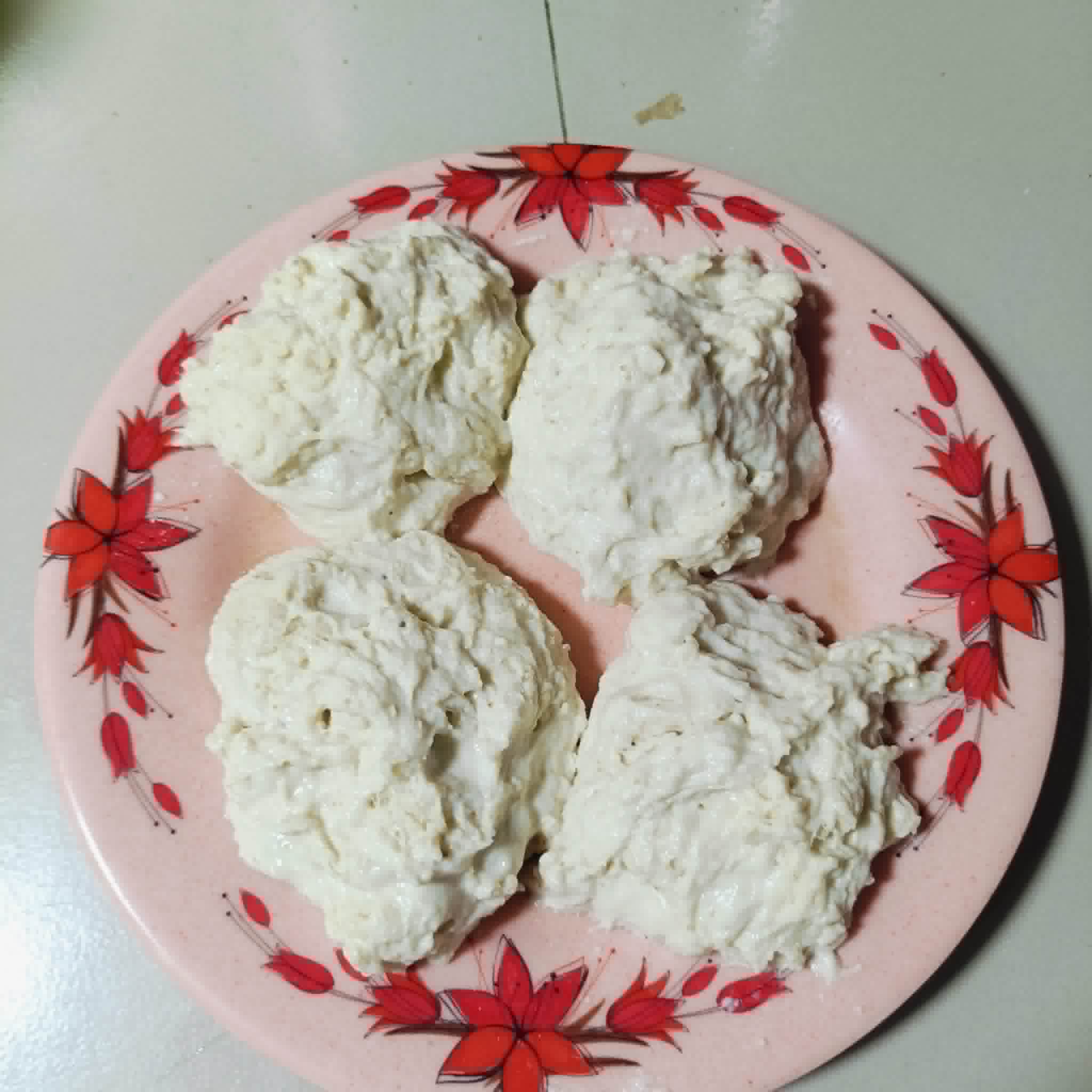 🍞Then I will carefully place the four portions of dough I have made on the plate.