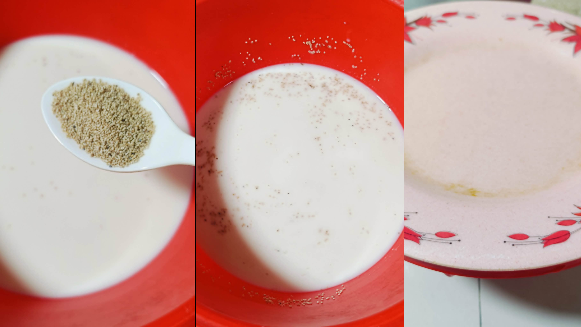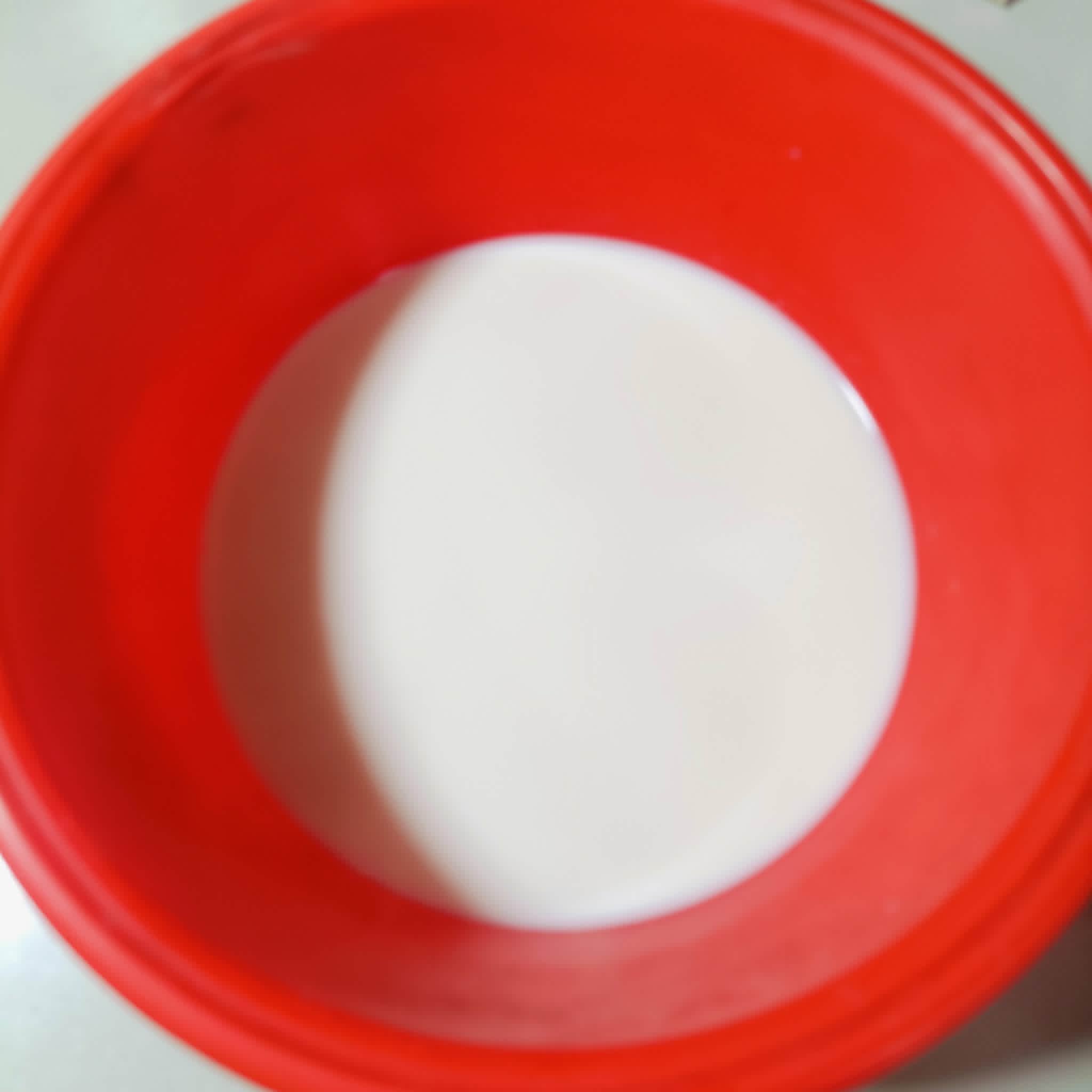 🍞First, I heated a large amount of milk and poured it into a bowl.