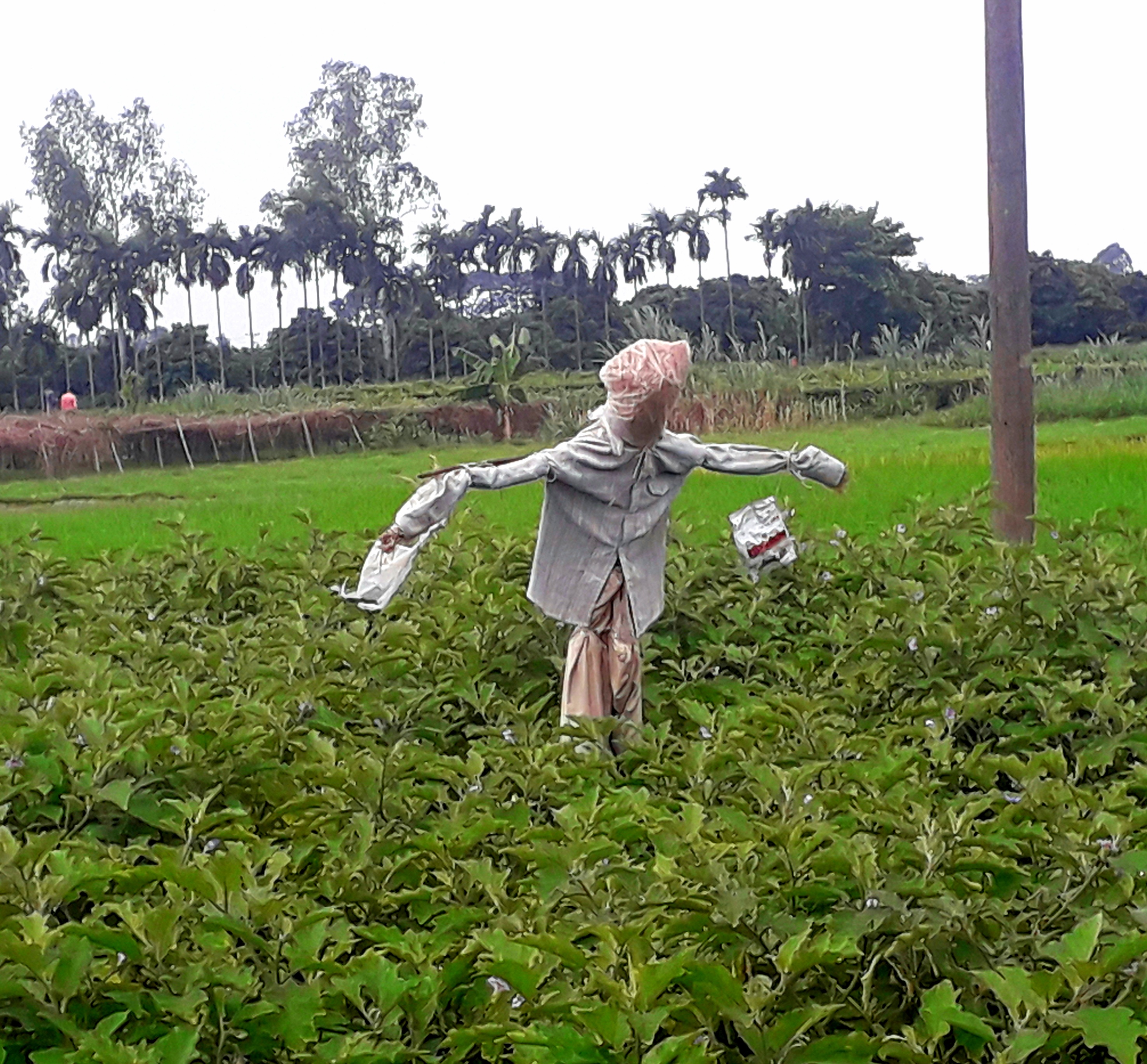 কয়েকদিন আগে আমি আমাদের ধানক্ষেত দেখার জন্য গিয়েছিলাম আমাদের জমিতে।সেখানে আমি পাশের জমিতে লক্ষ্য করি যে আমার এক চাচা তার জমিতে তিনি অনেক বেগুন লাগিয়েছেন। আমি মাঝখানে লক্ষ্য করি যে একটি কাকতাড়ুয়া দাঁড়িয়ে আছে। আমি সেখানে যাই এবং বেগুনের ফুল ও কাকতাড়ুয়ার অনেক ফটোগ্রাফি করি।কাকতাড়ুয়াটি দেখতে অনেক সুন্দর লাগছিলো আমাকে। যদিও ছোটবেলায় দেখে অনেক ভয় করতাম তবে এখন আর তেমন ভয় নেই। কারণ এর ভেতর তো আর জীবন নেই শুধুমাত্র একটি জড় পদার্থ এটি।